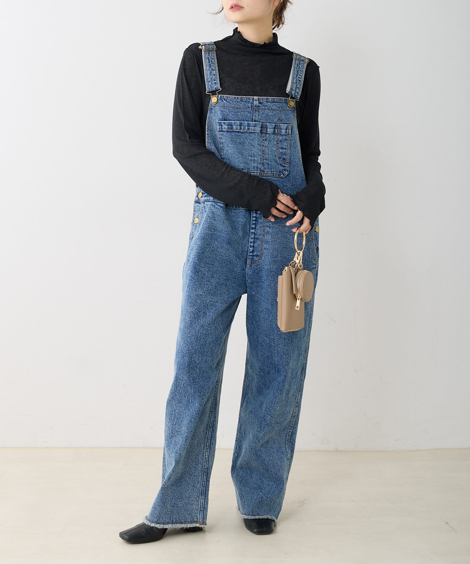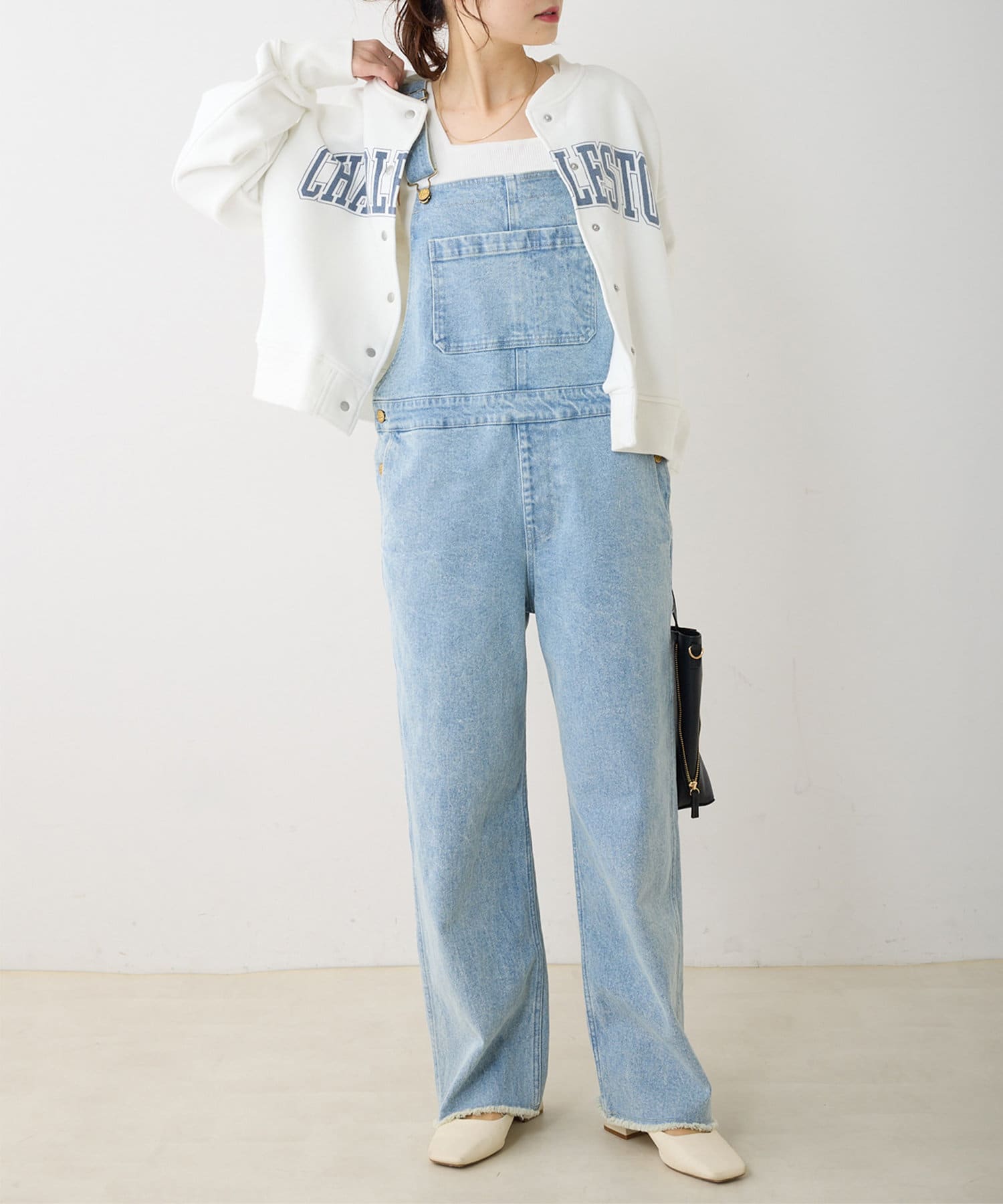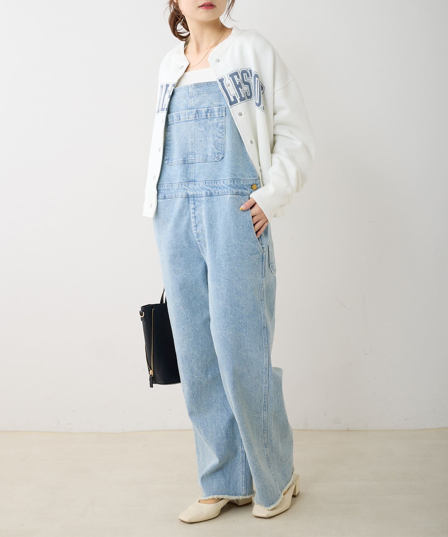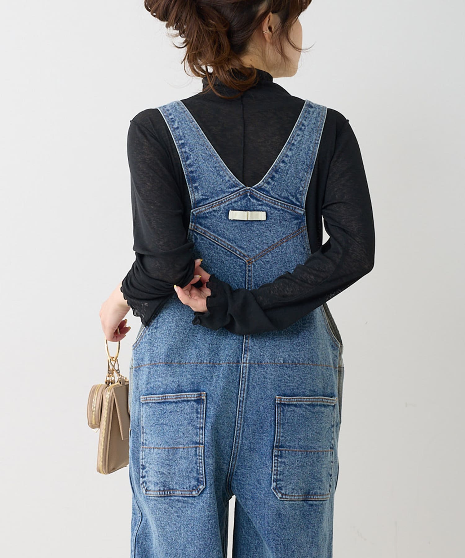 程よくゆとりのあるサイズ感ながらも、ルーズすぎない見た目の大人サロペット。