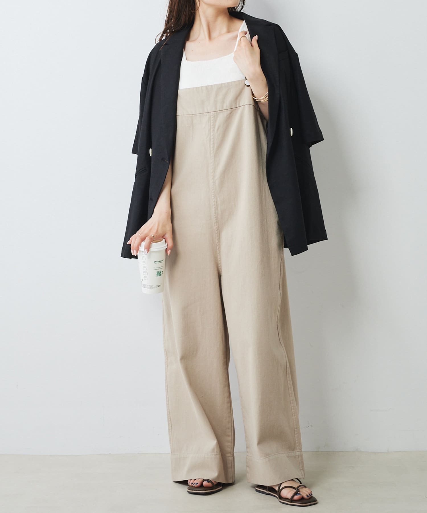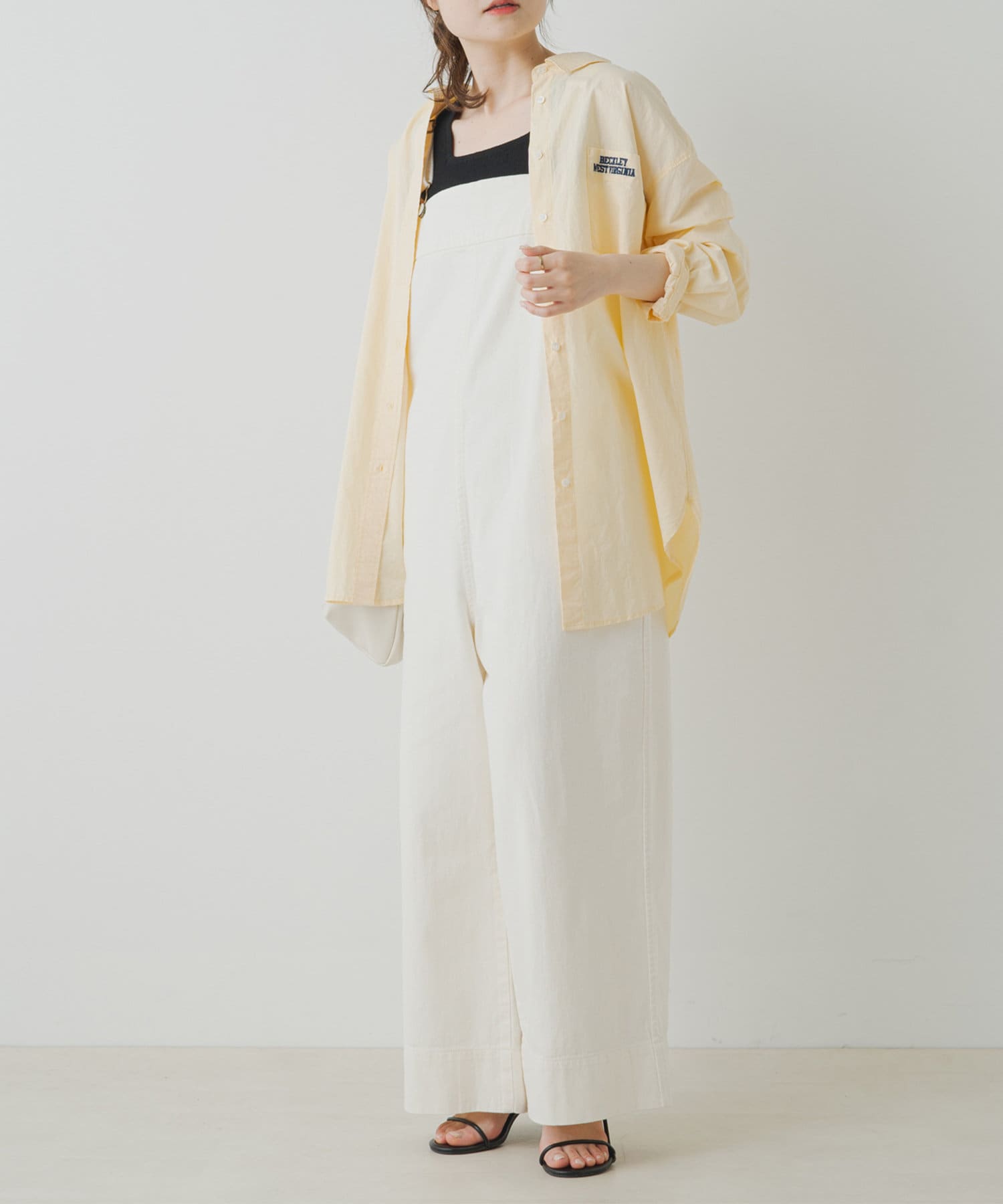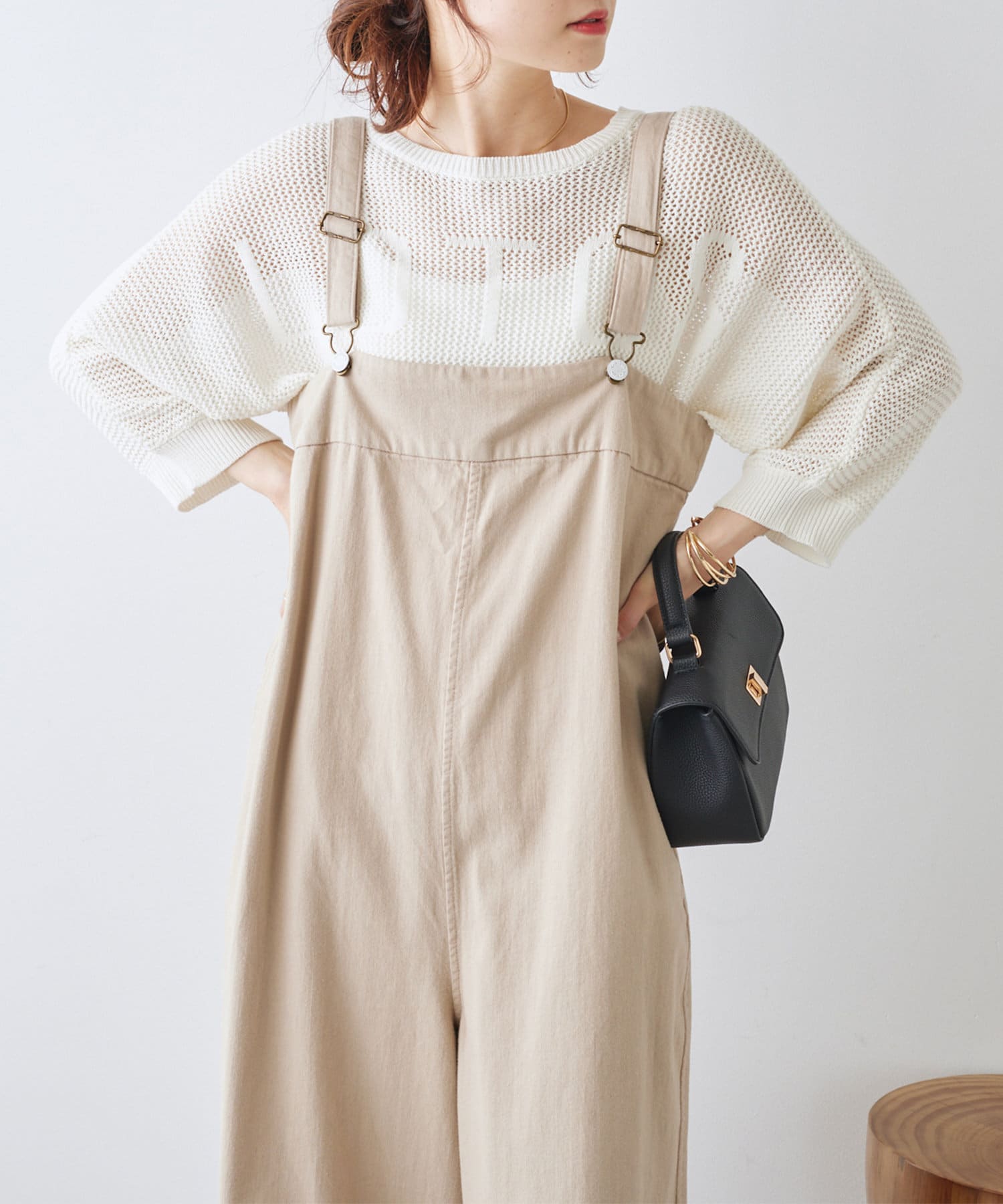 甘織りコットンで仕上げたこなれ感たっぷりなサロペット。