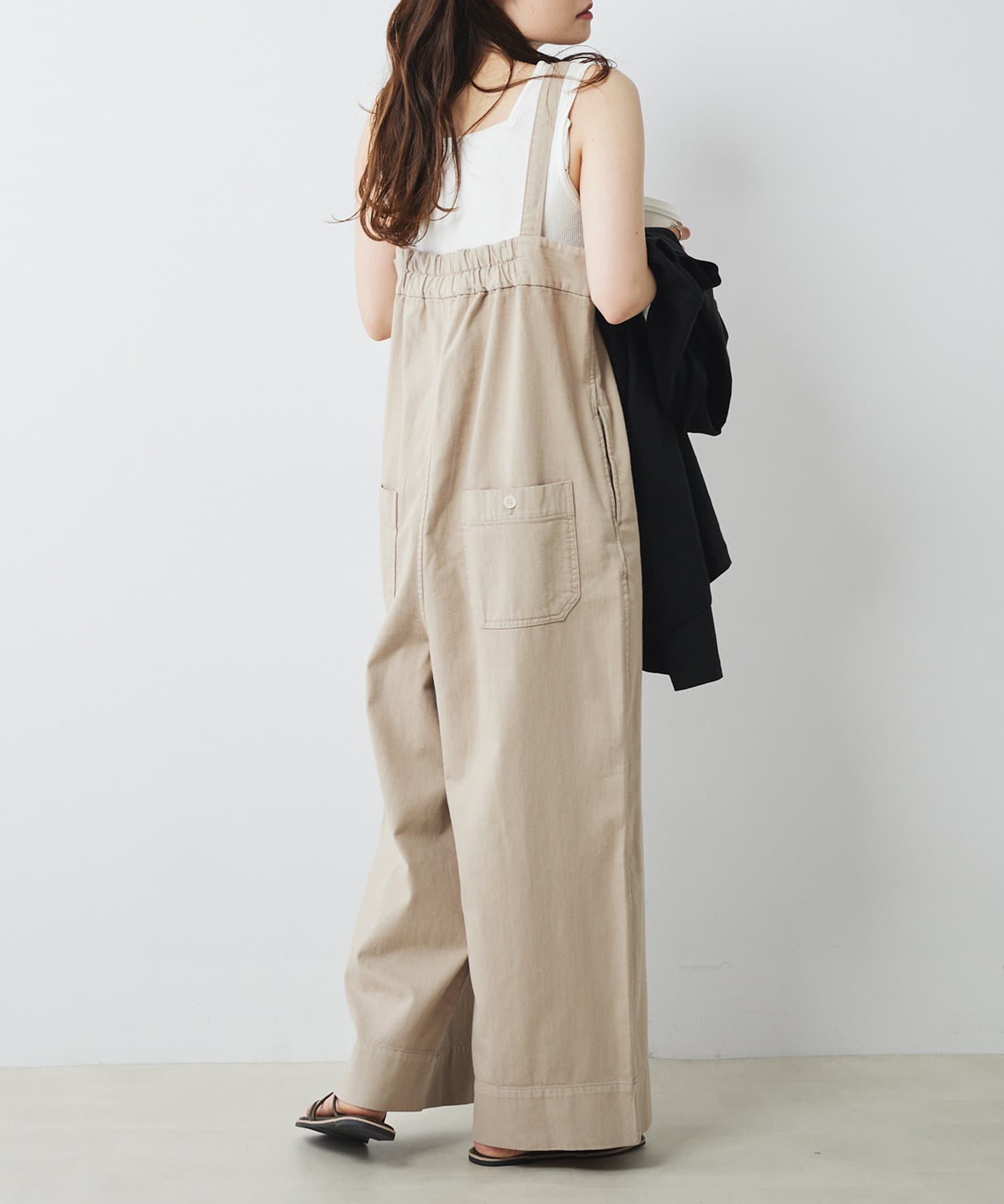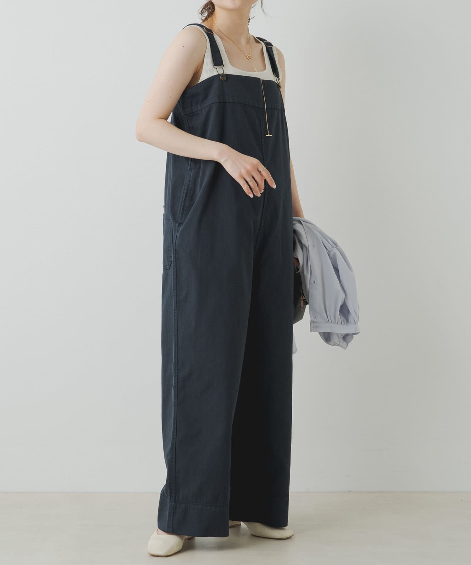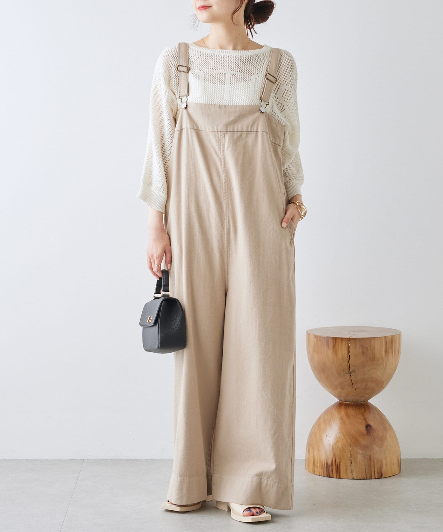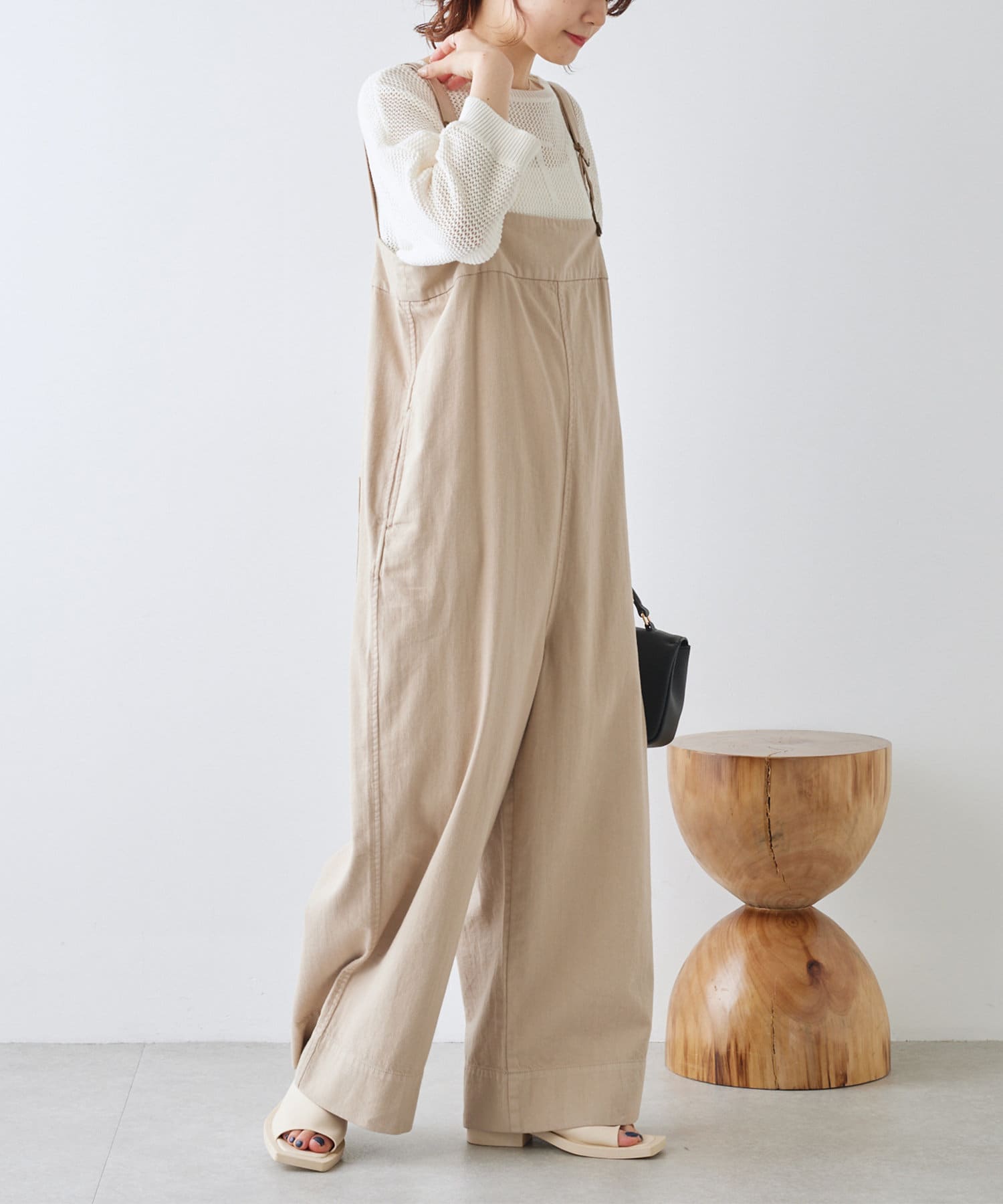 甘織りコットンで仕上げたこなれ感たっぷりなサロペット。