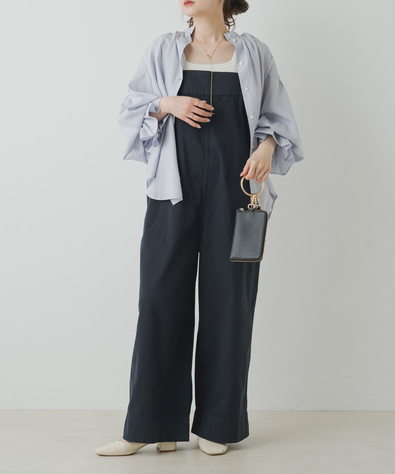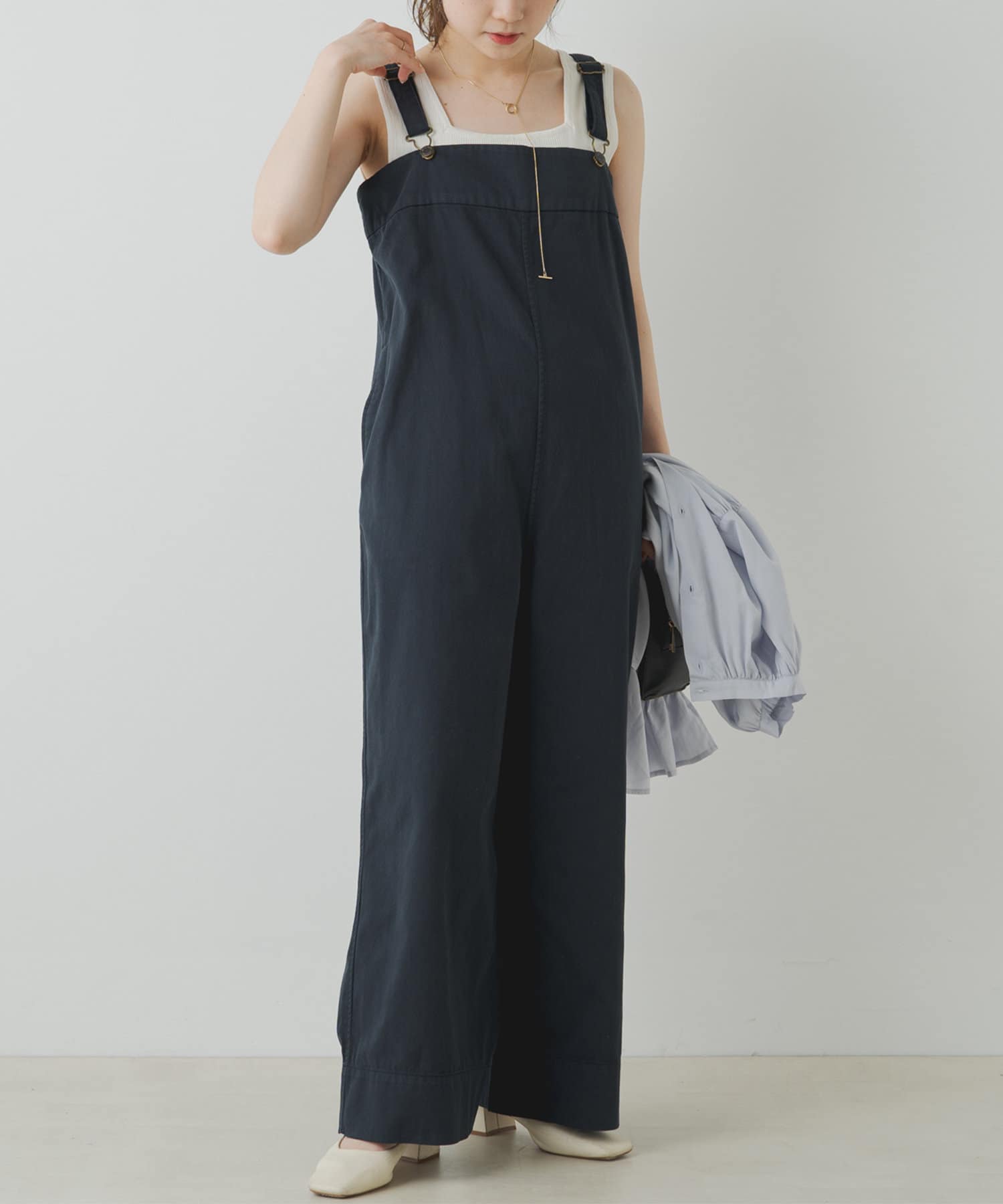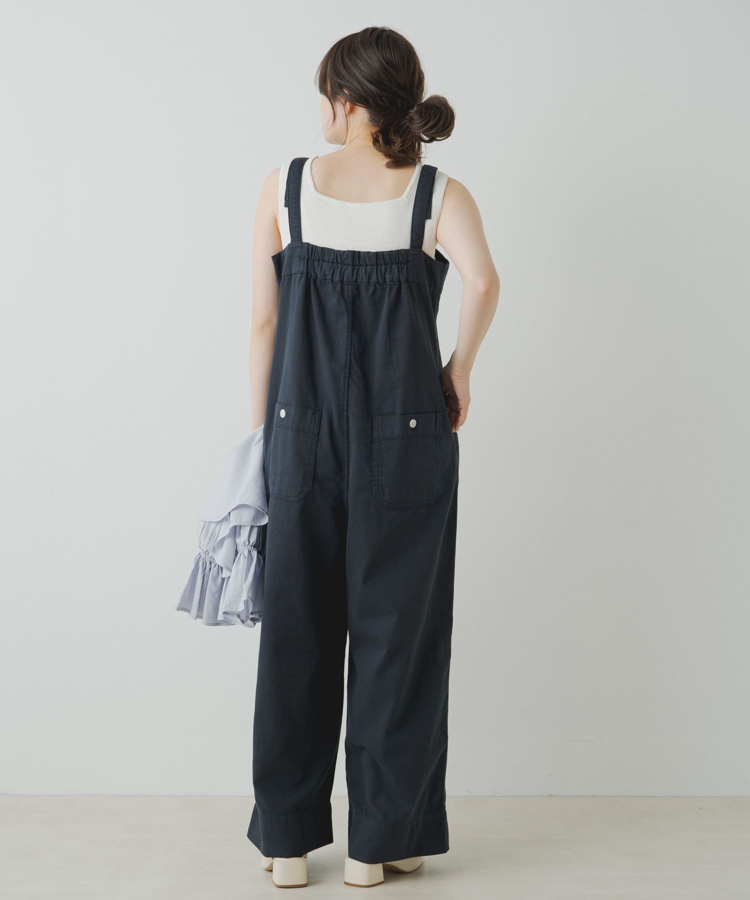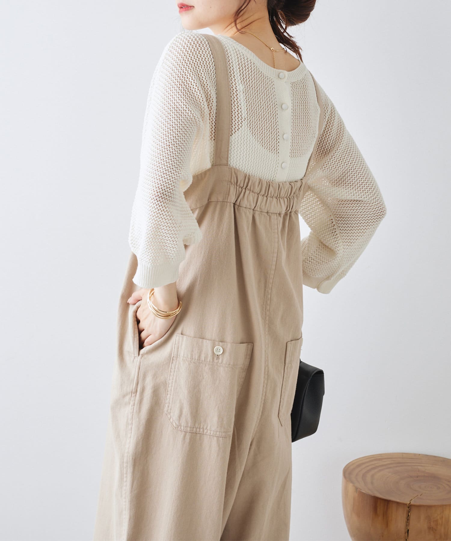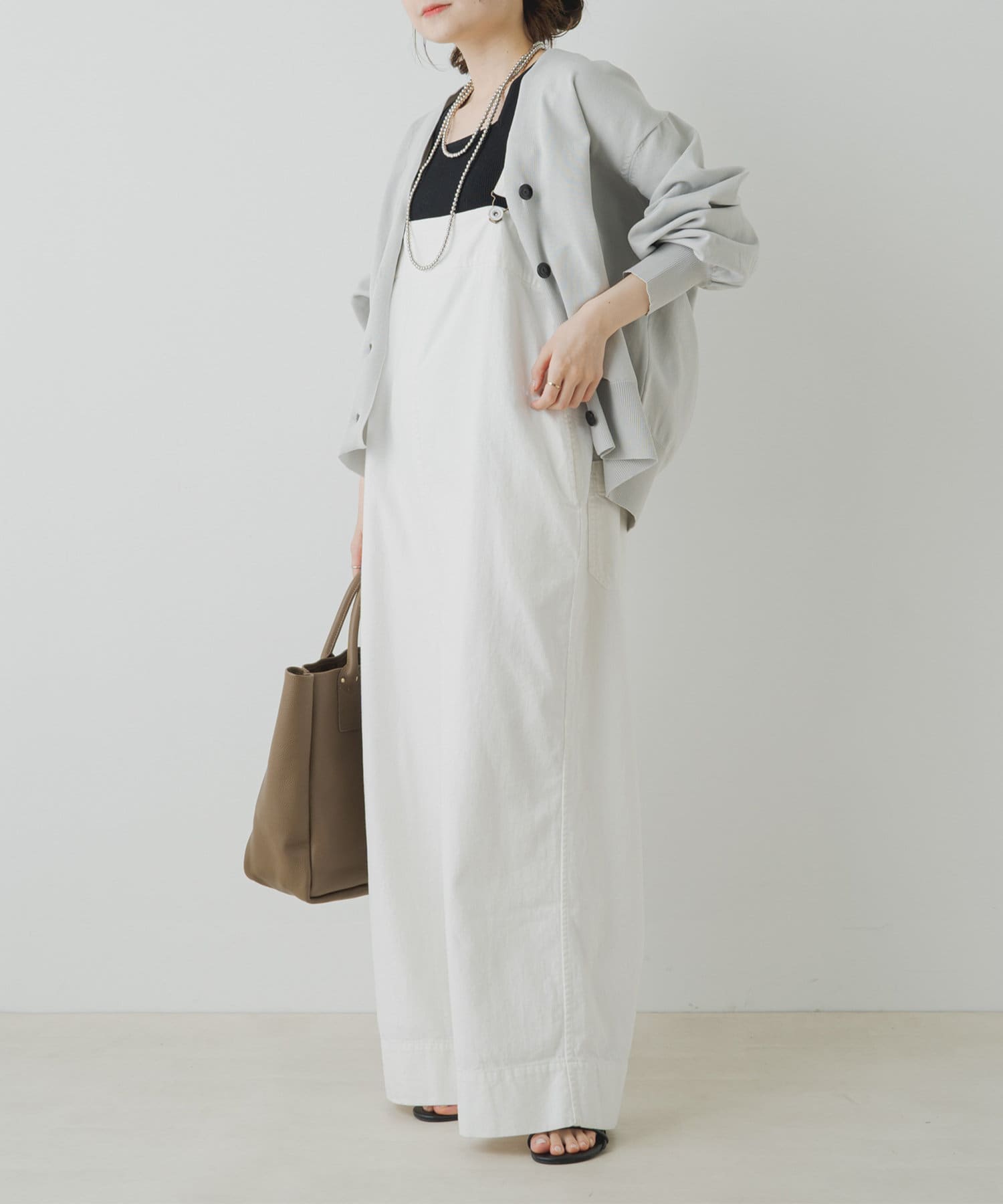 甘織りコットンで仕上げたこなれ感たっぷりなサロペット。