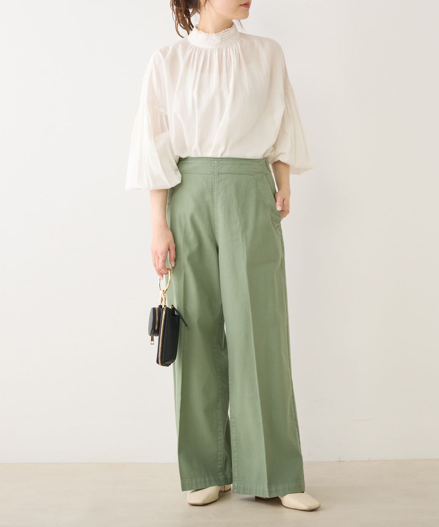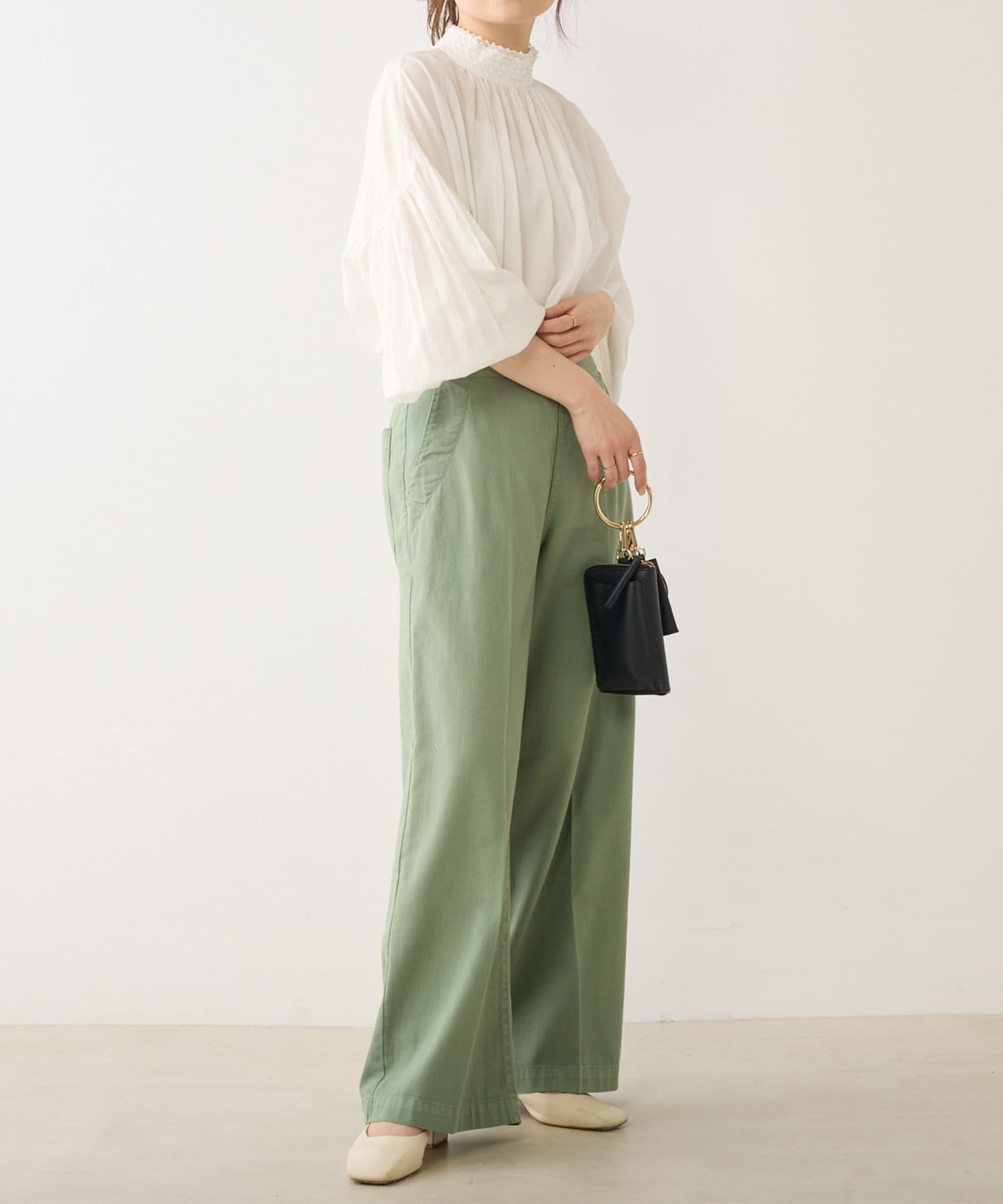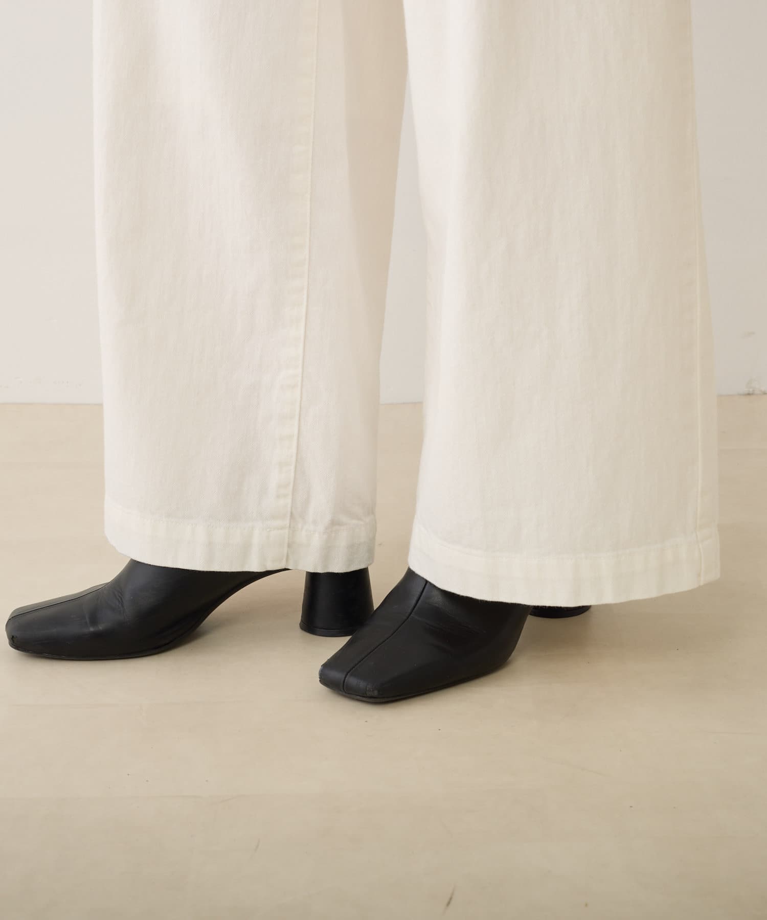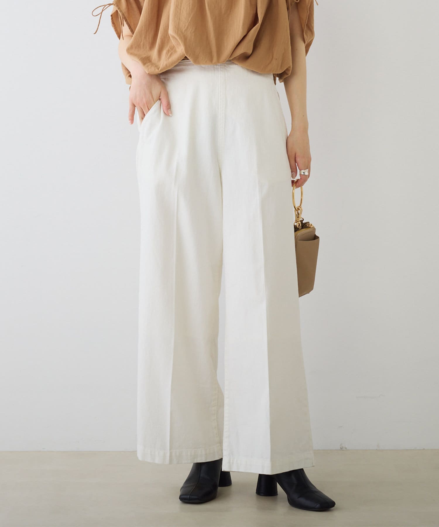 脚のラインをカバーするワイドシルエット。
