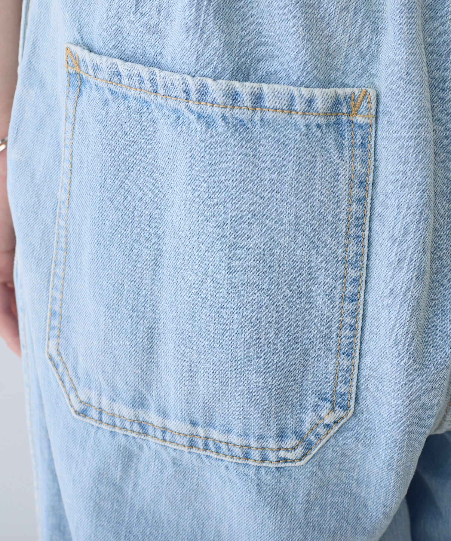 素材感:リネン混じりなので薄手ですが透け感は全くございません。夏でも快適着用できる優秀なデニムパンツです。