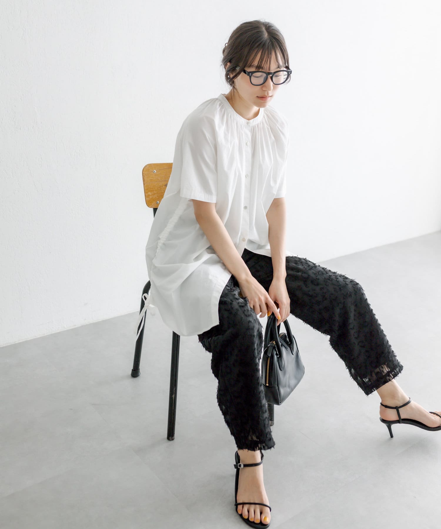 存在感のあるデザインなので、シンプルなトップスと合わせるだけで様になります。