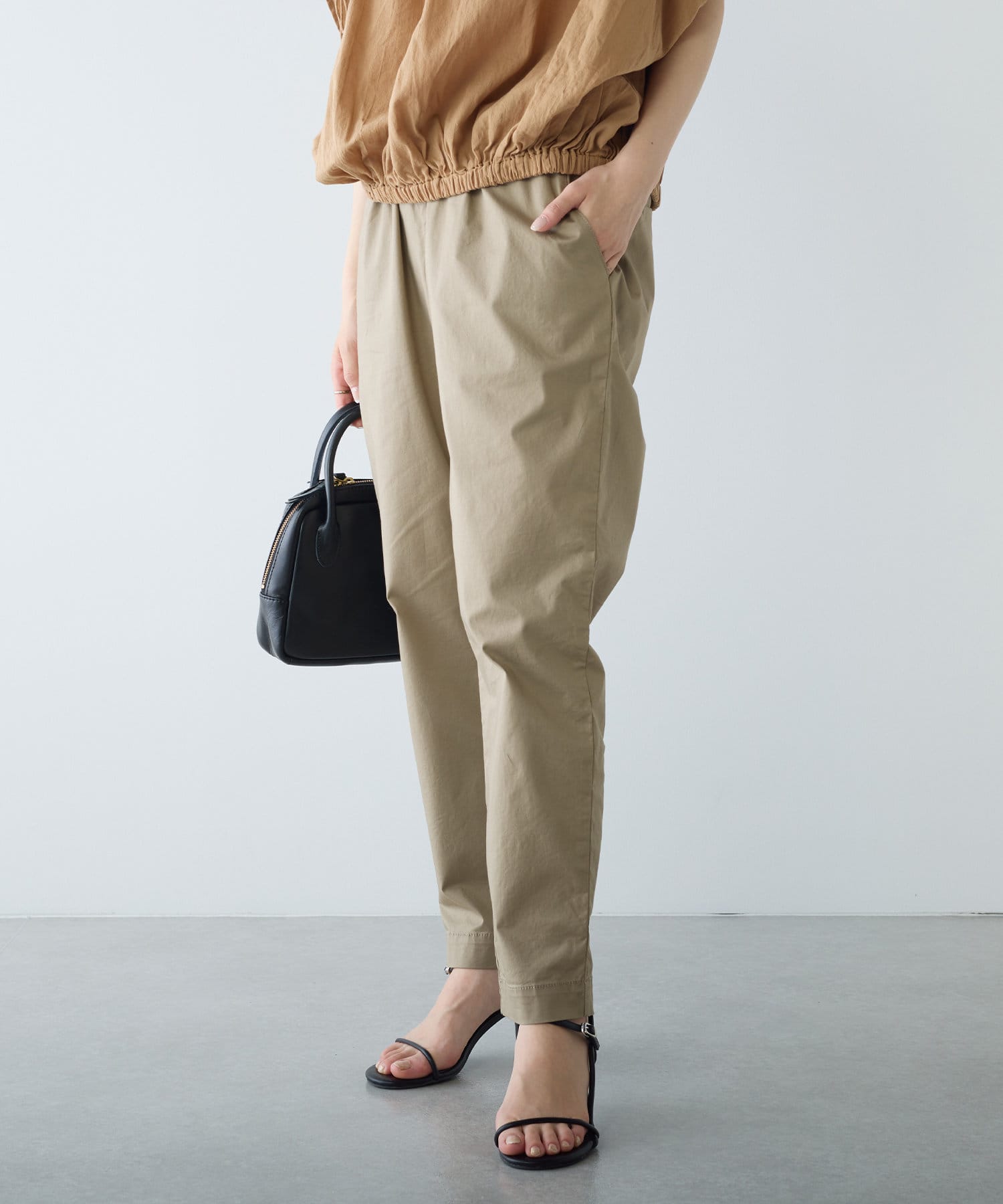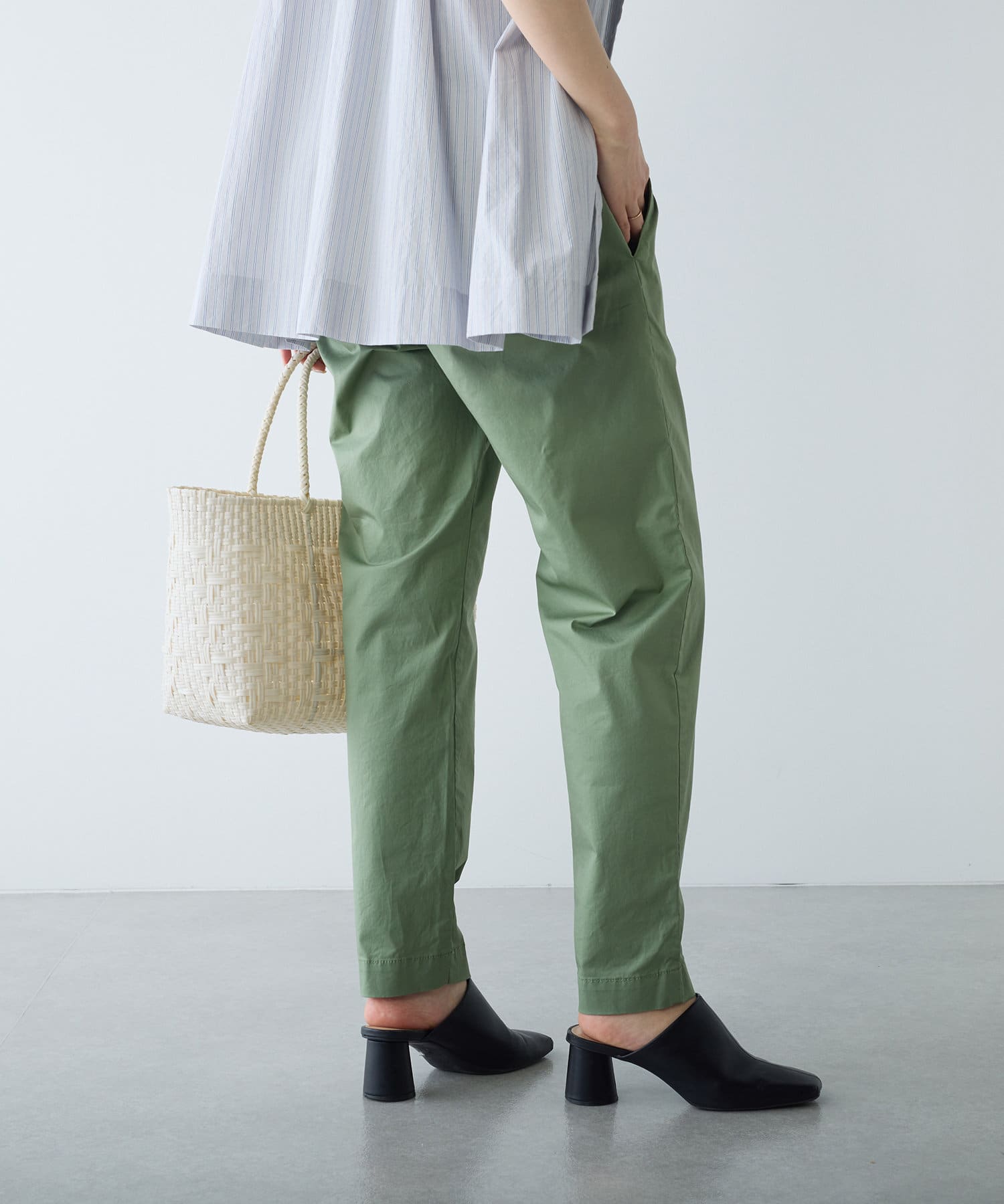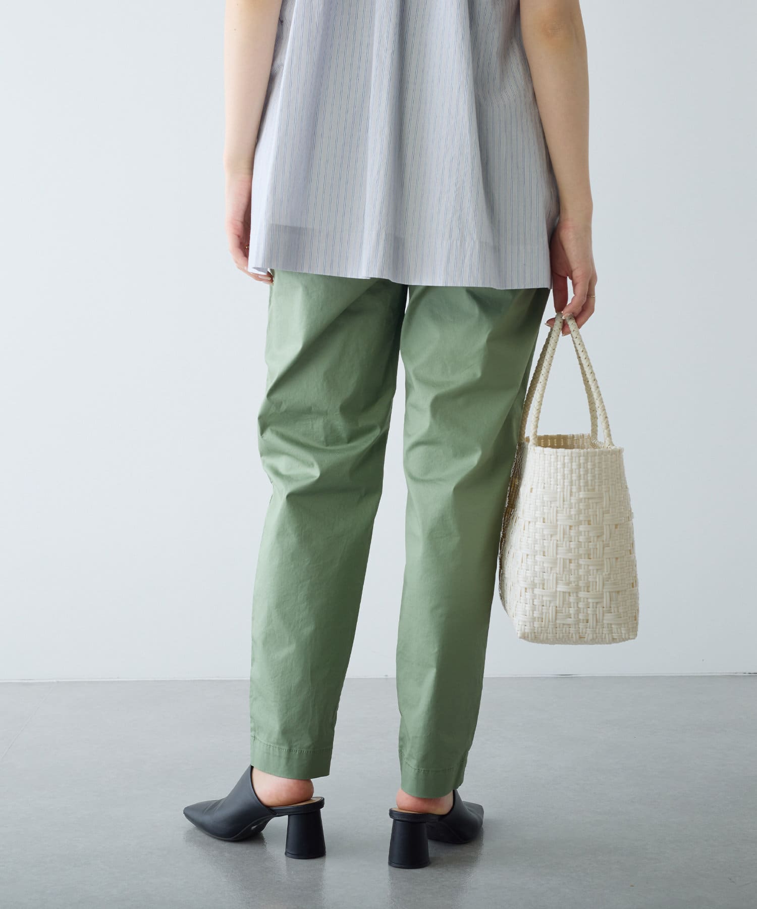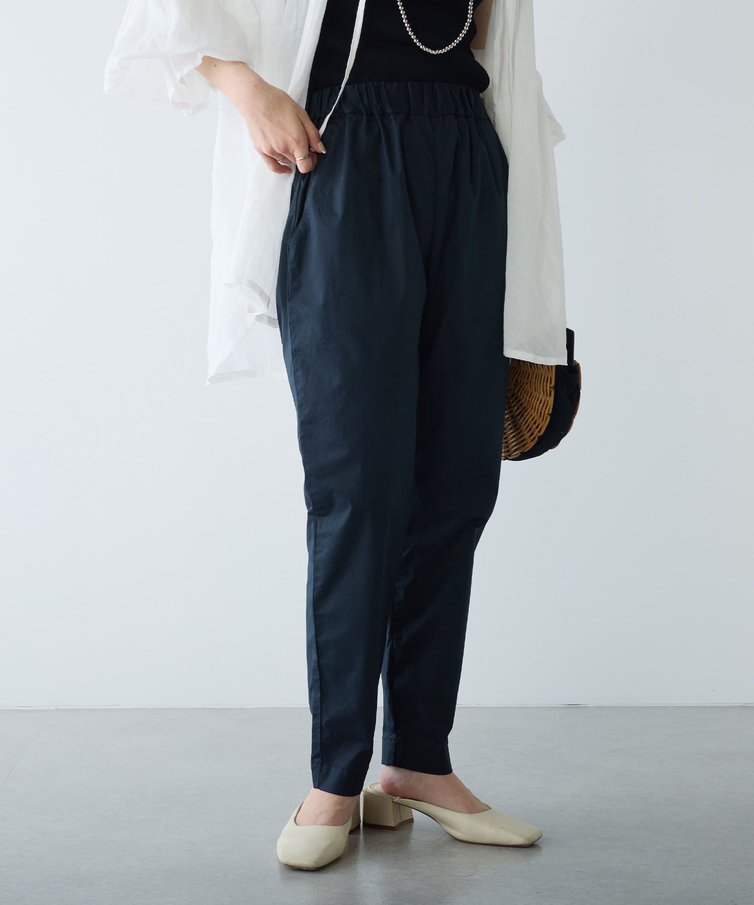 裾にかけて細くなっていくテーパードシルエットが、脚のラインをきれいに見せて美脚効果を高めるテーパードパンツ。