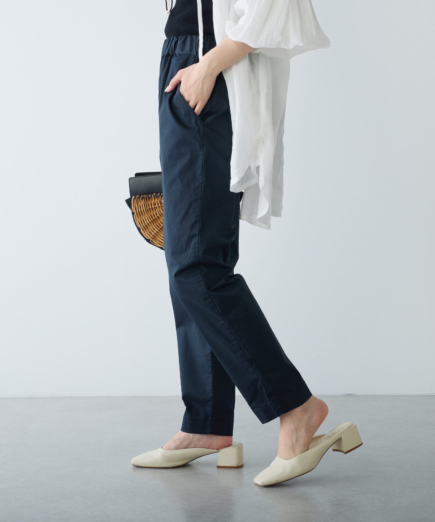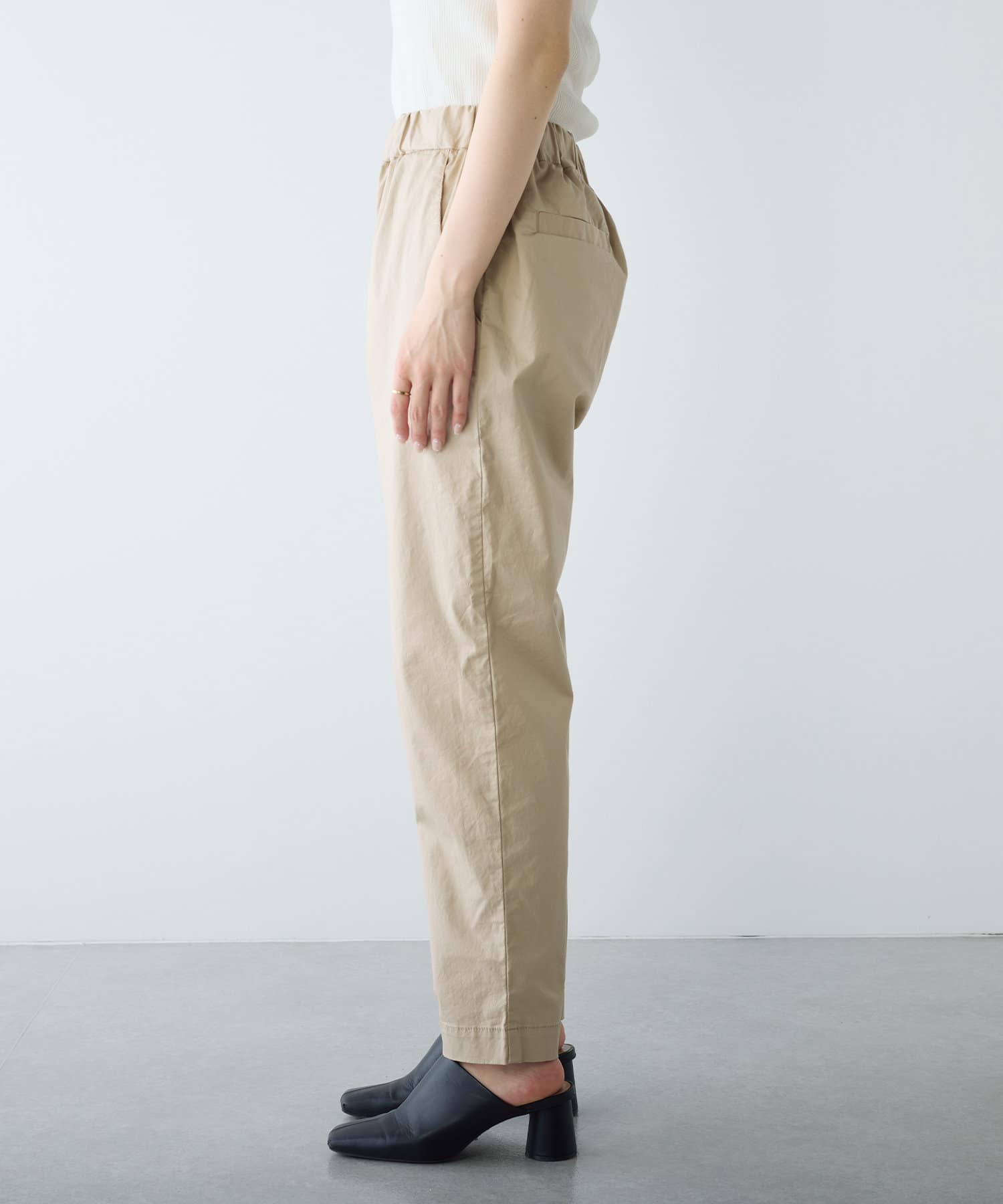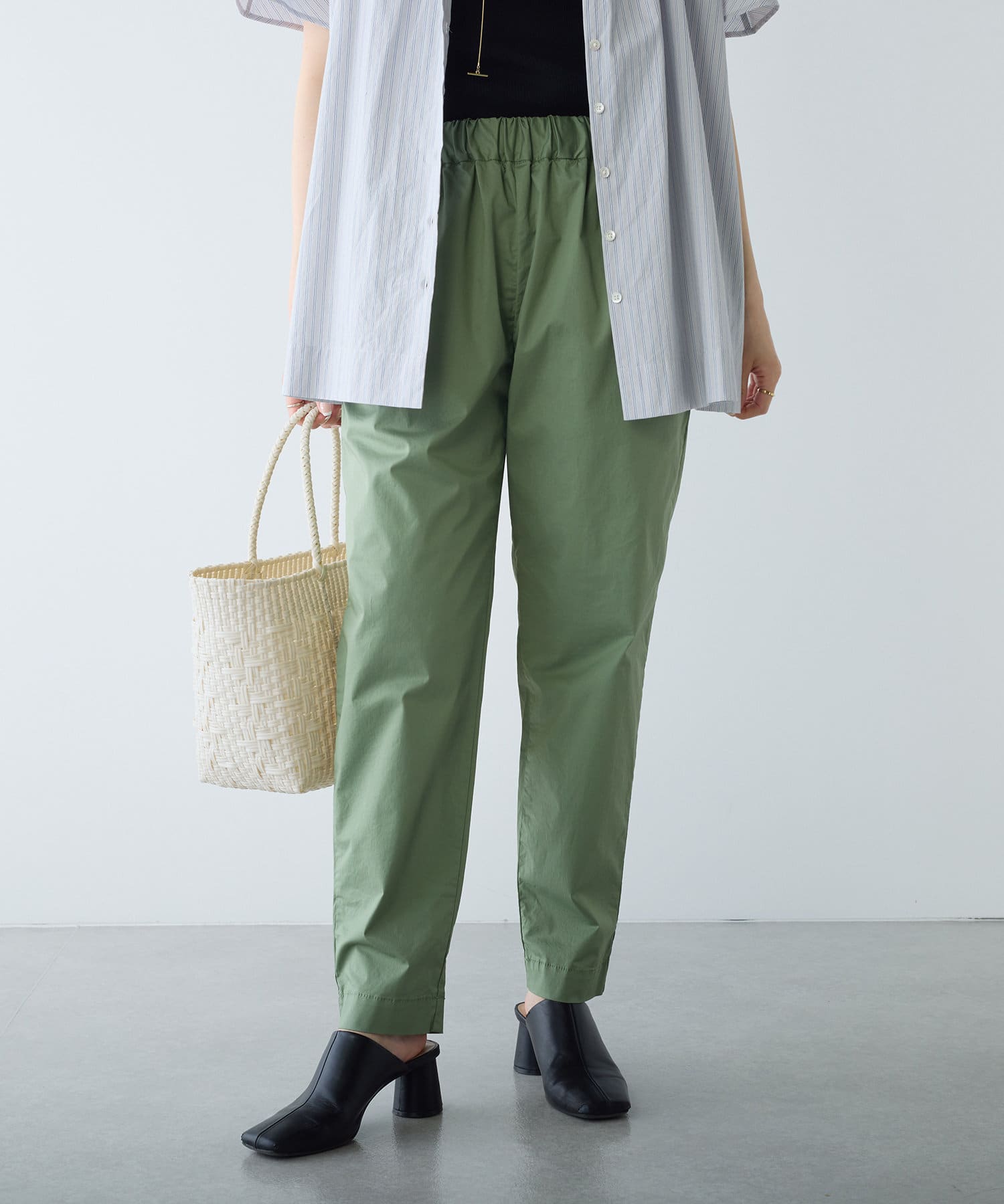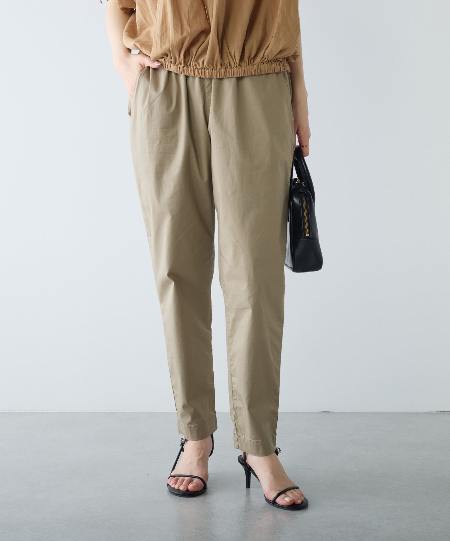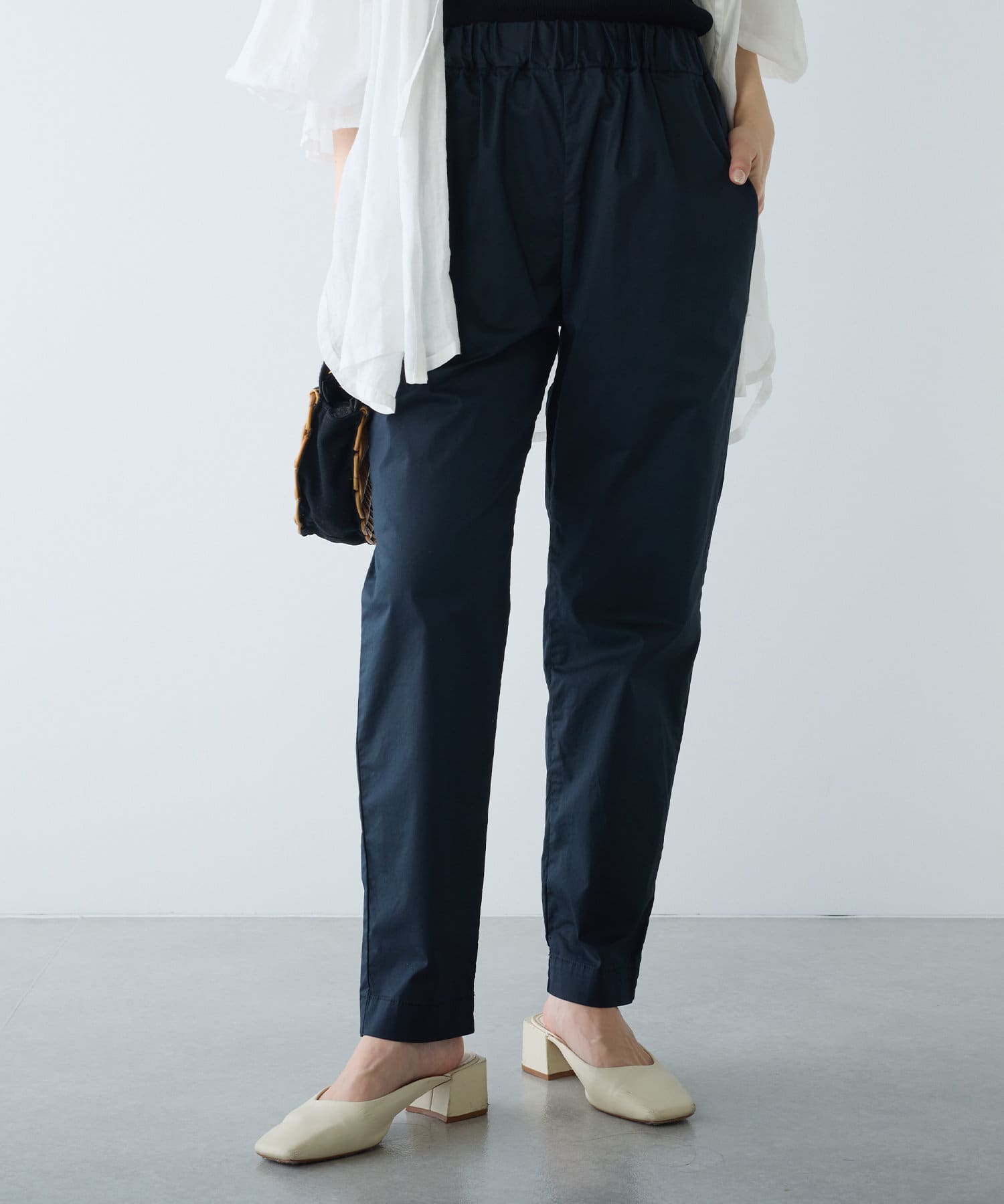 裾にかけて細くなっていくテーパードシルエットが、脚のラインをきれいに見せて美脚効果を高めるテーパードパンツ。