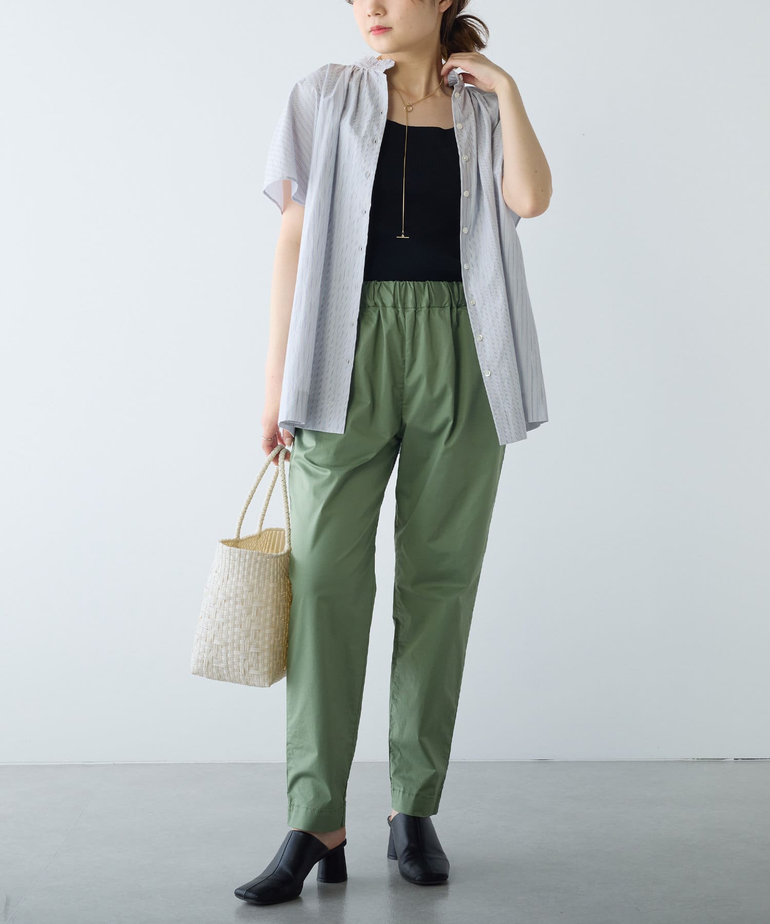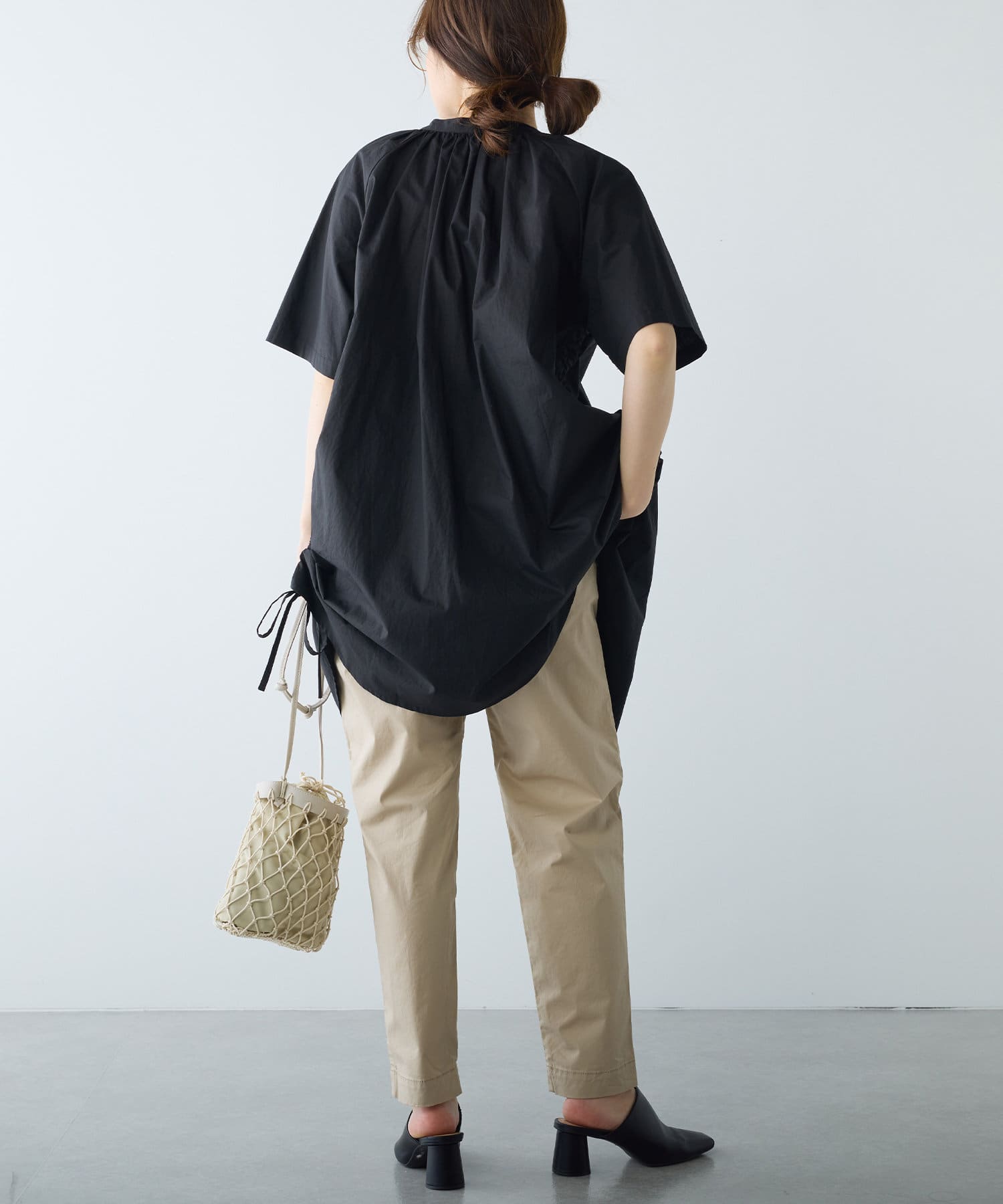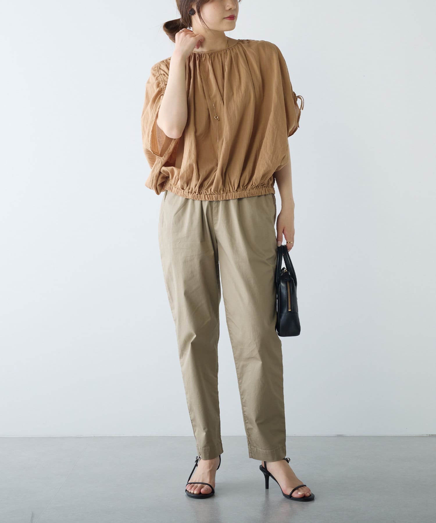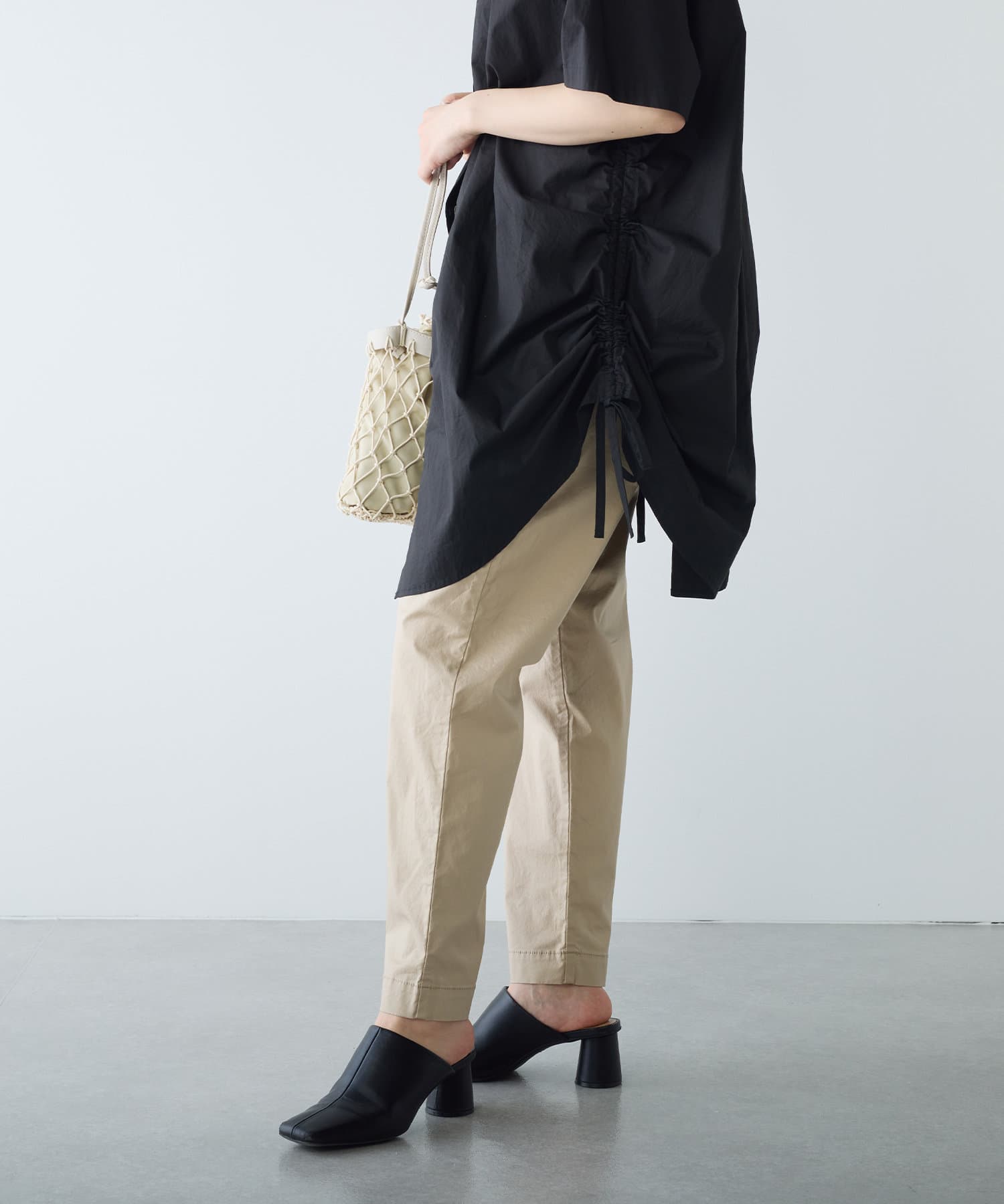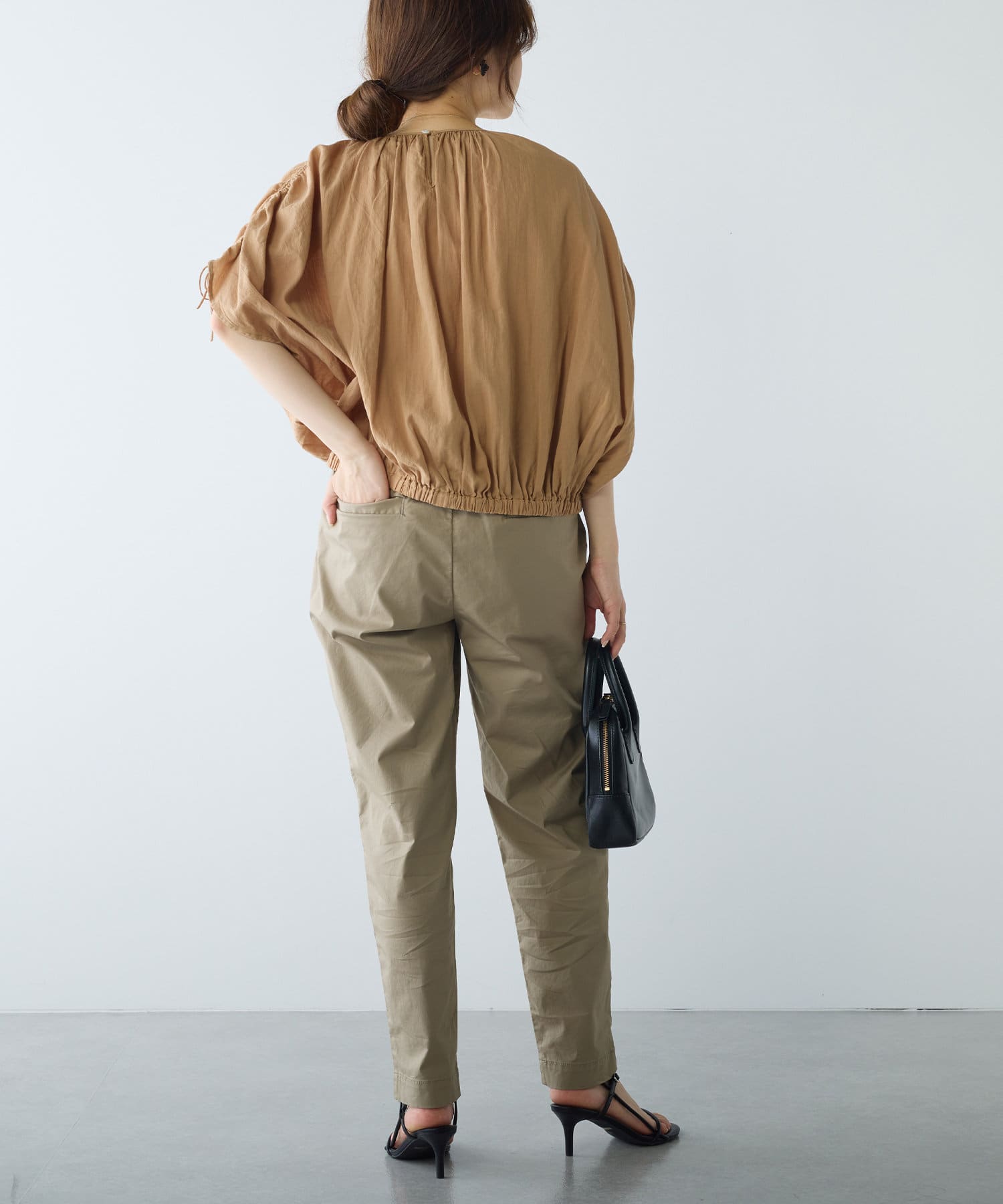 ハリのある生地を使用しているので、ラフな雰囲気になりすぎずきちんと感を演出。