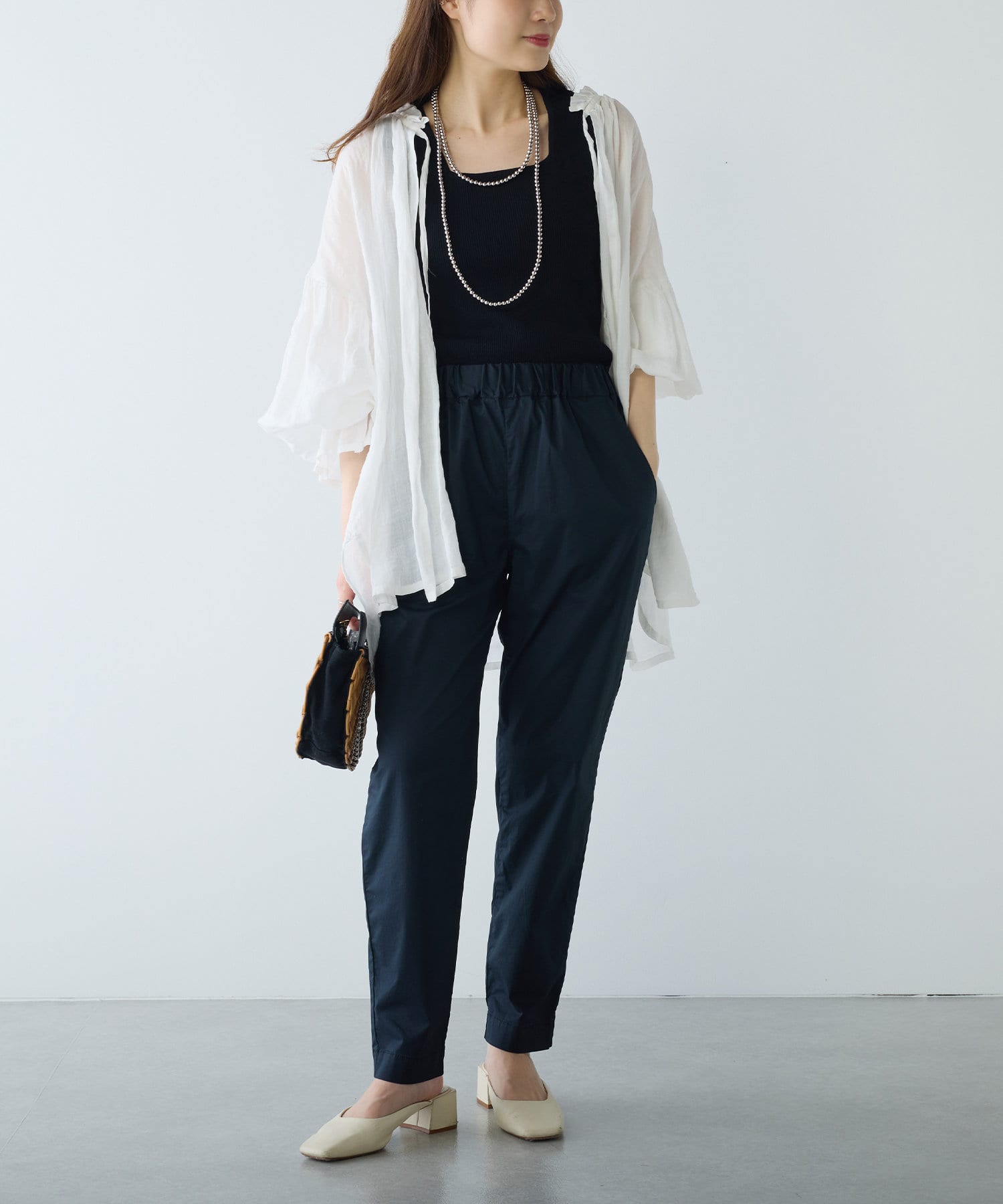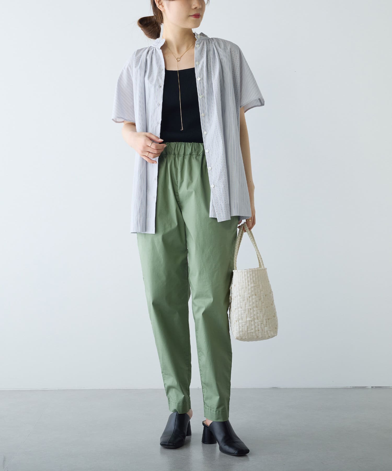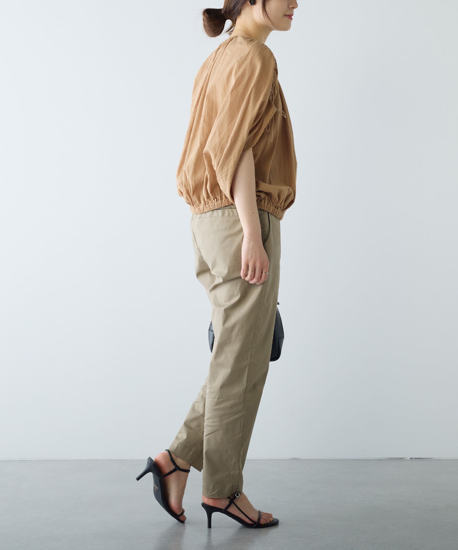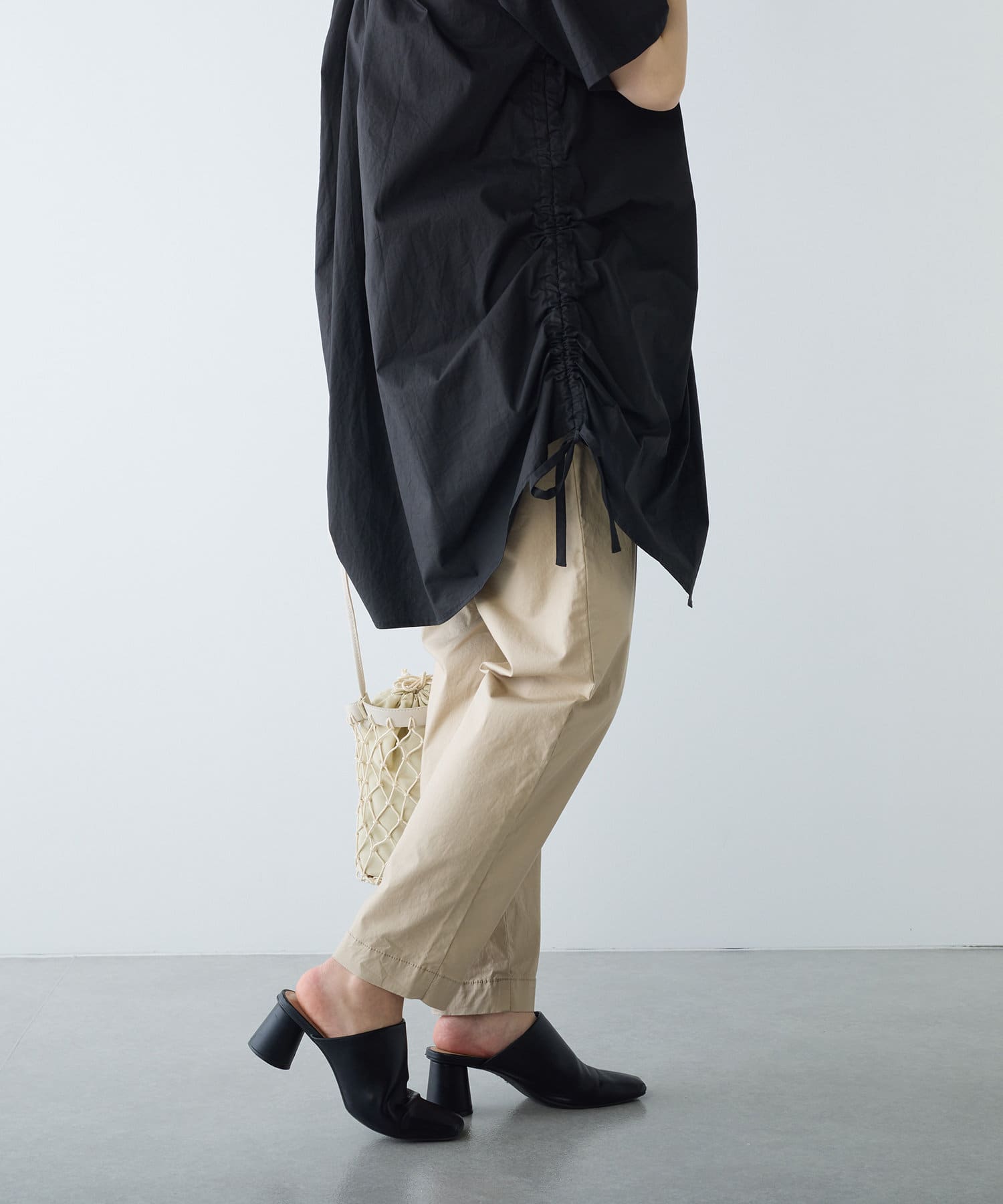 ハリのある生地を使用しているので、ラフな雰囲気になりすぎずきちんと感を演出。
