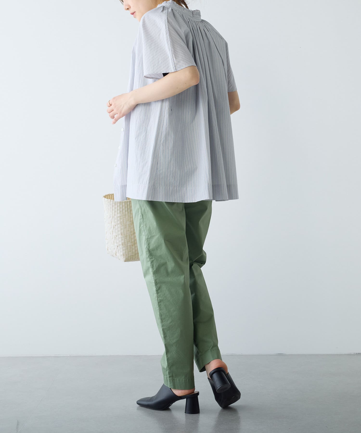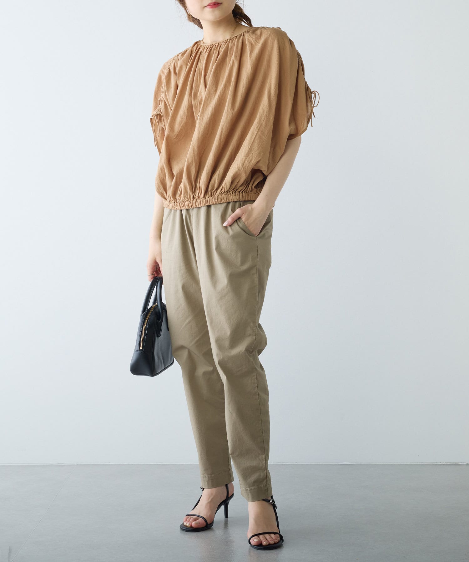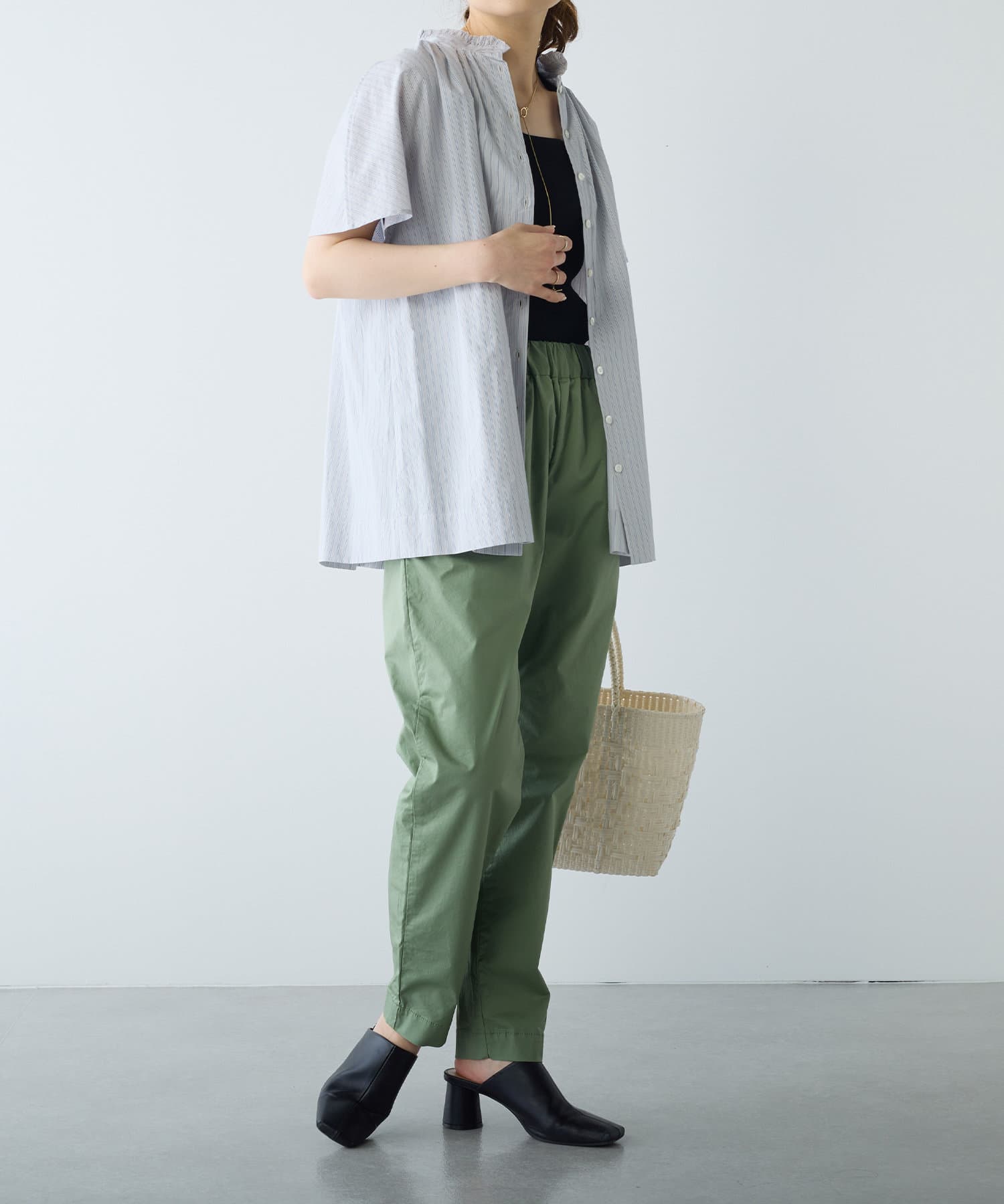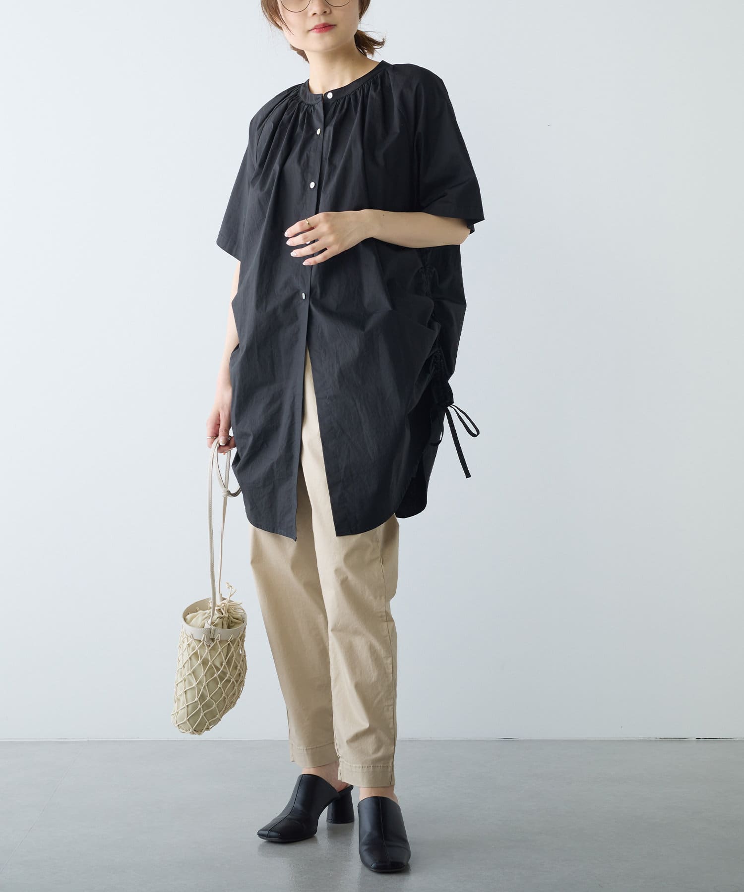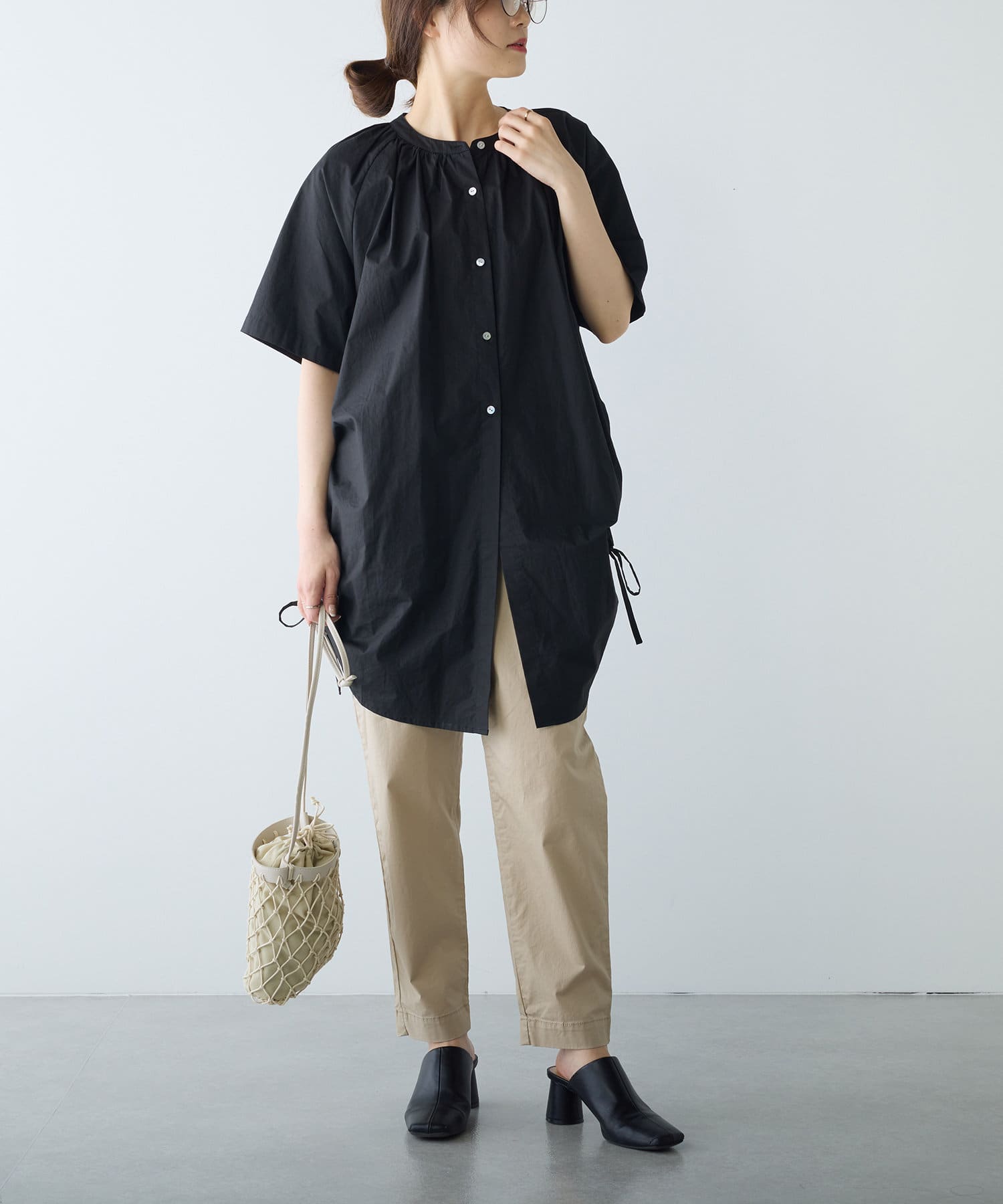 ハリのある生地を使用しているので、ラフな雰囲気になりすぎずきちんと感を演出。