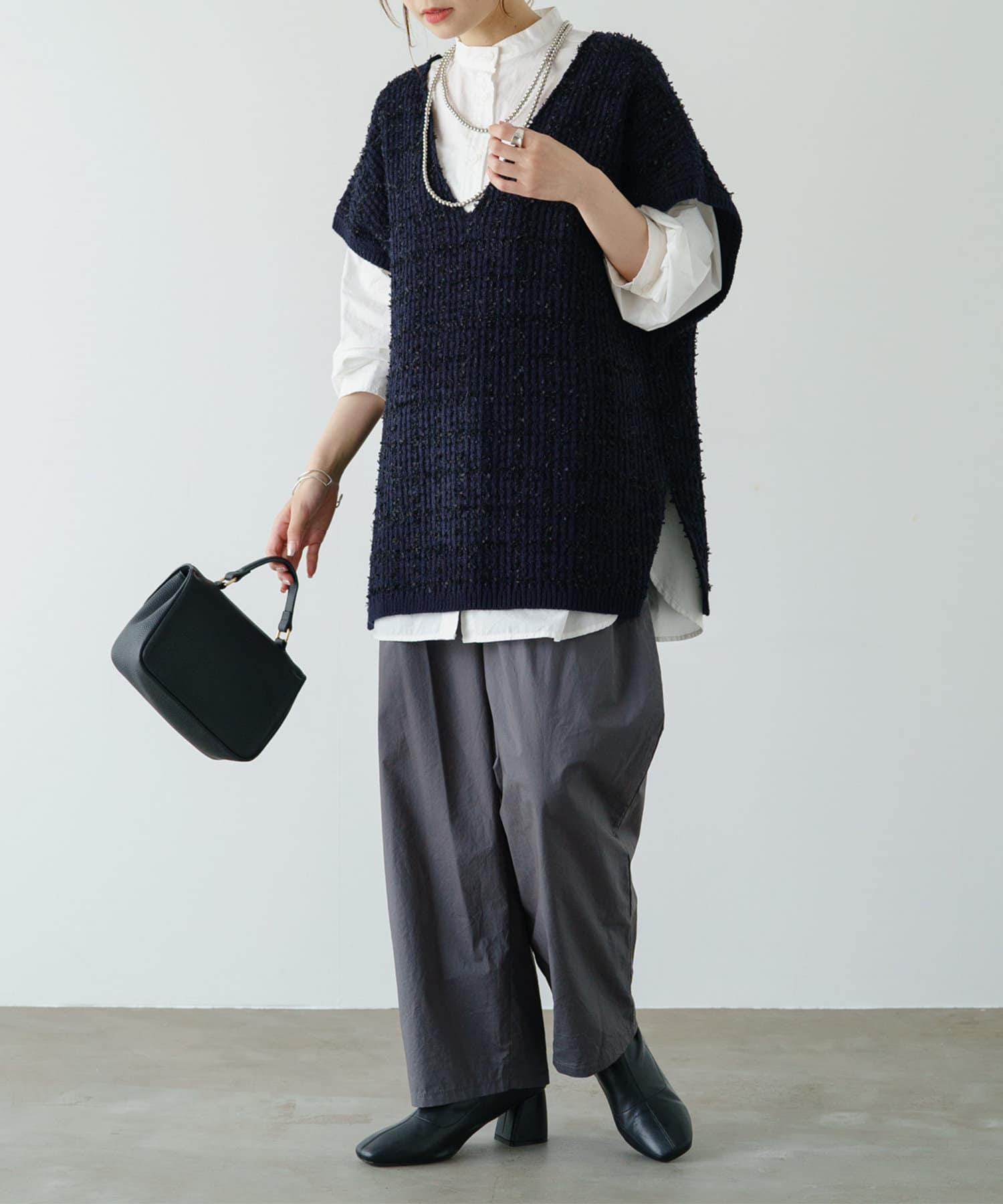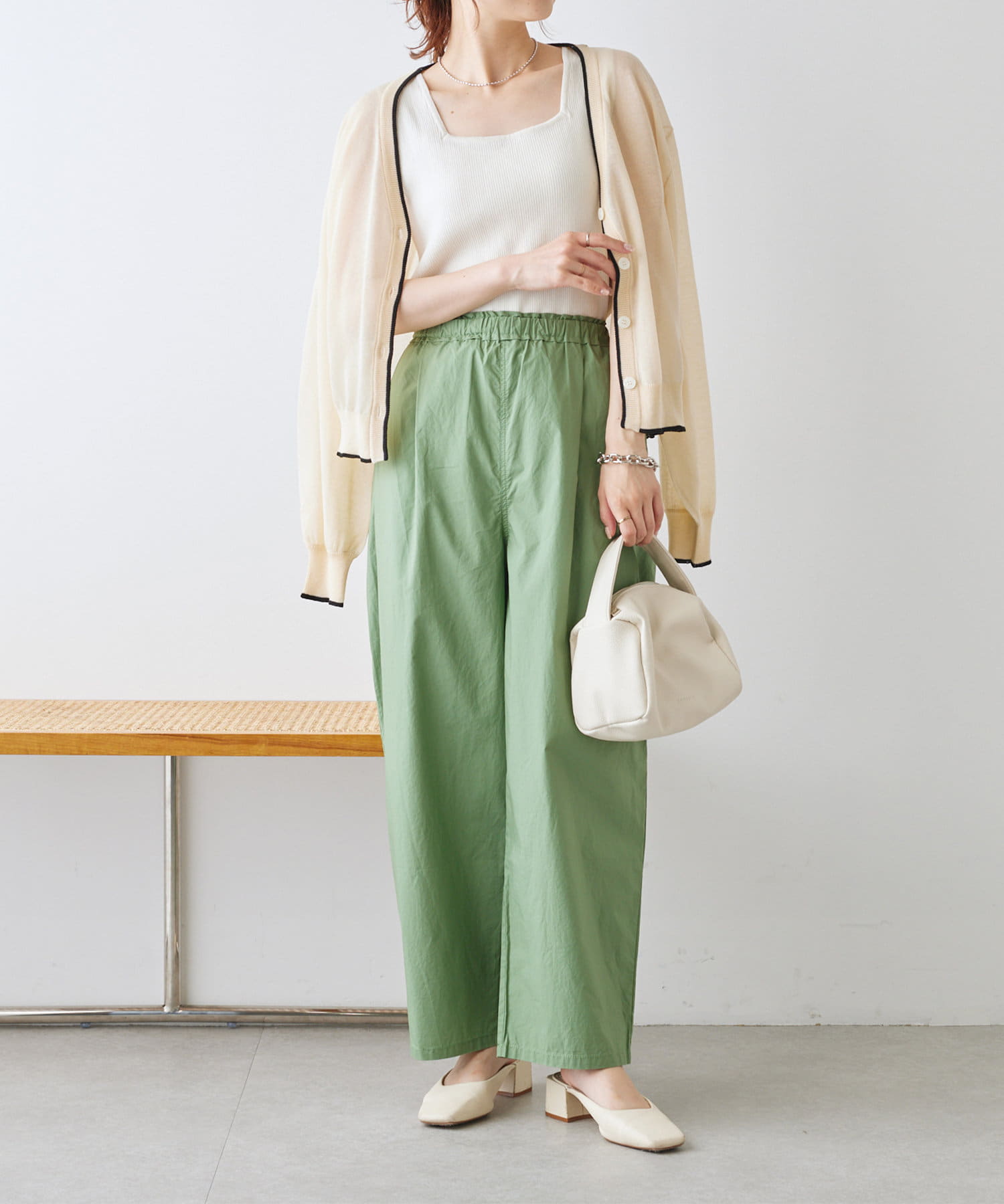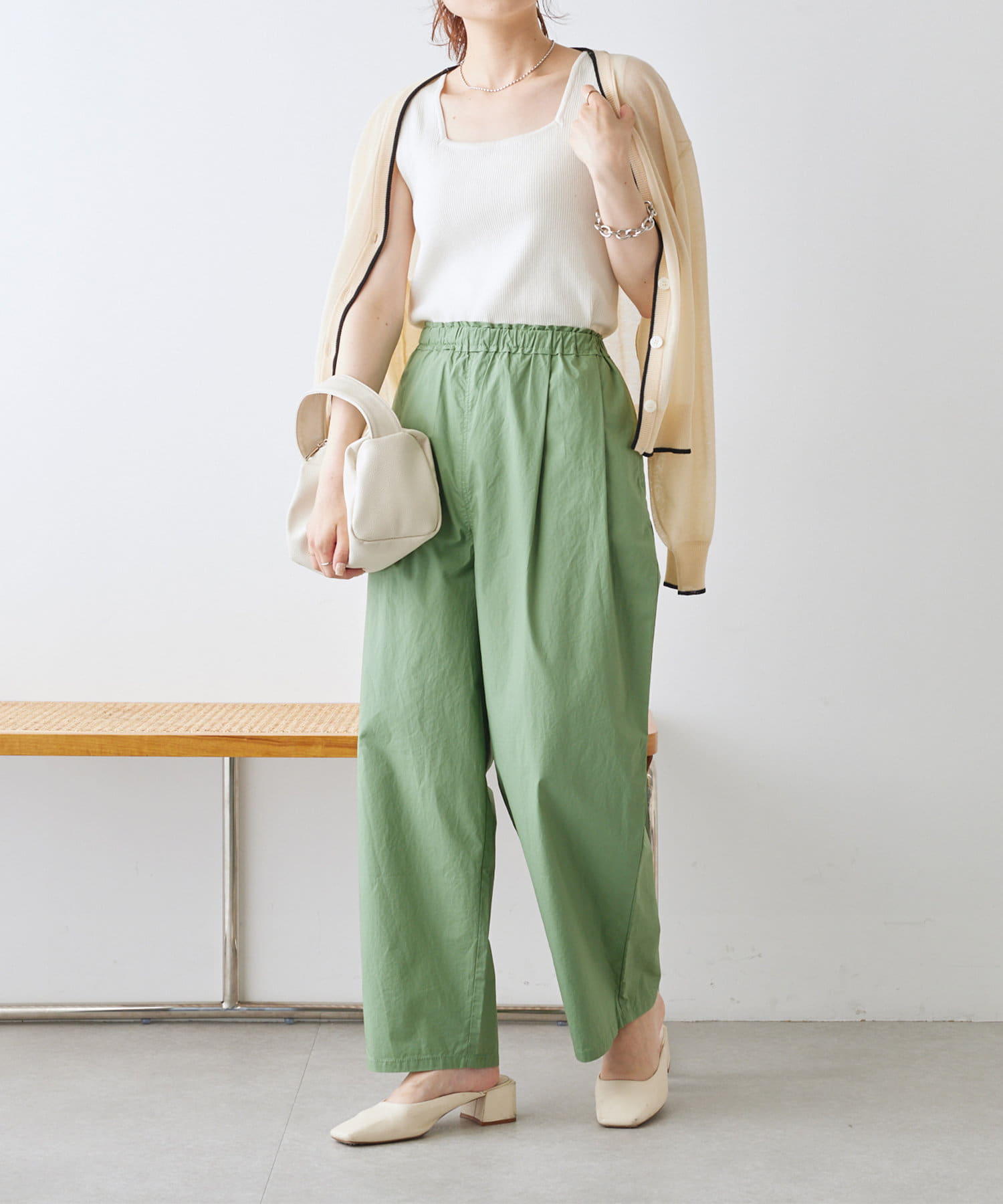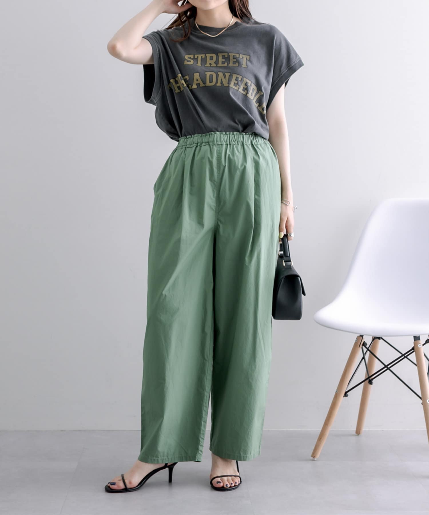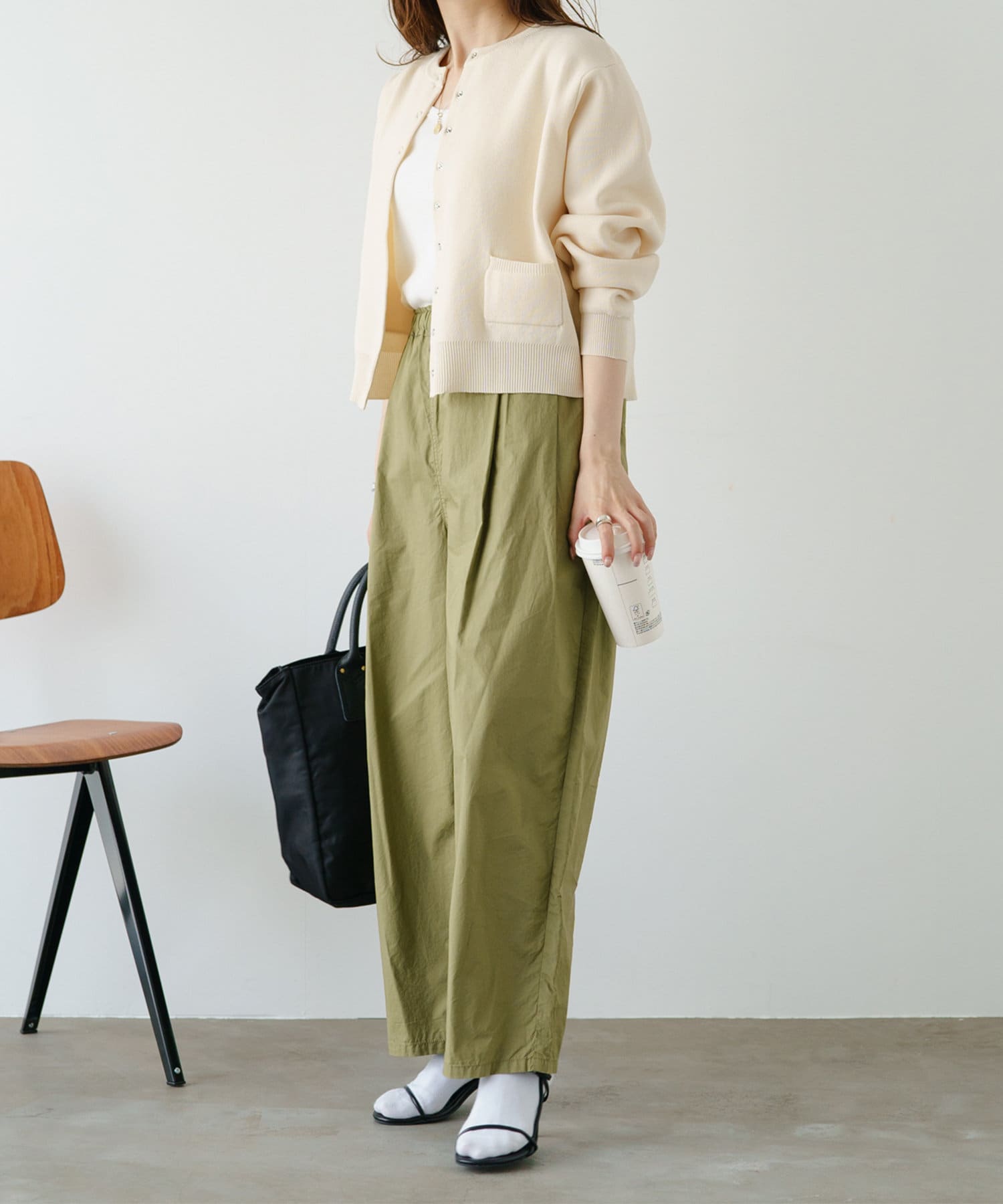 上半身をコンパクトにするとパンツのボリューム感とのバランス感で着やせ効果抜群です。