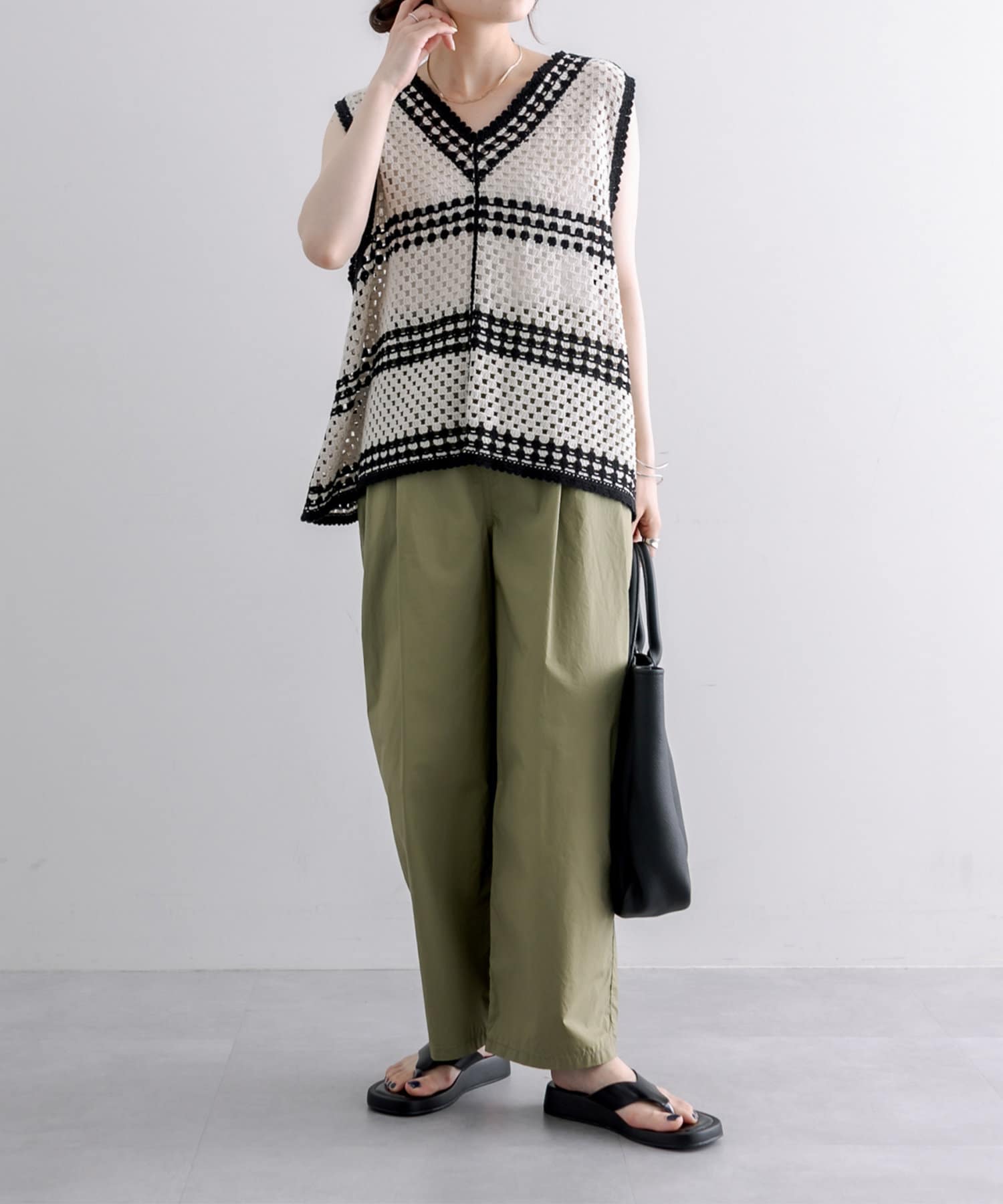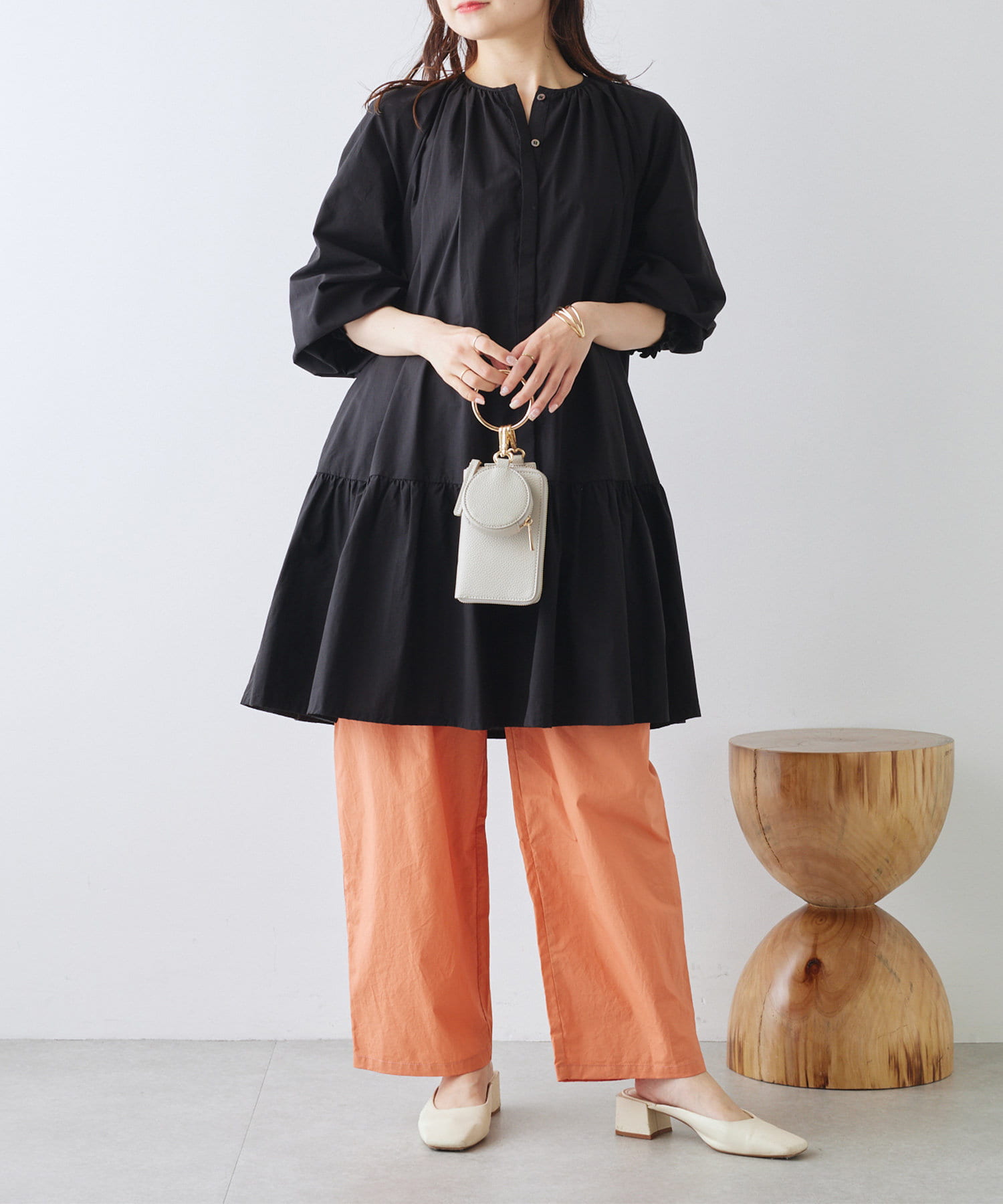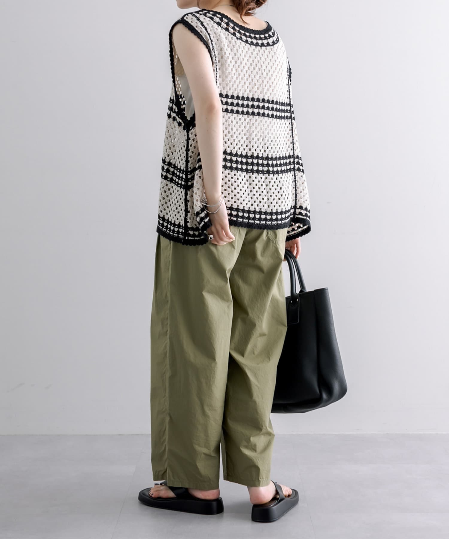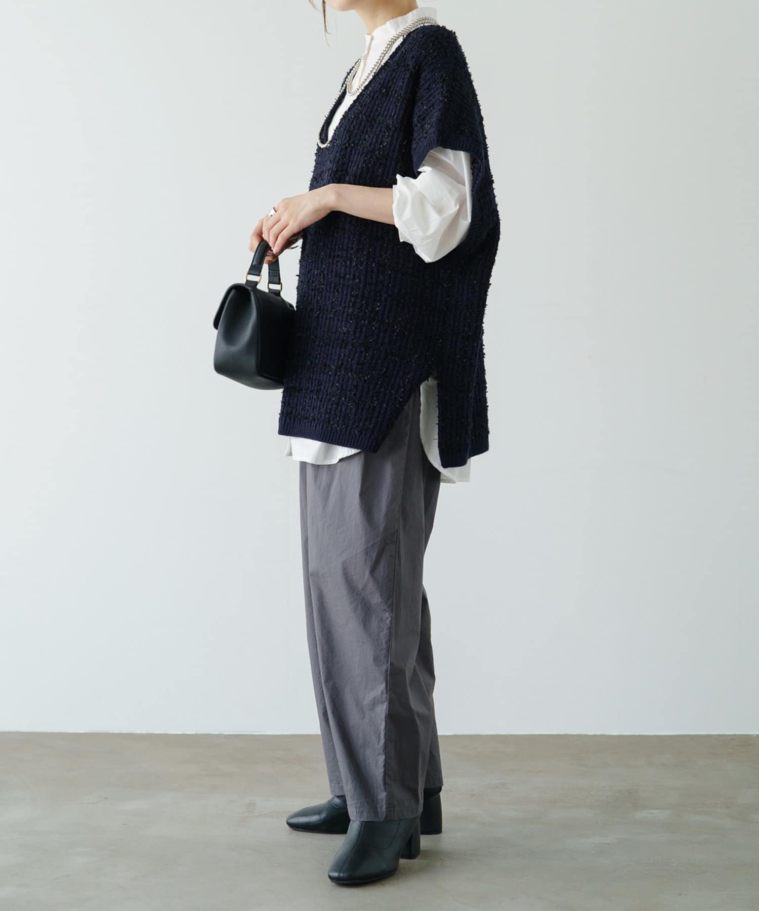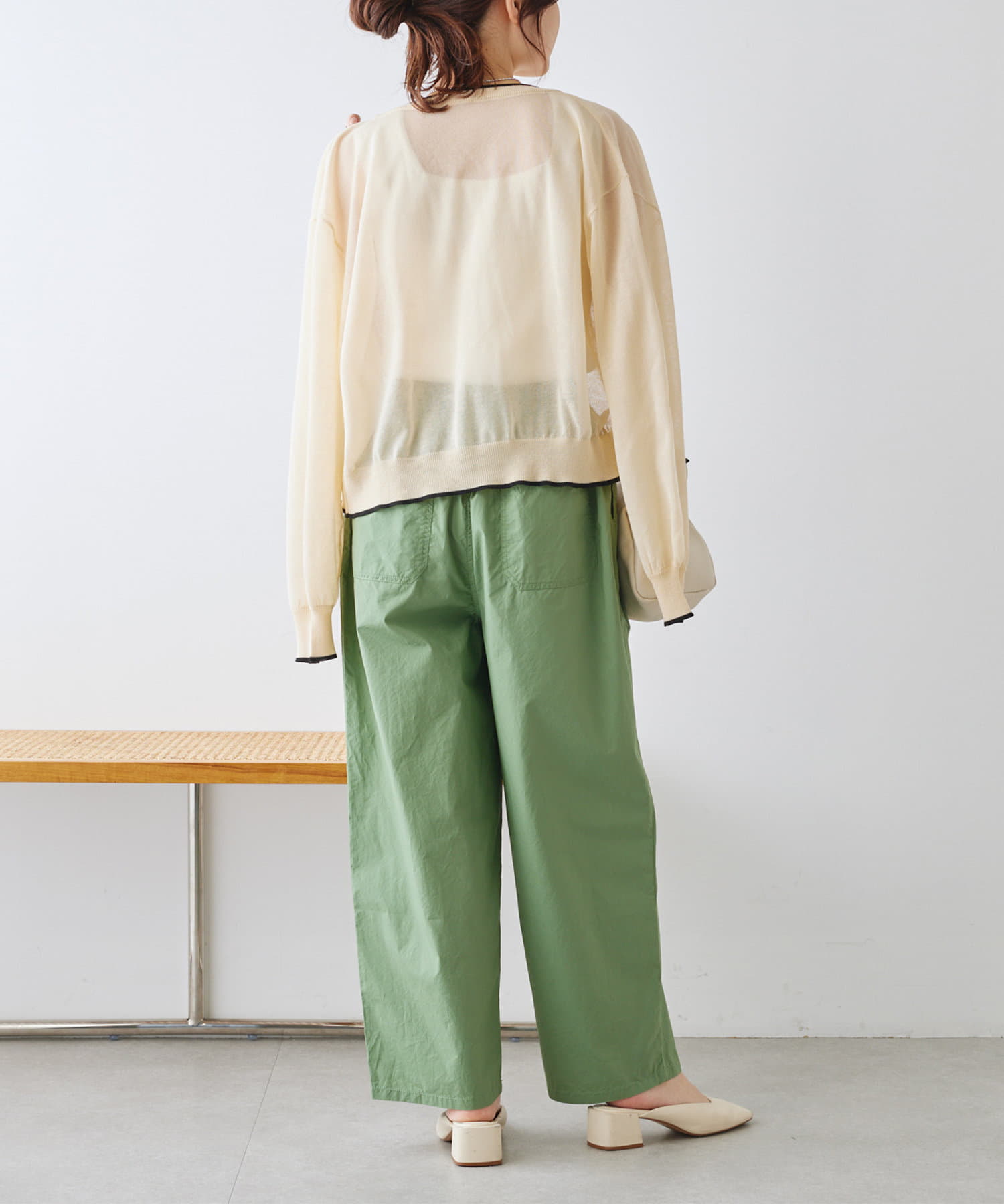 上半身をコンパクトにするとパンツのボリューム感とのバランス感で着やせ効果抜群です。