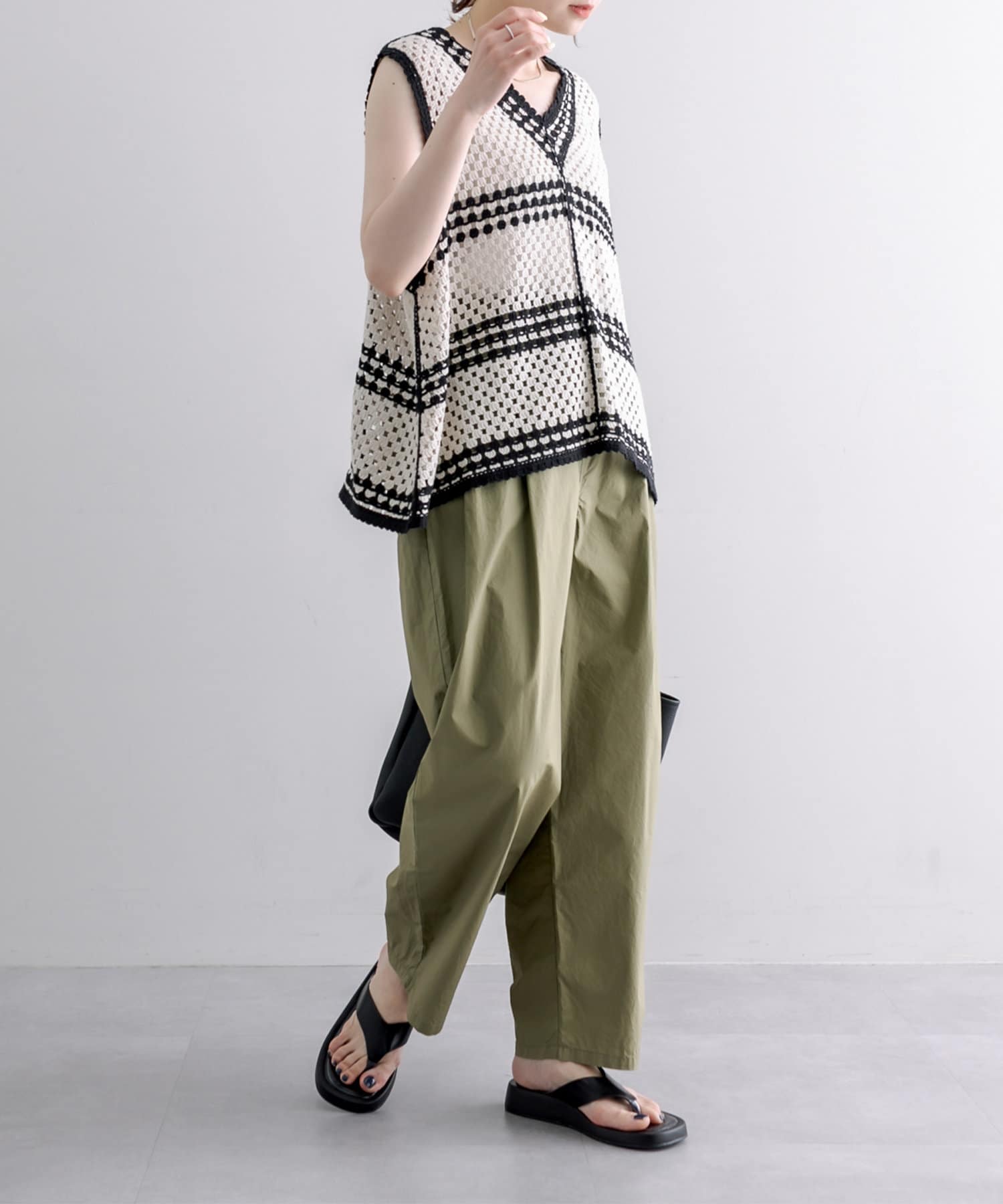 ウエストは総ゴム+紐仕様で調節できるのも嬉しいポイント◎