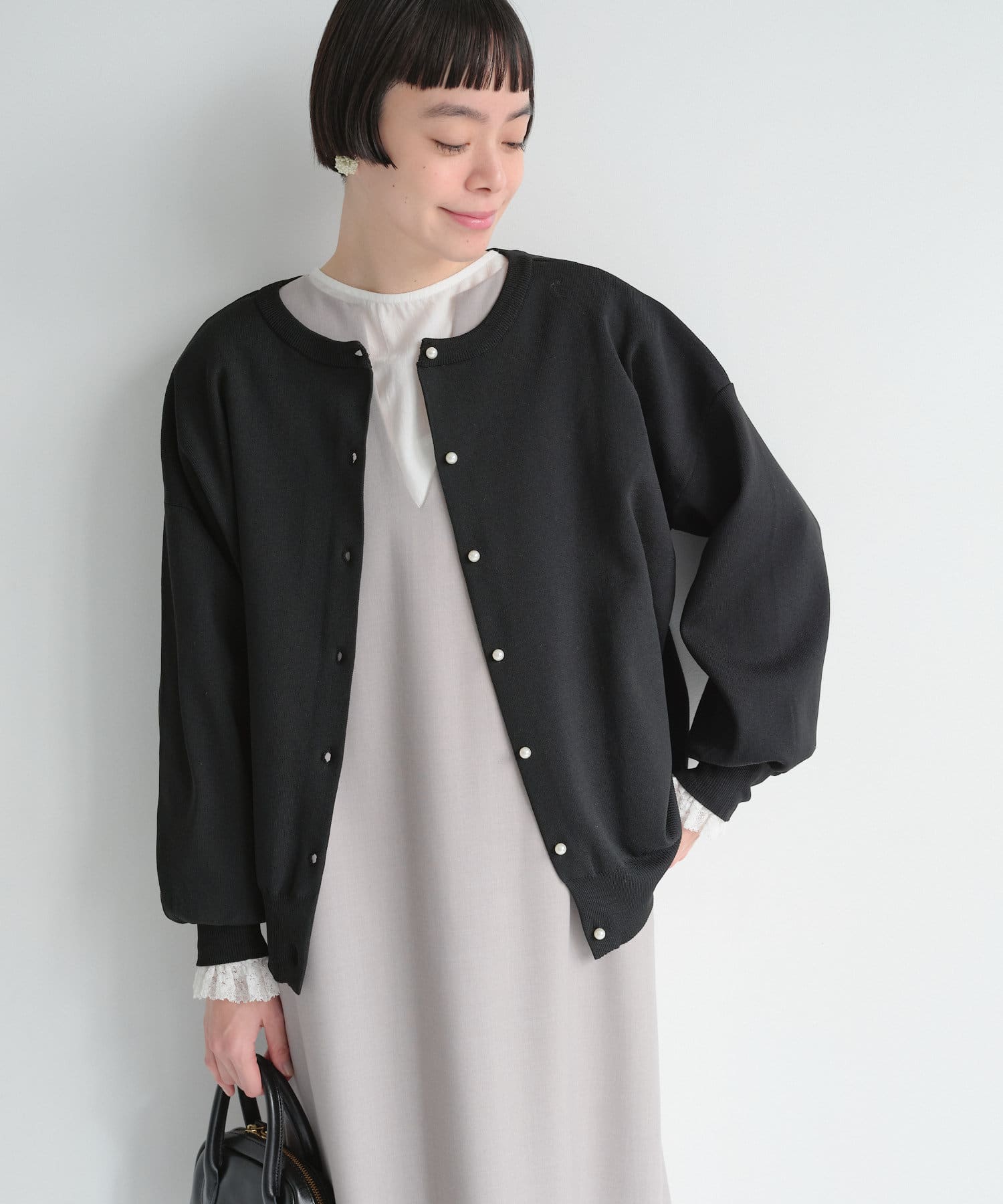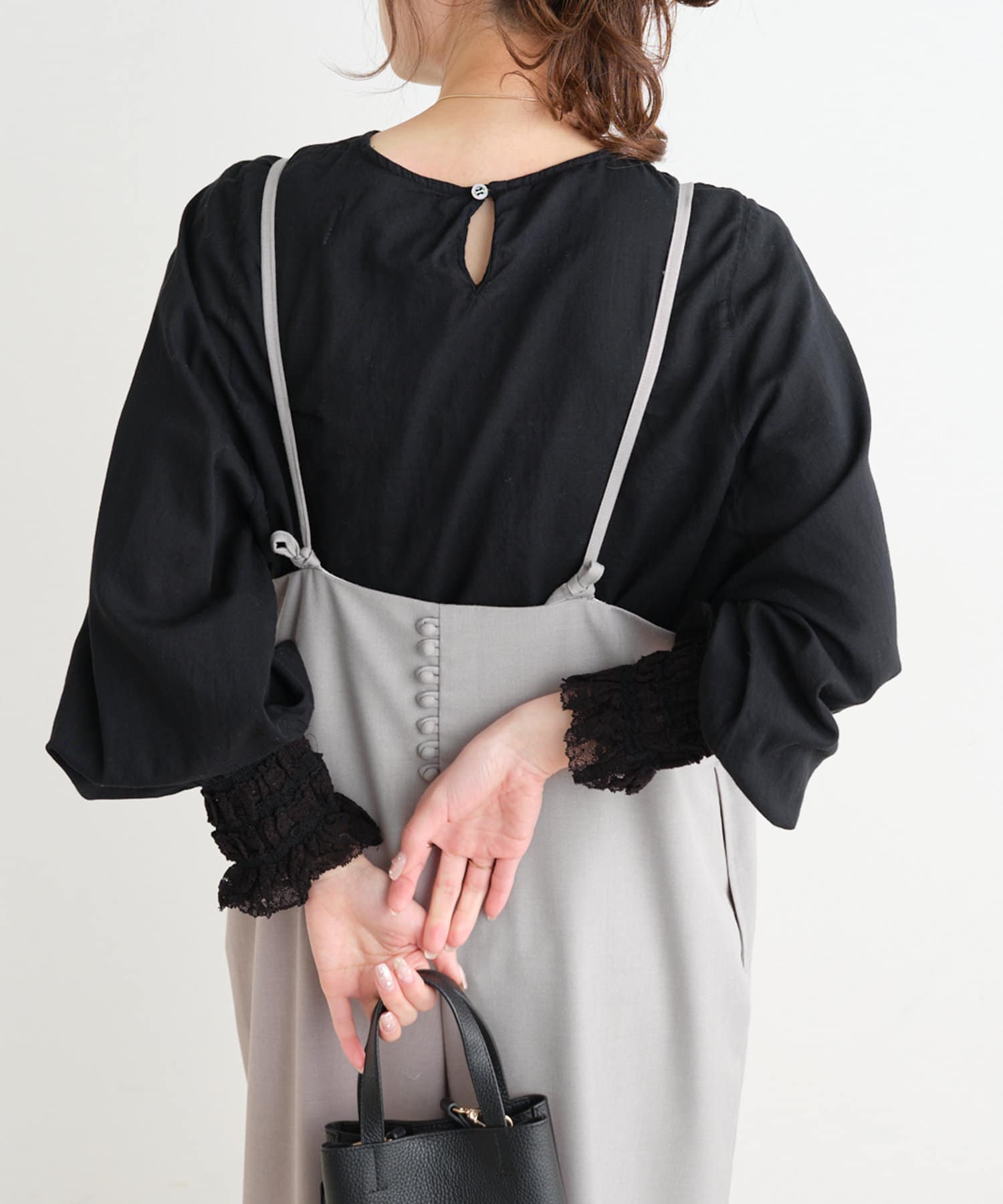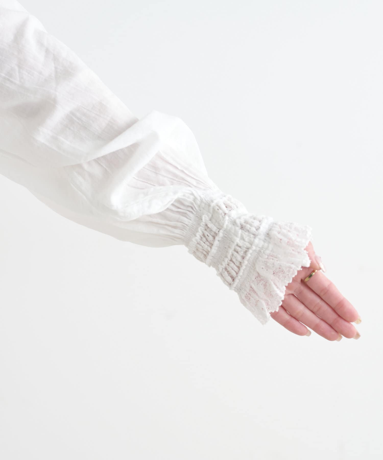 袖口のレースが長めなので、レイヤードスタイルにもってこいの一枚。