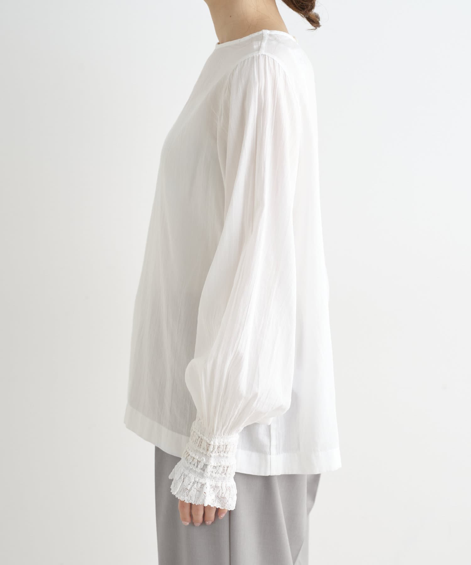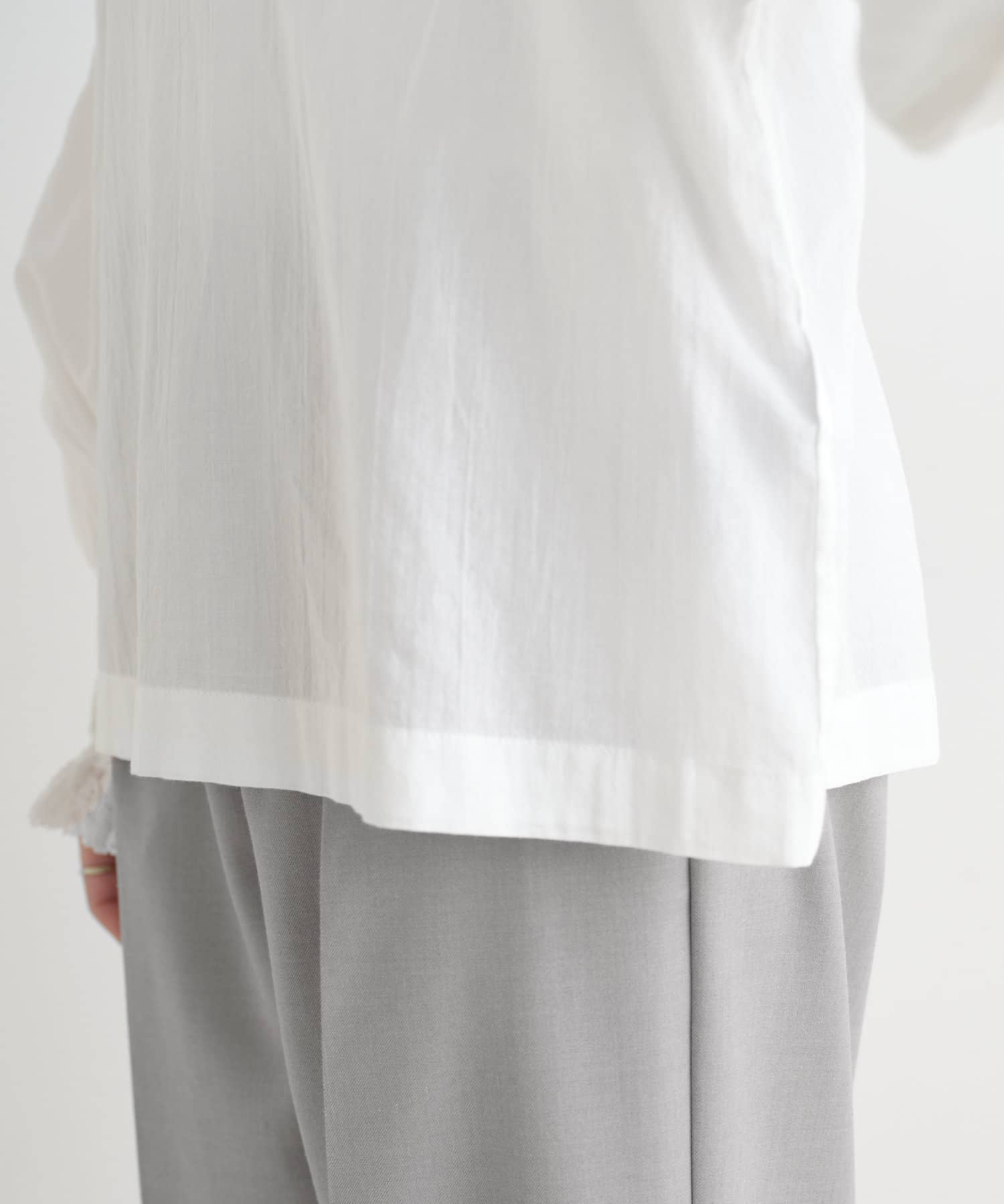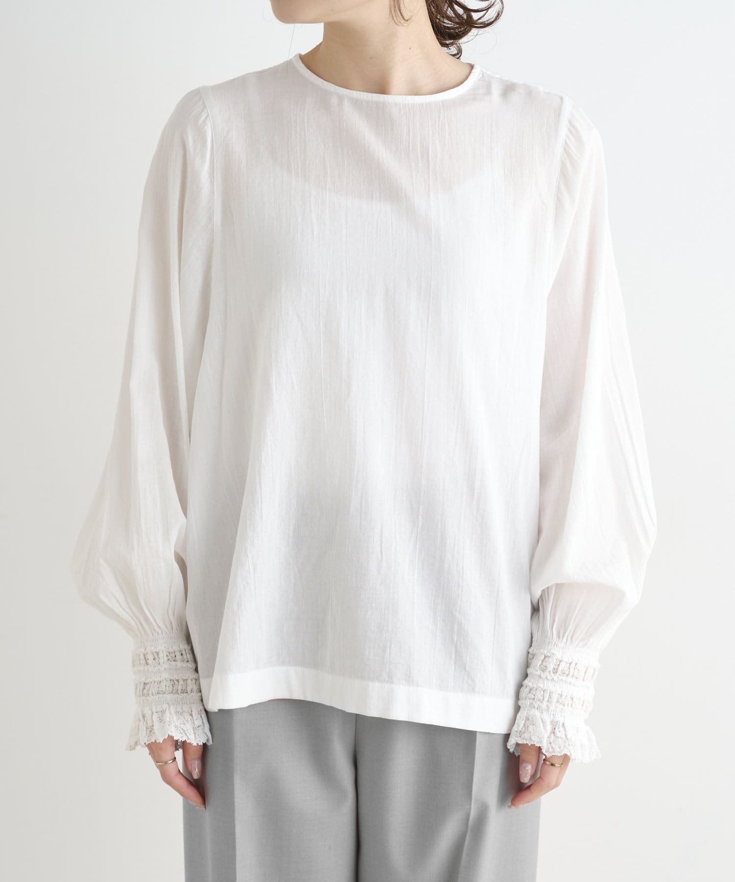 コットンガーゼ袖口レースブラウス