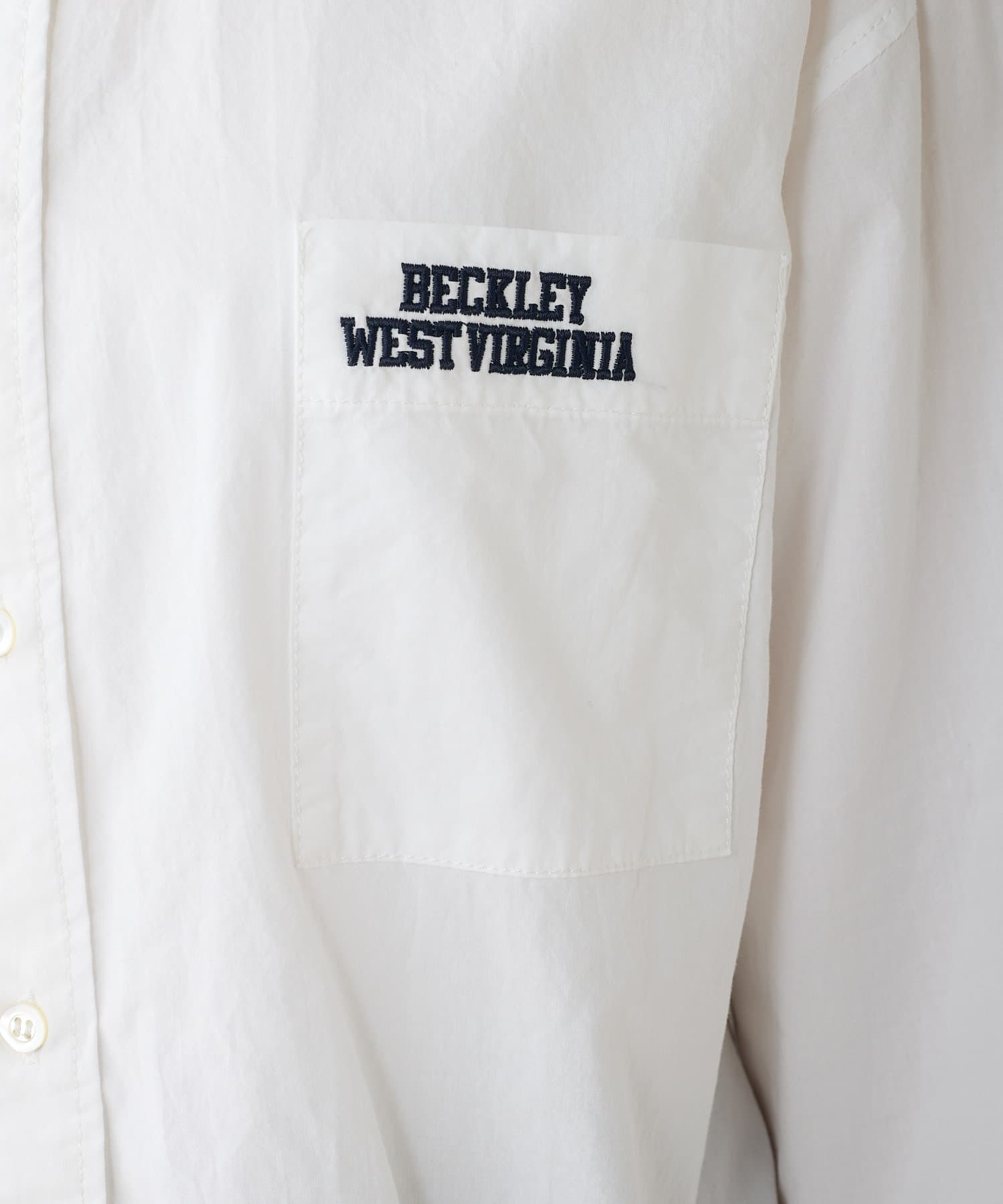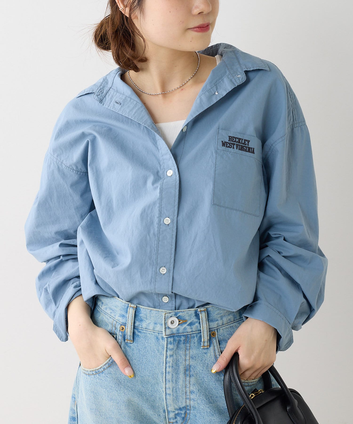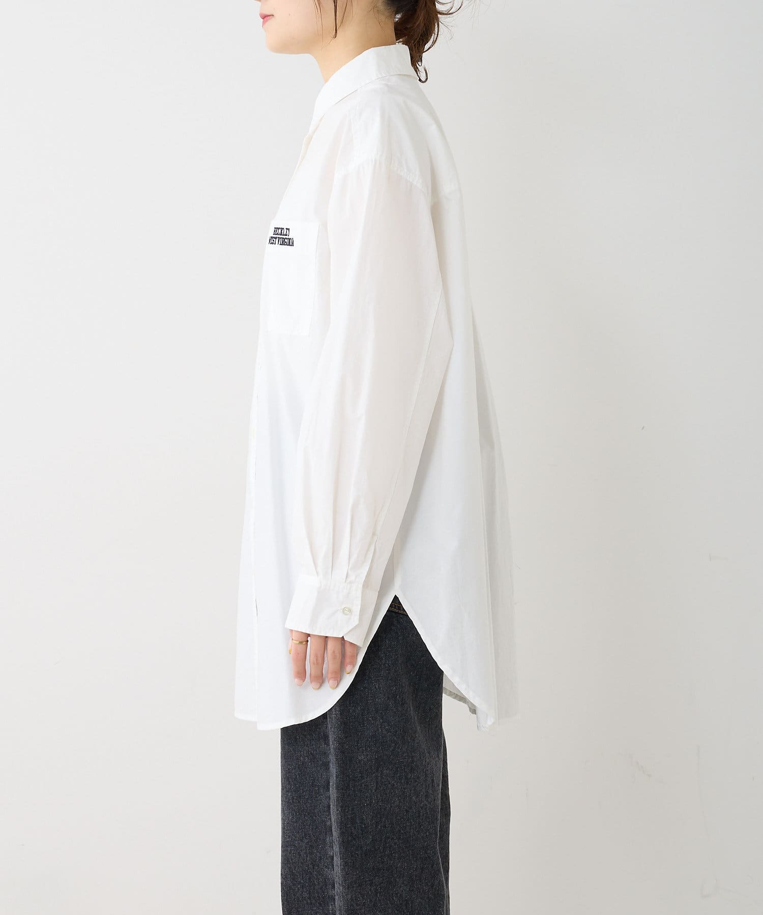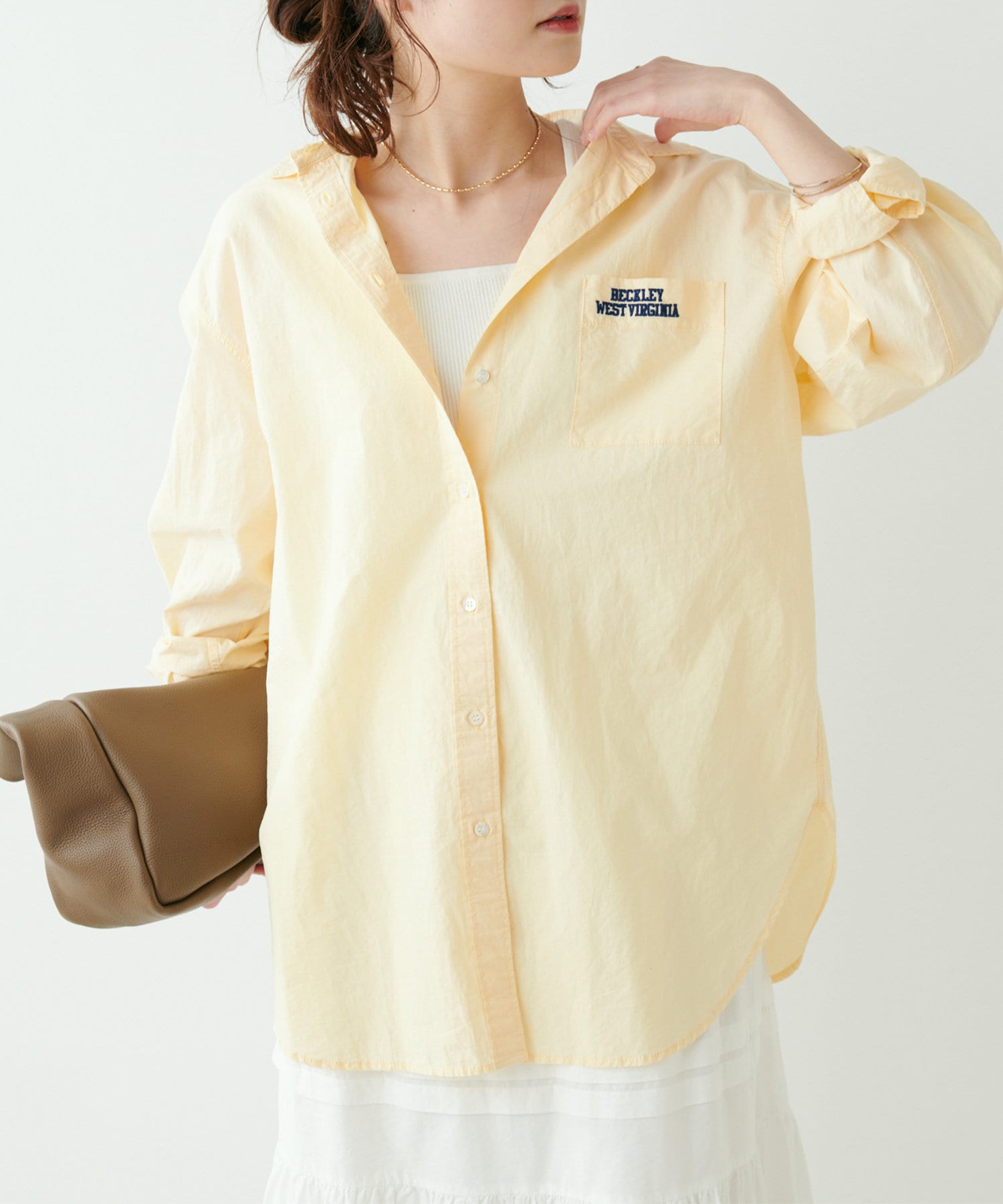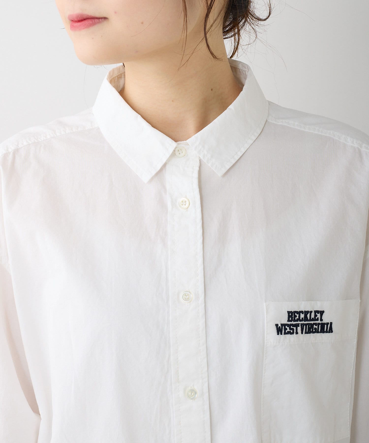 胸ポケットのロゴ刺繍が目を惹くブラウス。
