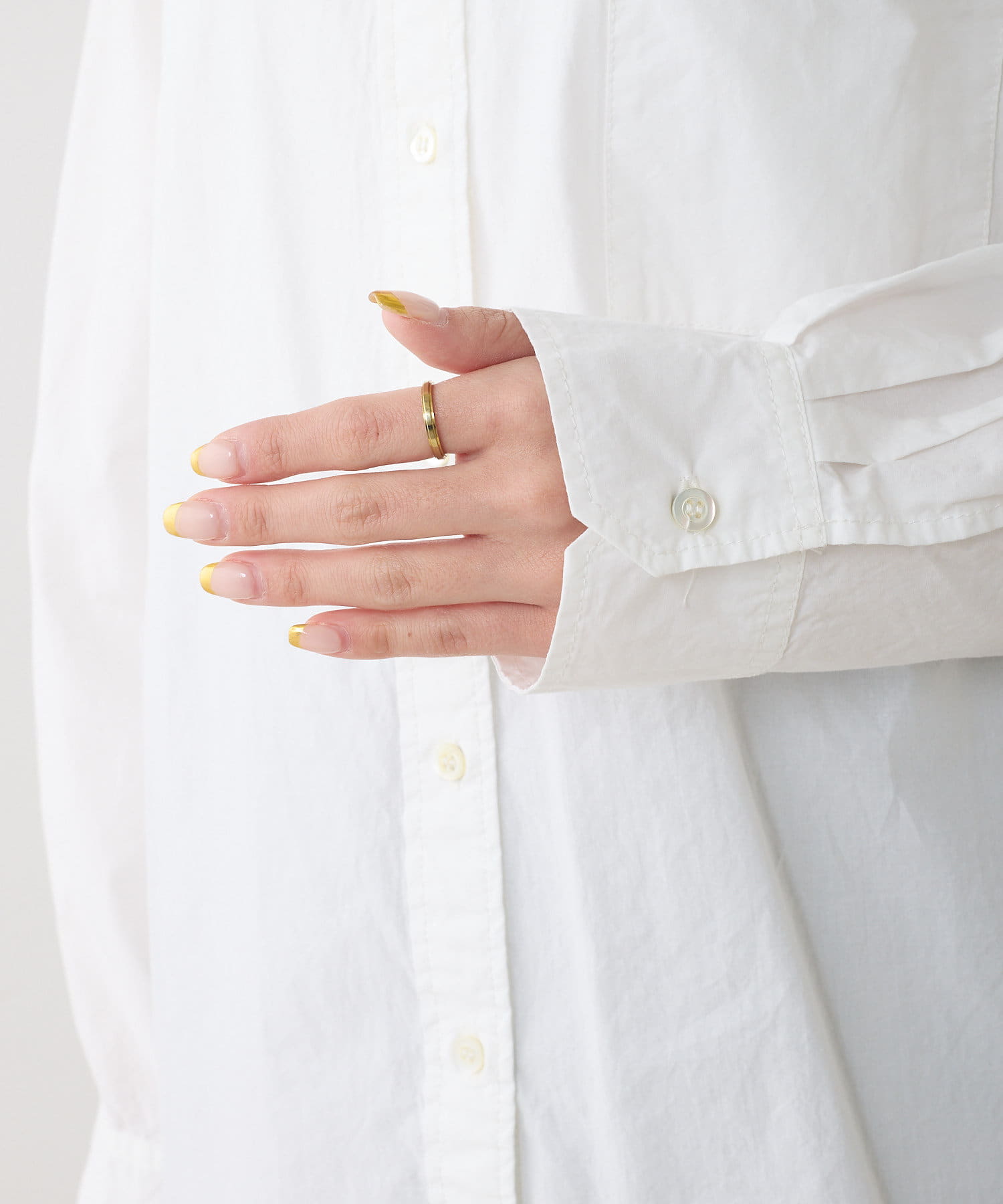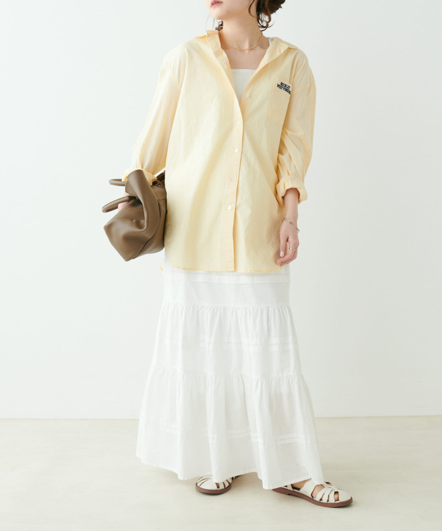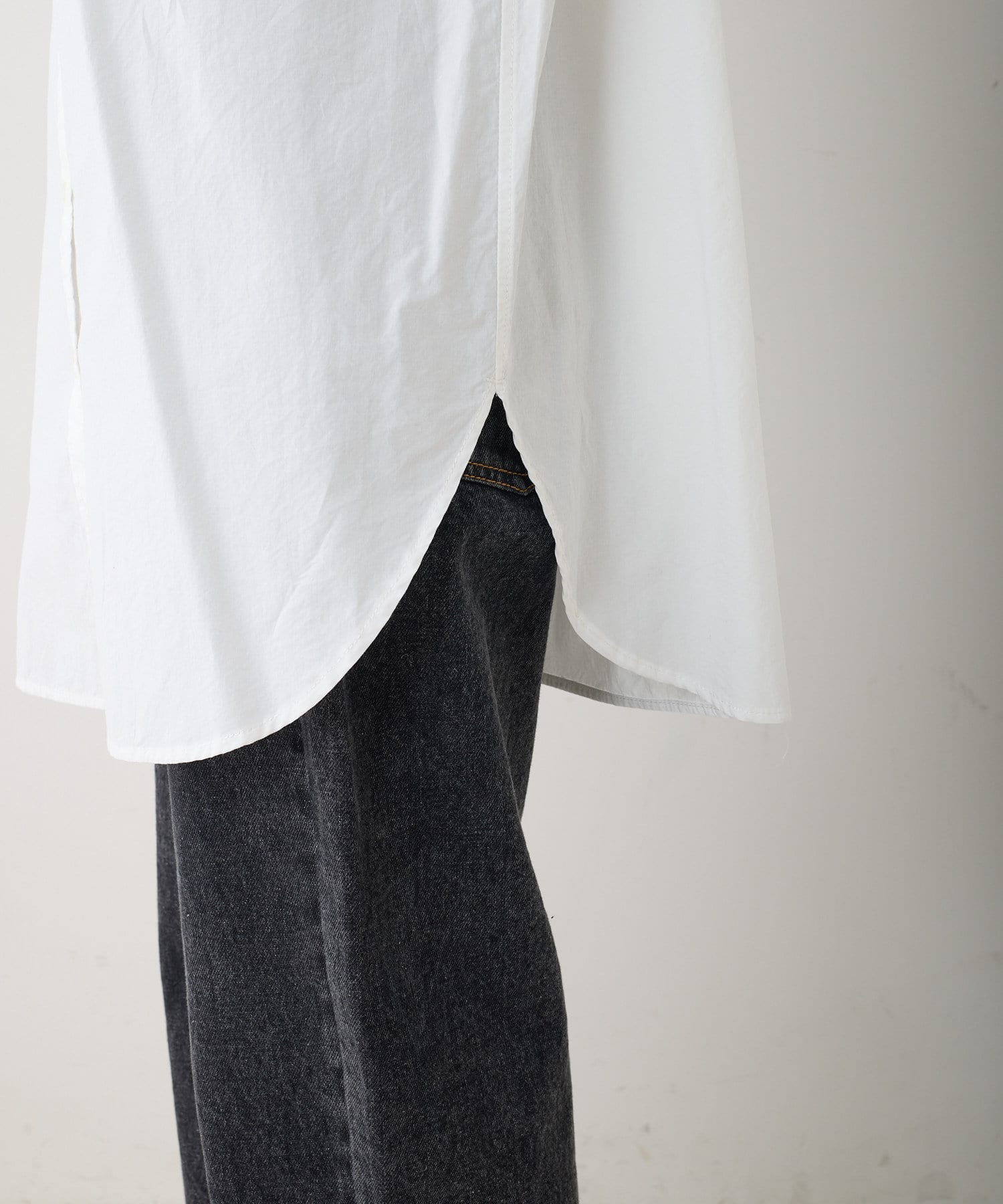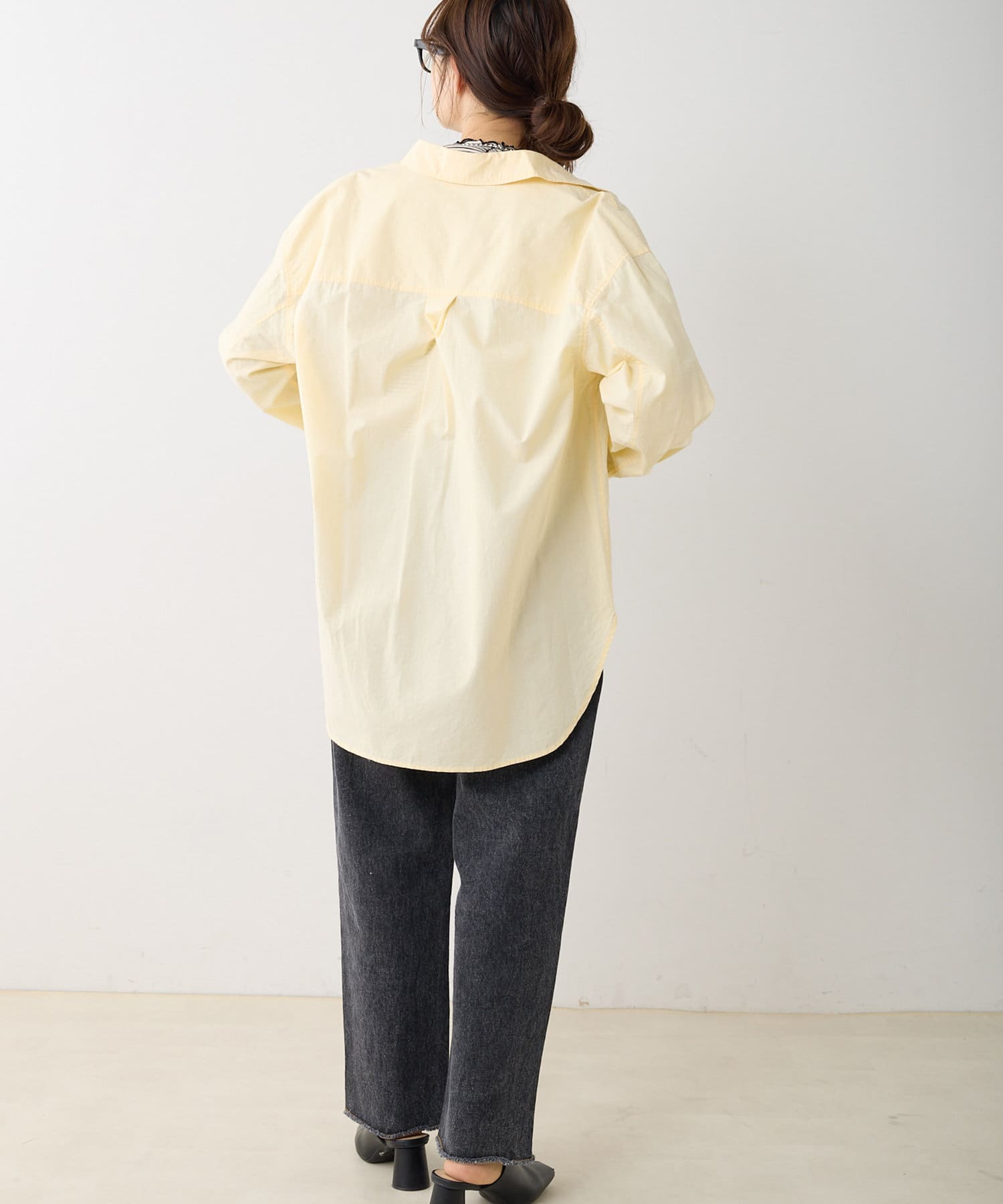 ハリ感の少ない生地から生まれるナチュラルなシワが女性らしい柔らかさをプラスします。