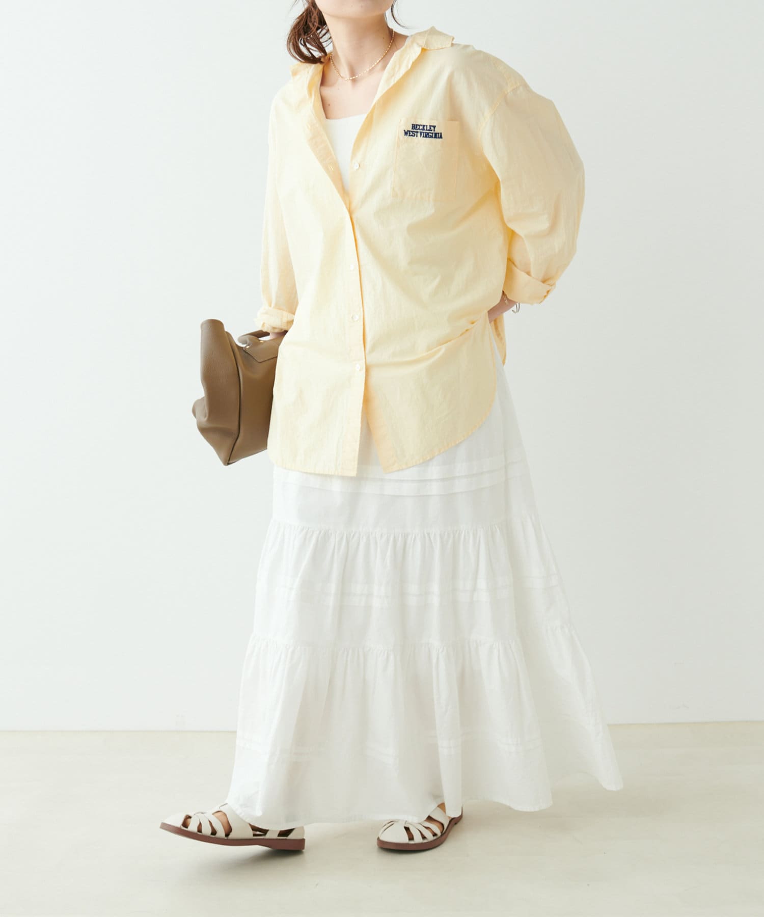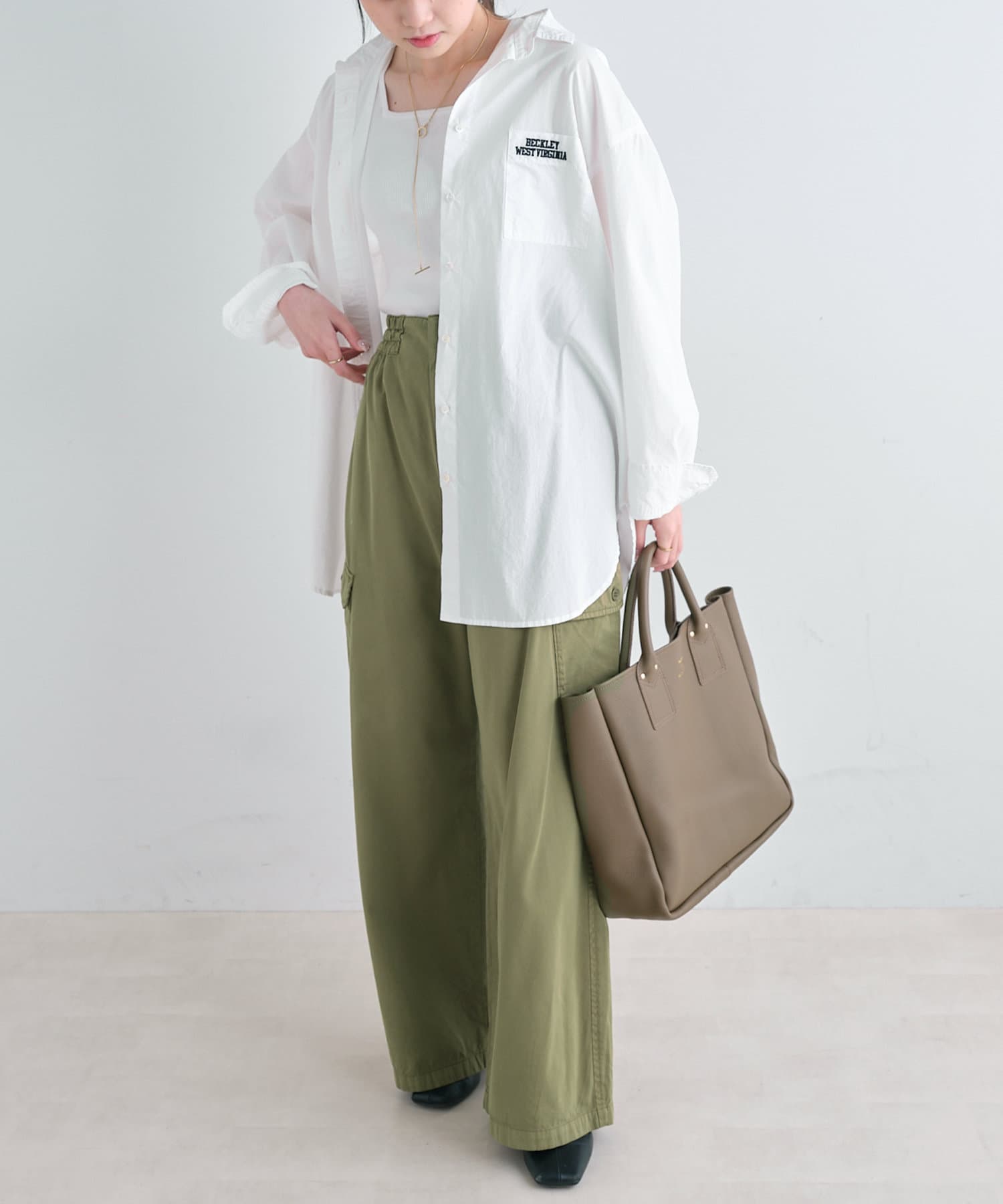 春夏はタンクトップやキャミソールにさっと合わせて抜け感のあるスタイルに◎