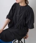 脇まで広くとったアームホールには、ふんだんにギャザーを施し、シックなシルエットに。