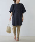 着丈はチュニック丈なので、細身のパンツとの相性が抜群です。