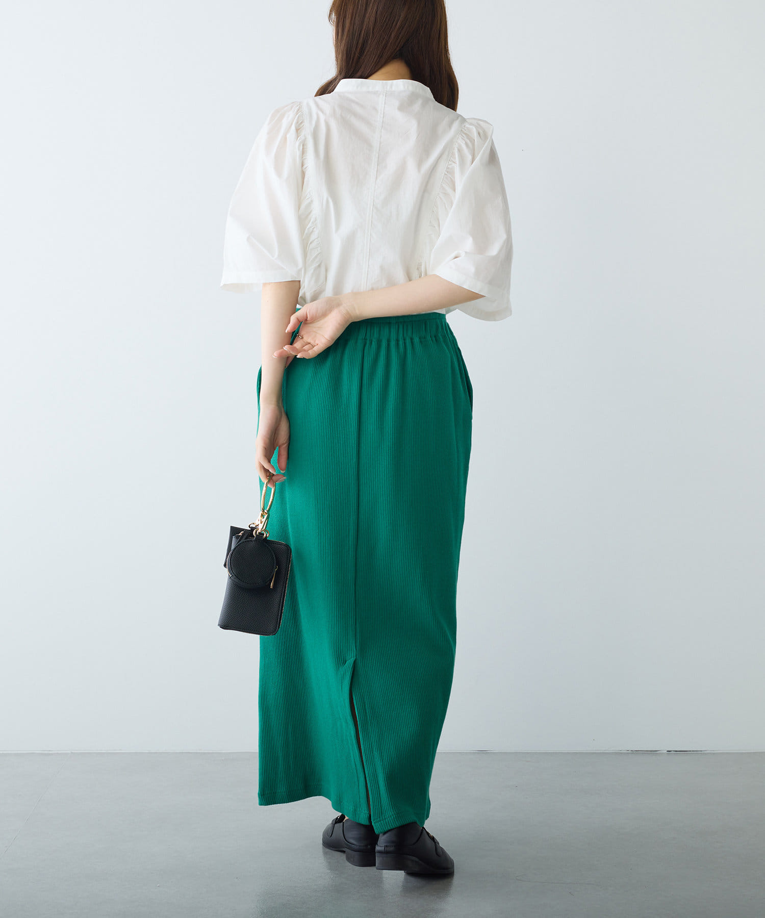 印象的なラウンドヘムはどんなボトムスとも相性抜群です。
