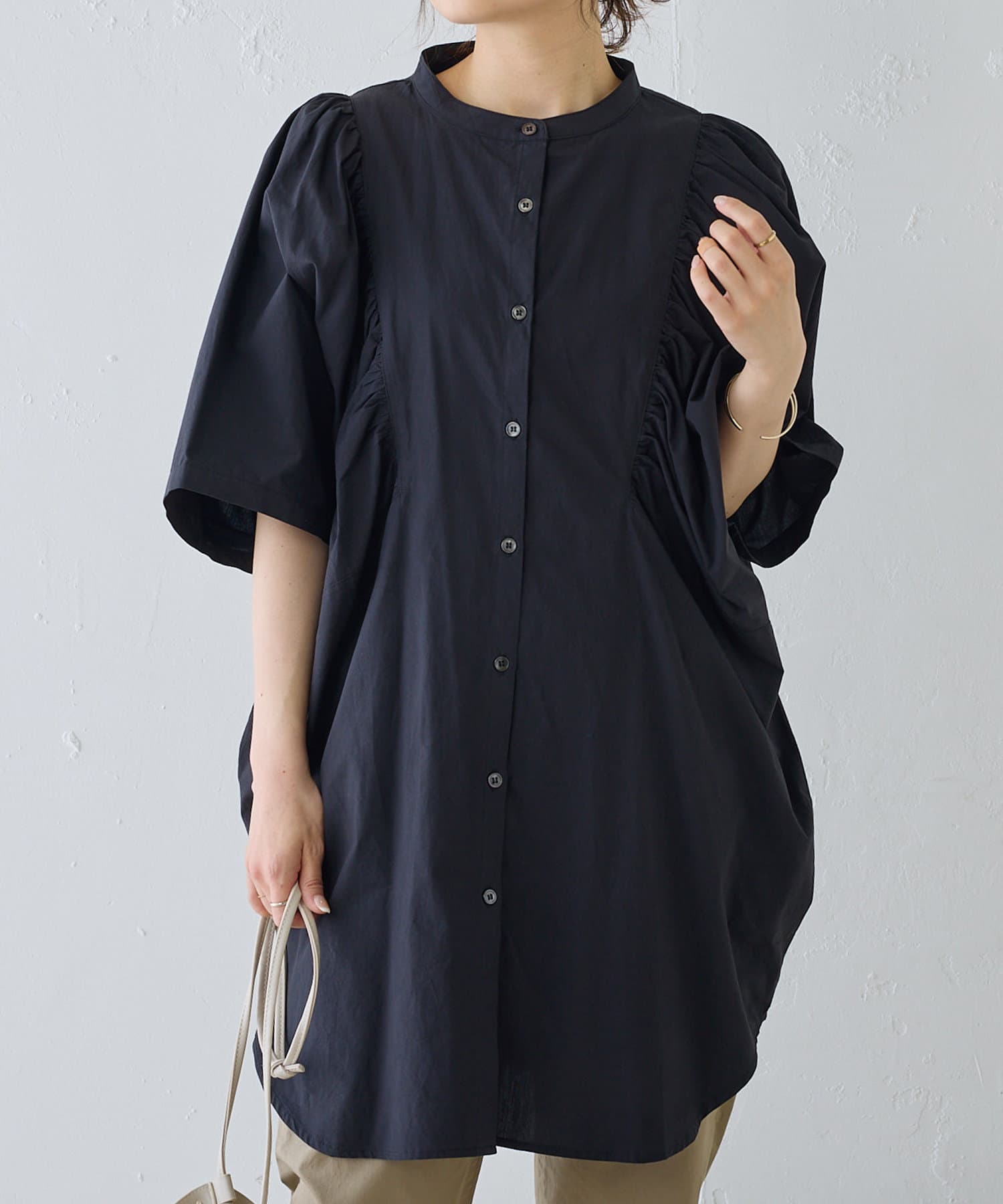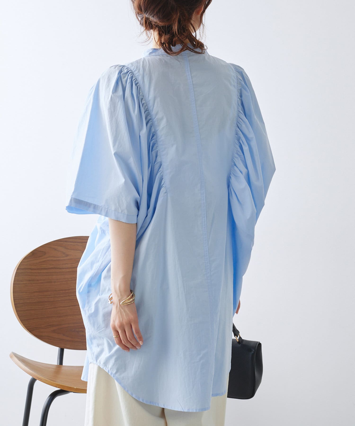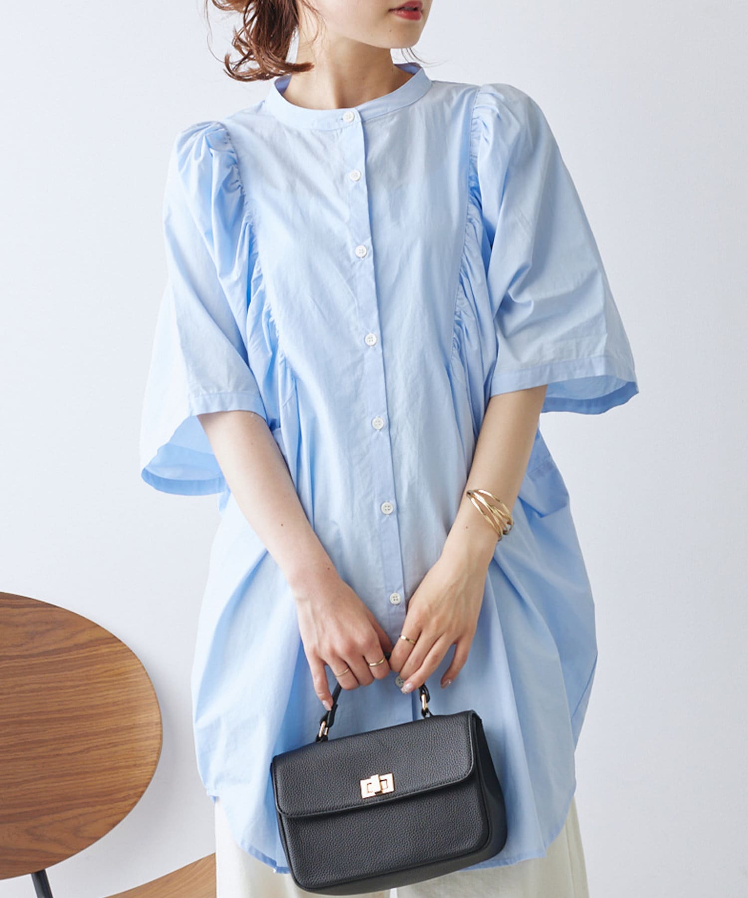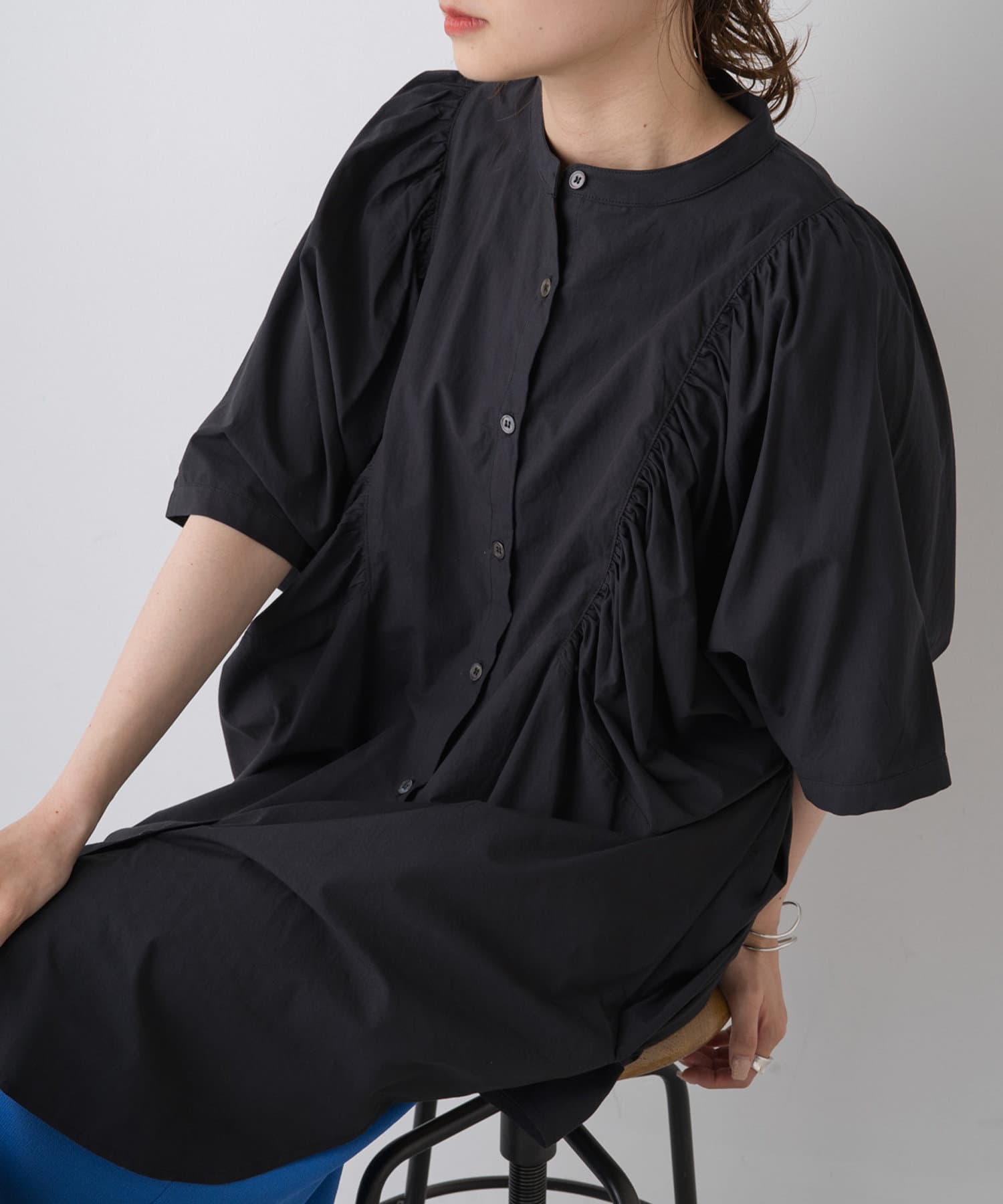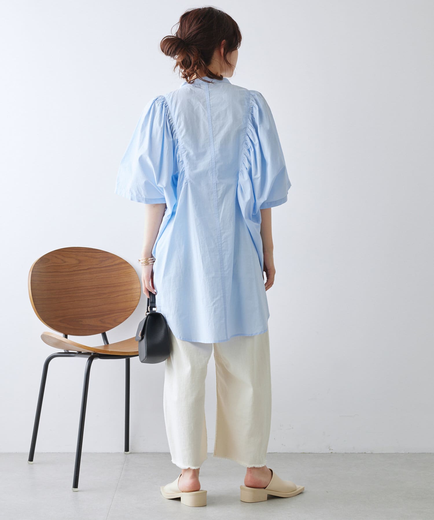 ふんわりとした袖のシルエットを楽しめるチュニックブラウス。