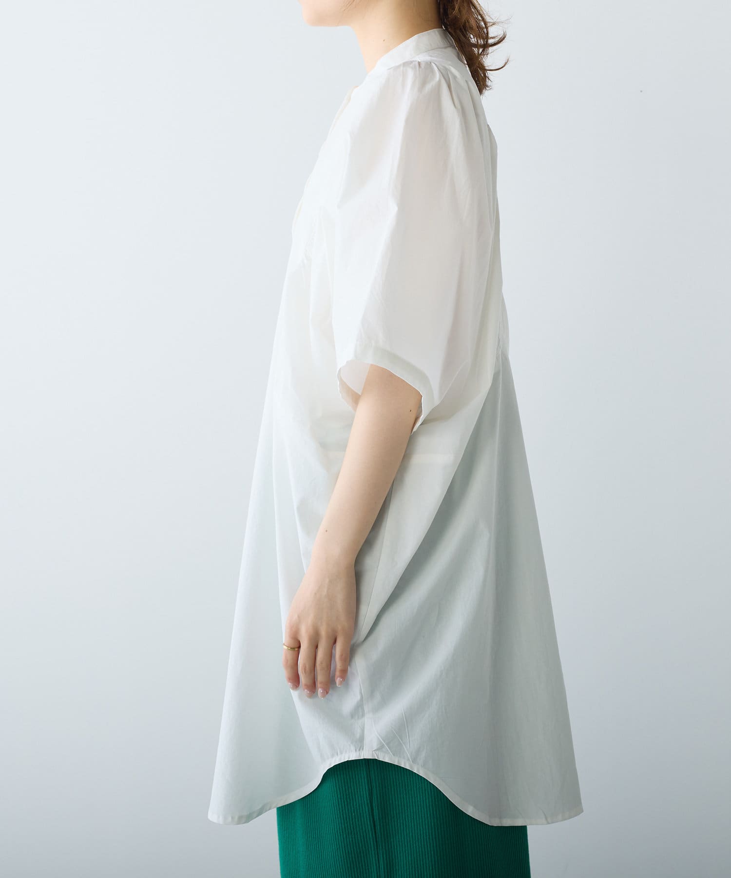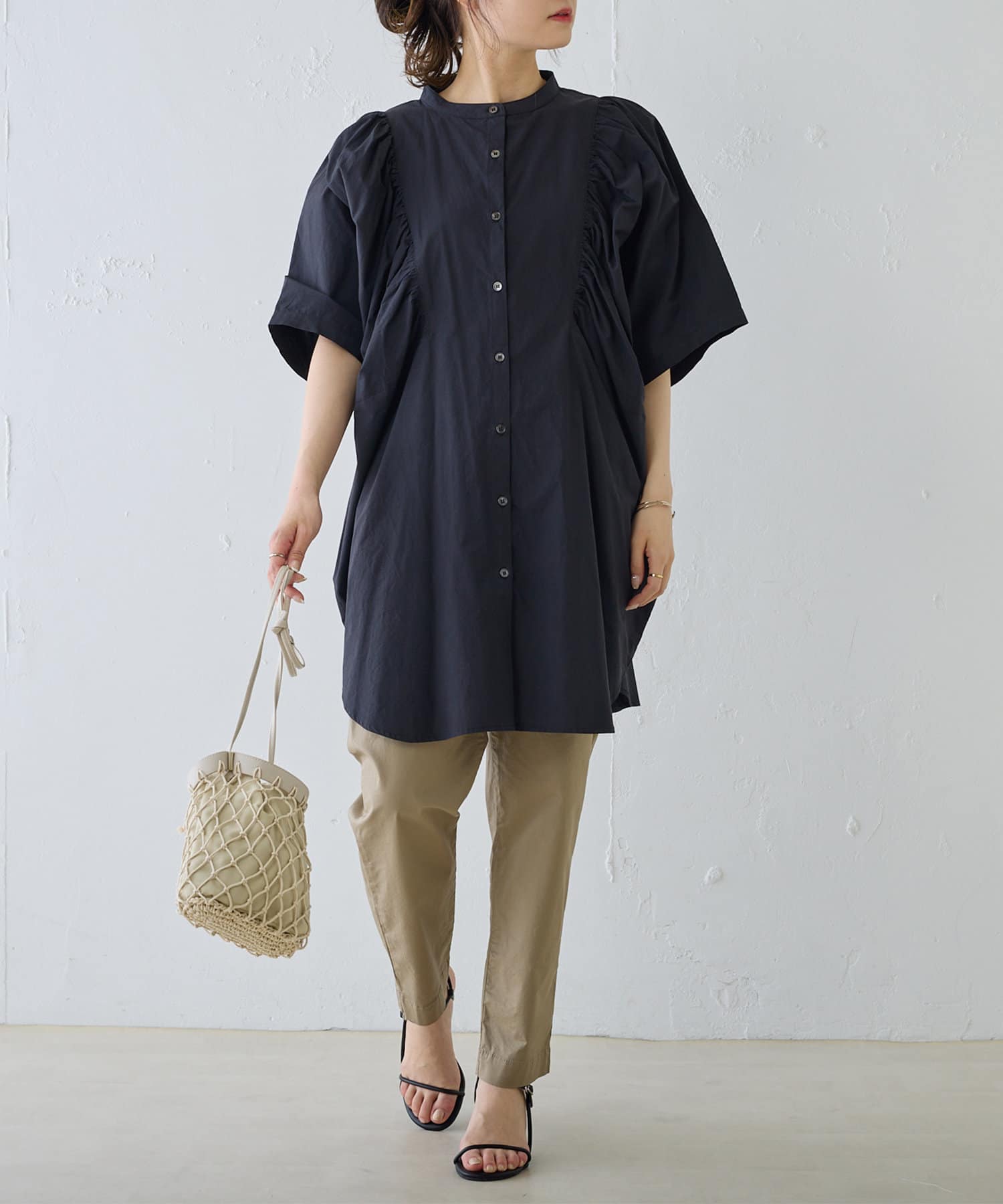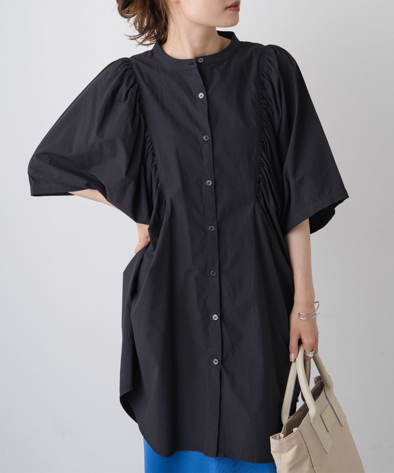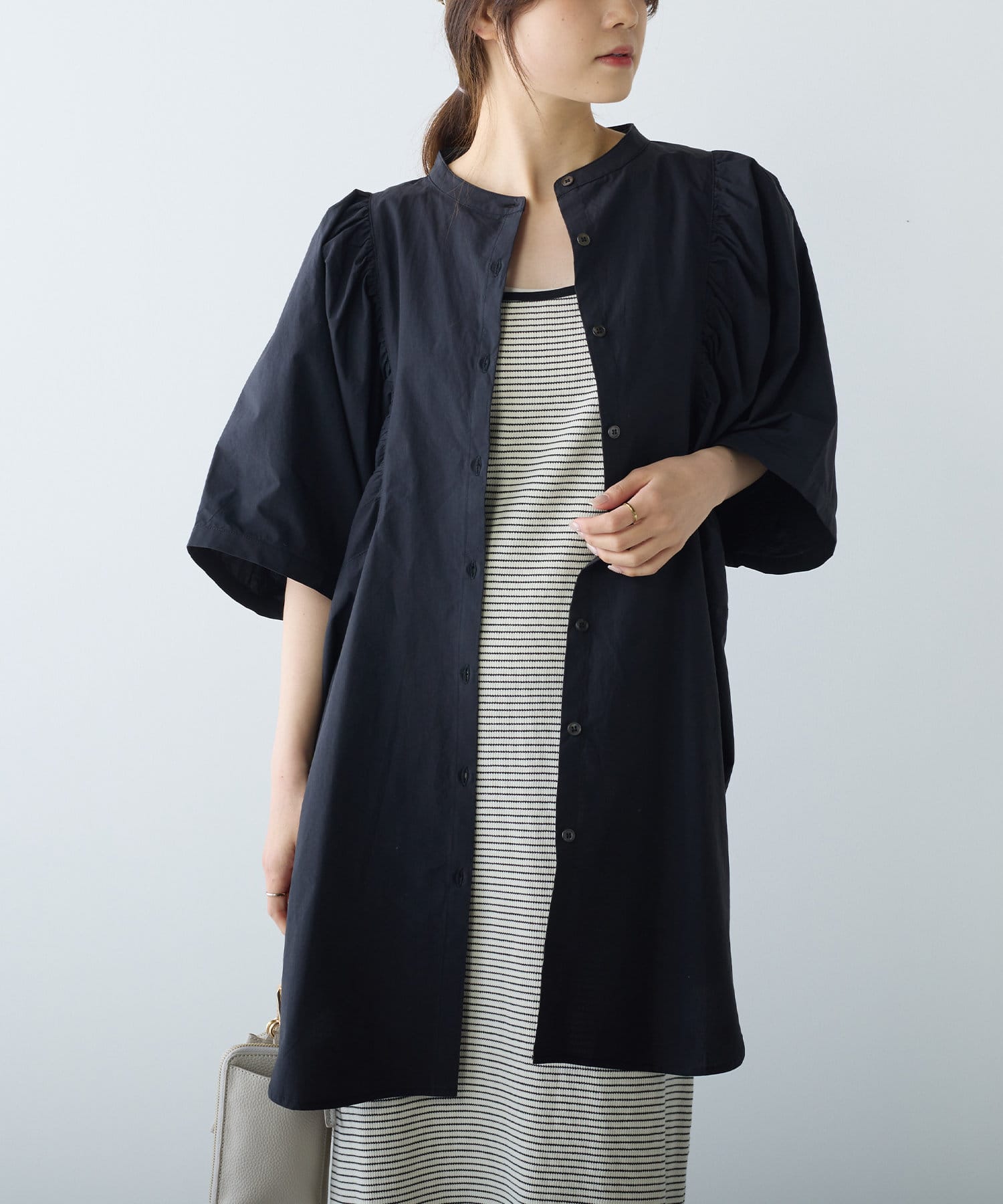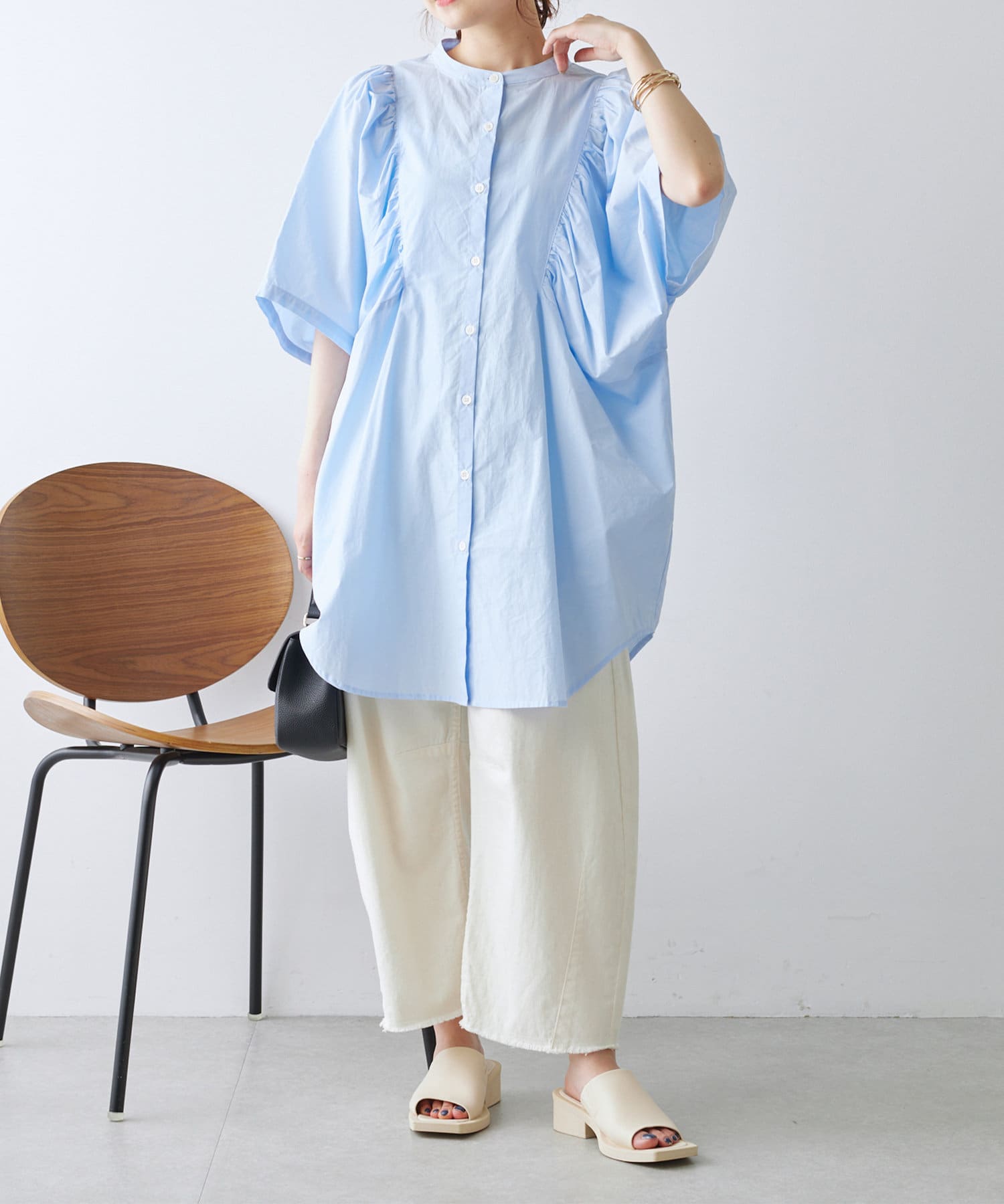 ふんわりとした袖のシルエットを楽しめるチュニックブラウス。