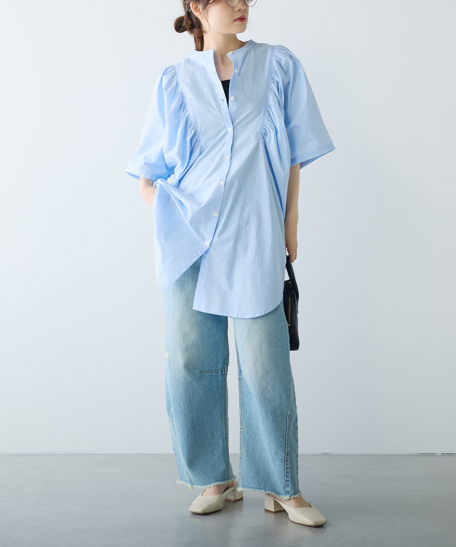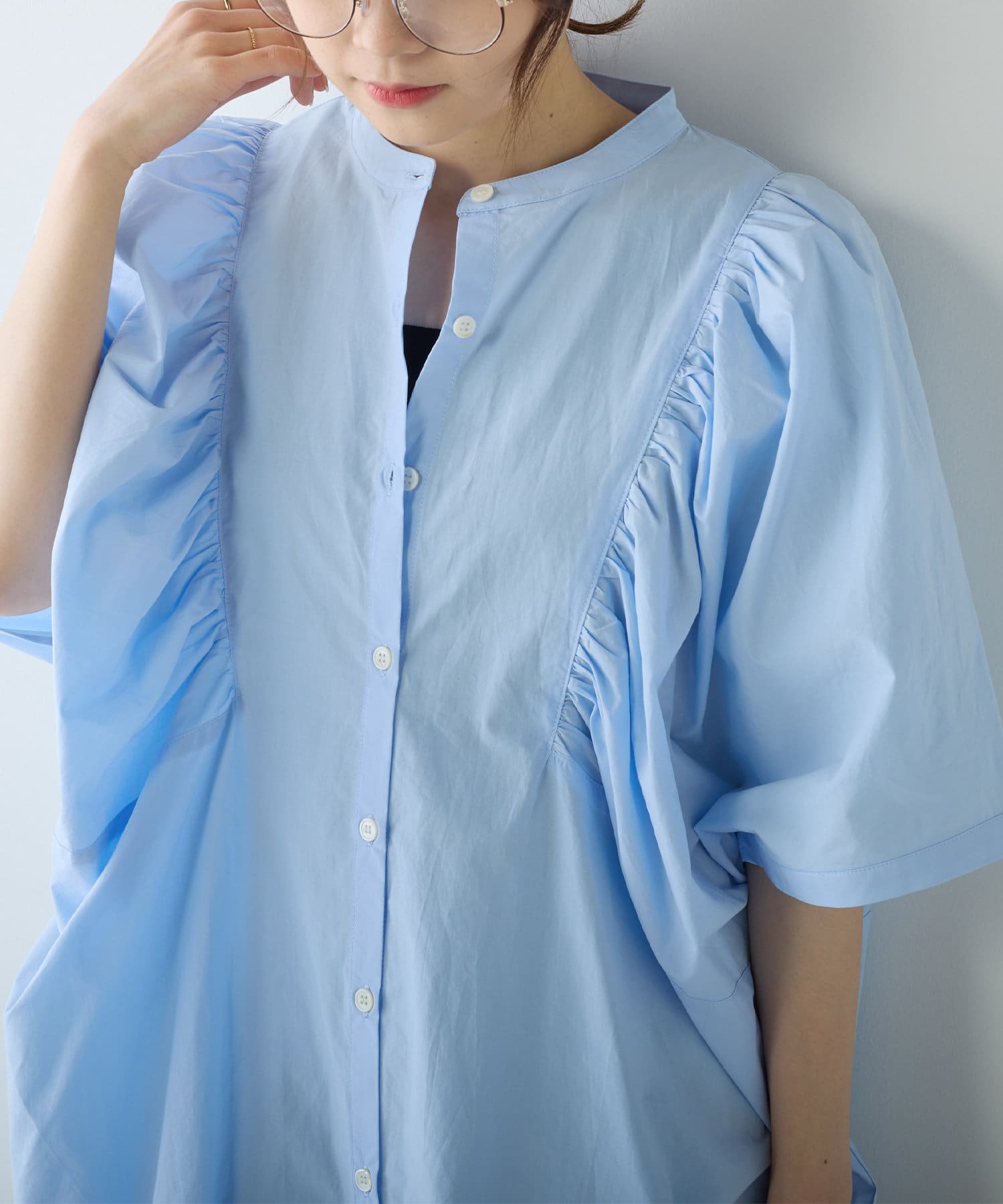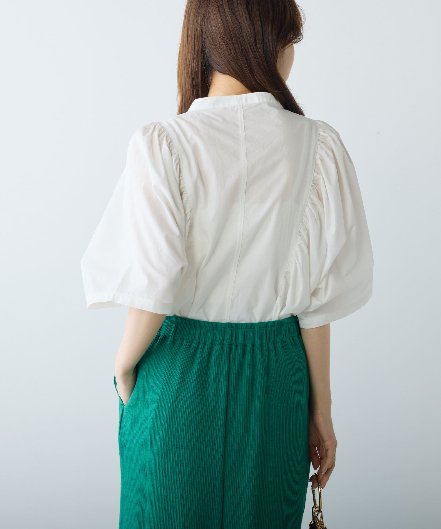 【Du noir/WEB限定】バンドカラー袖ボリュームブラウス