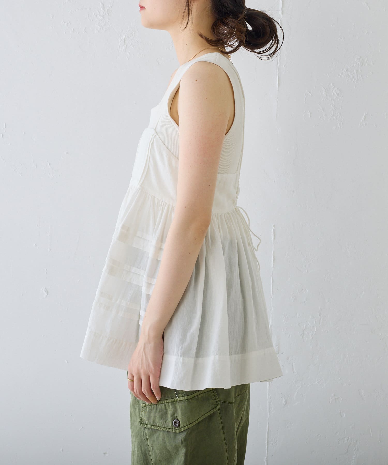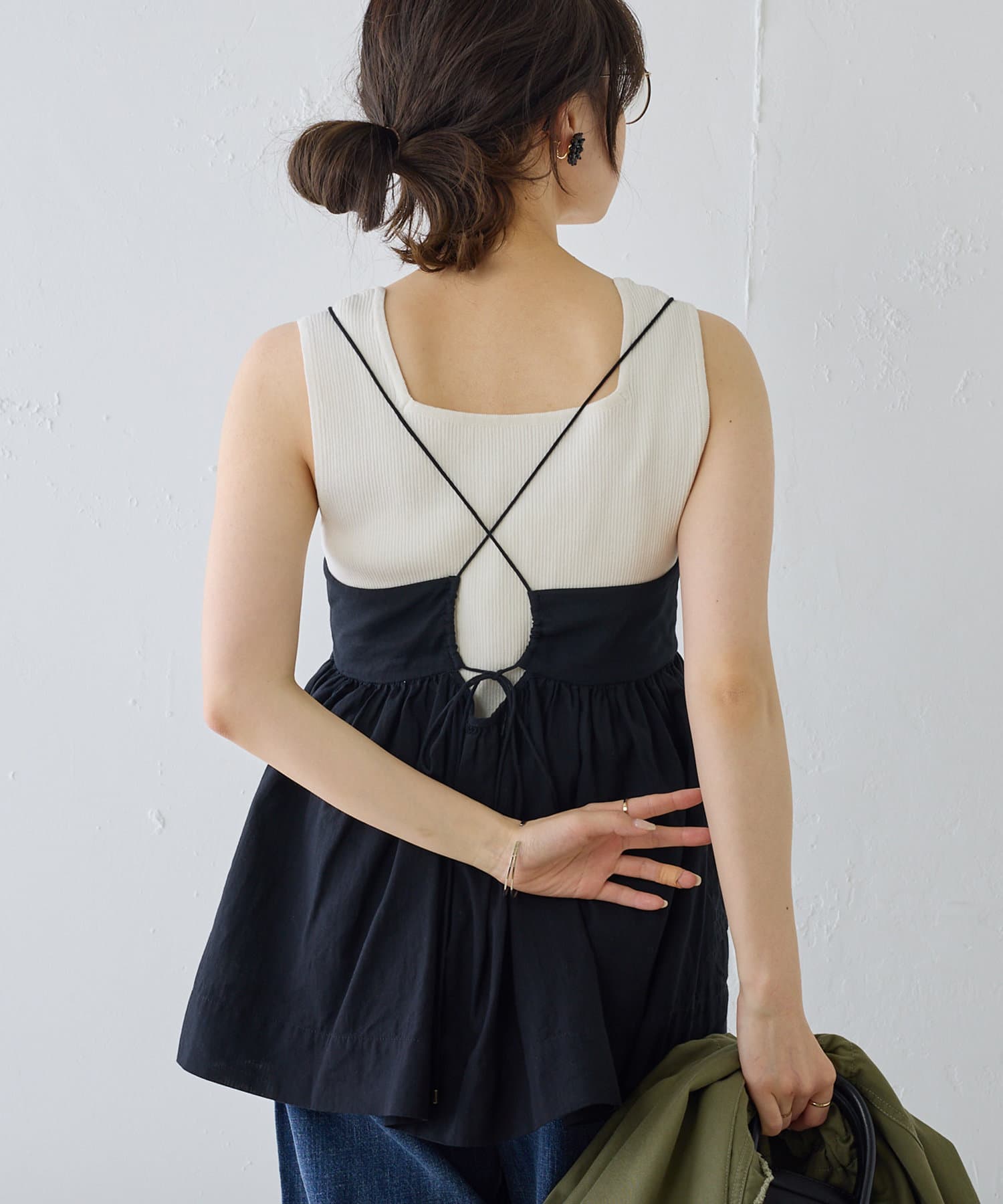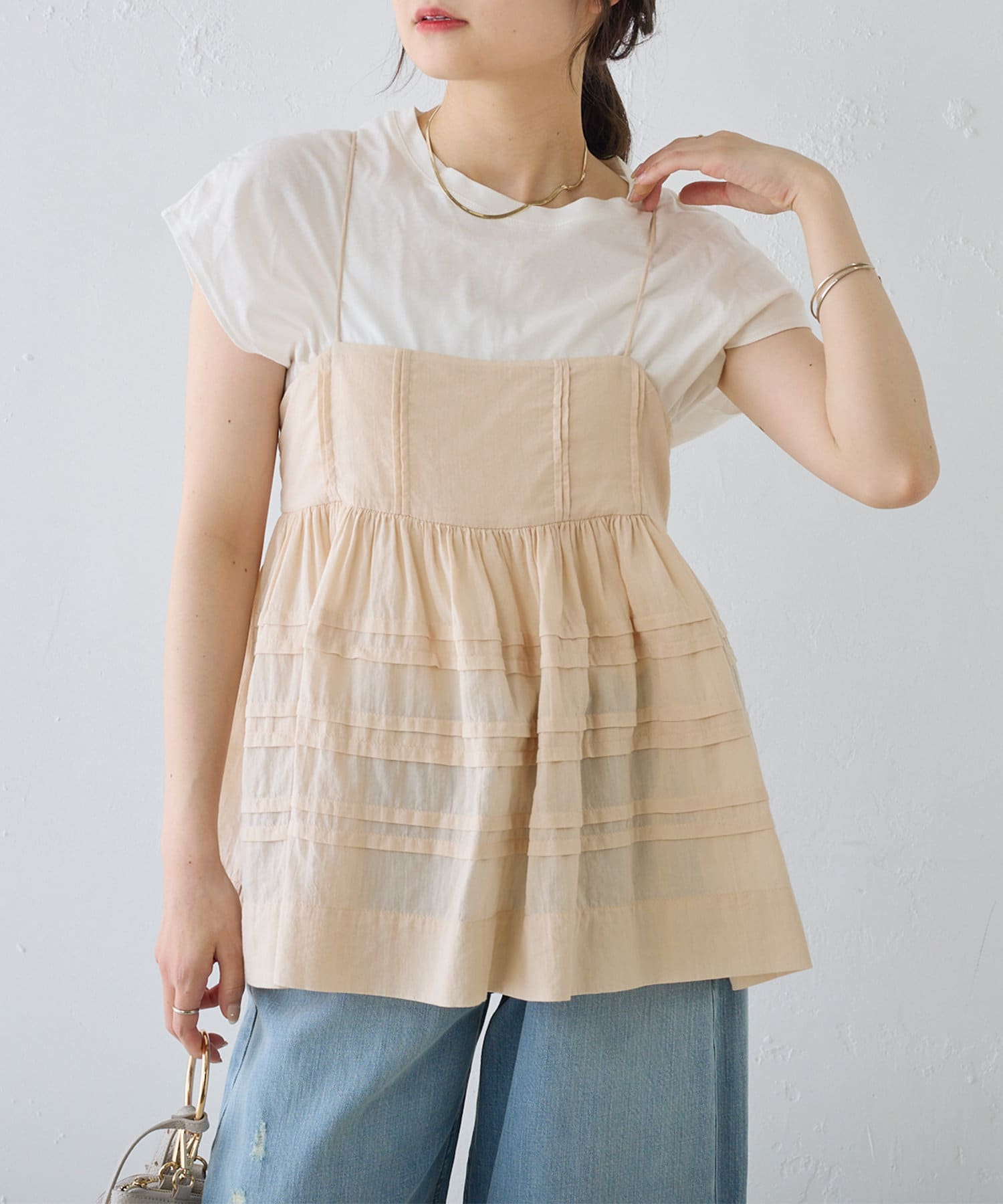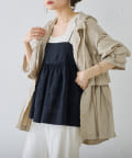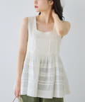 胸下から広がるフレアなラインで、女性らしい雰囲気をアップさせてくれるペプラムキャミブラウス。