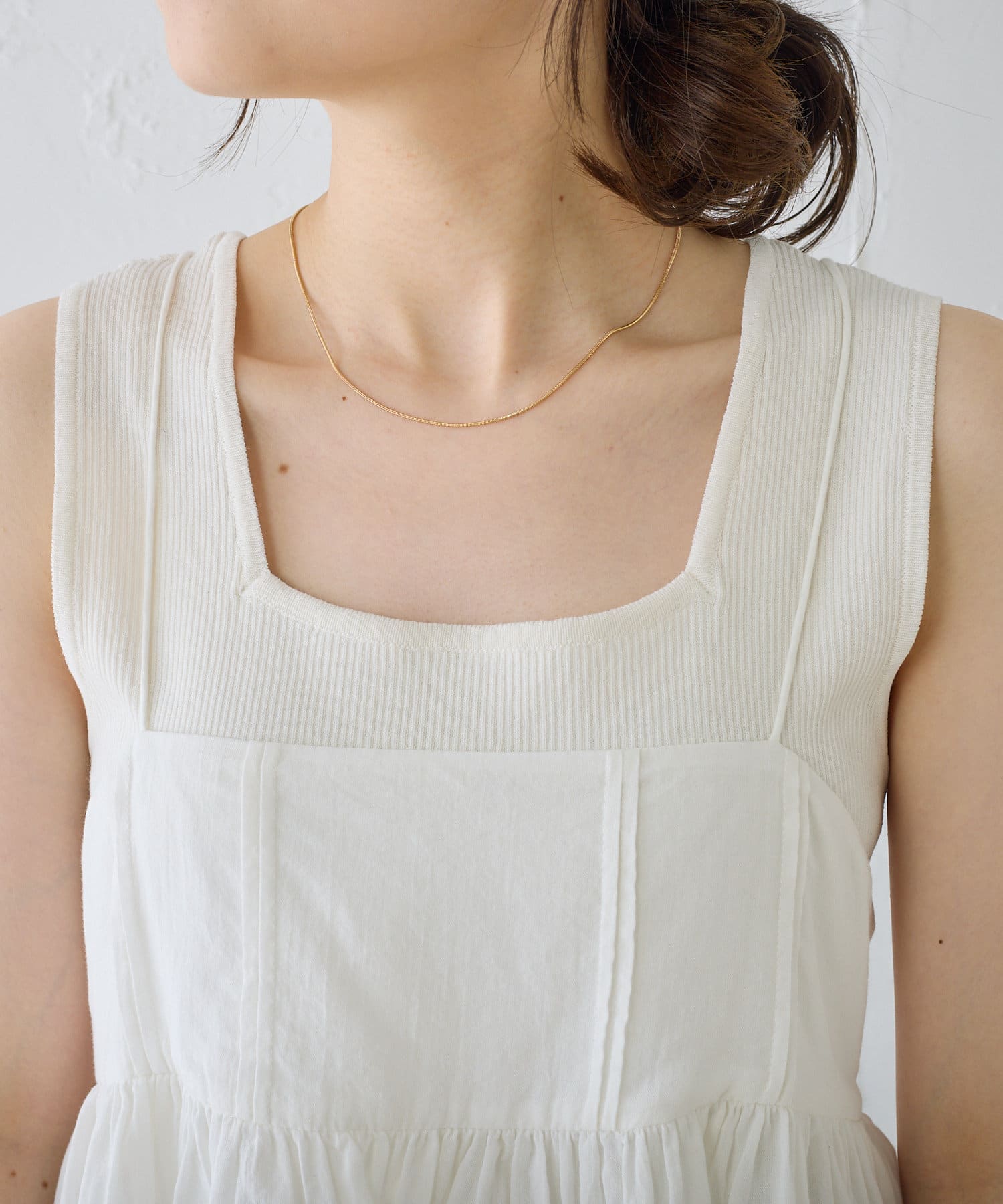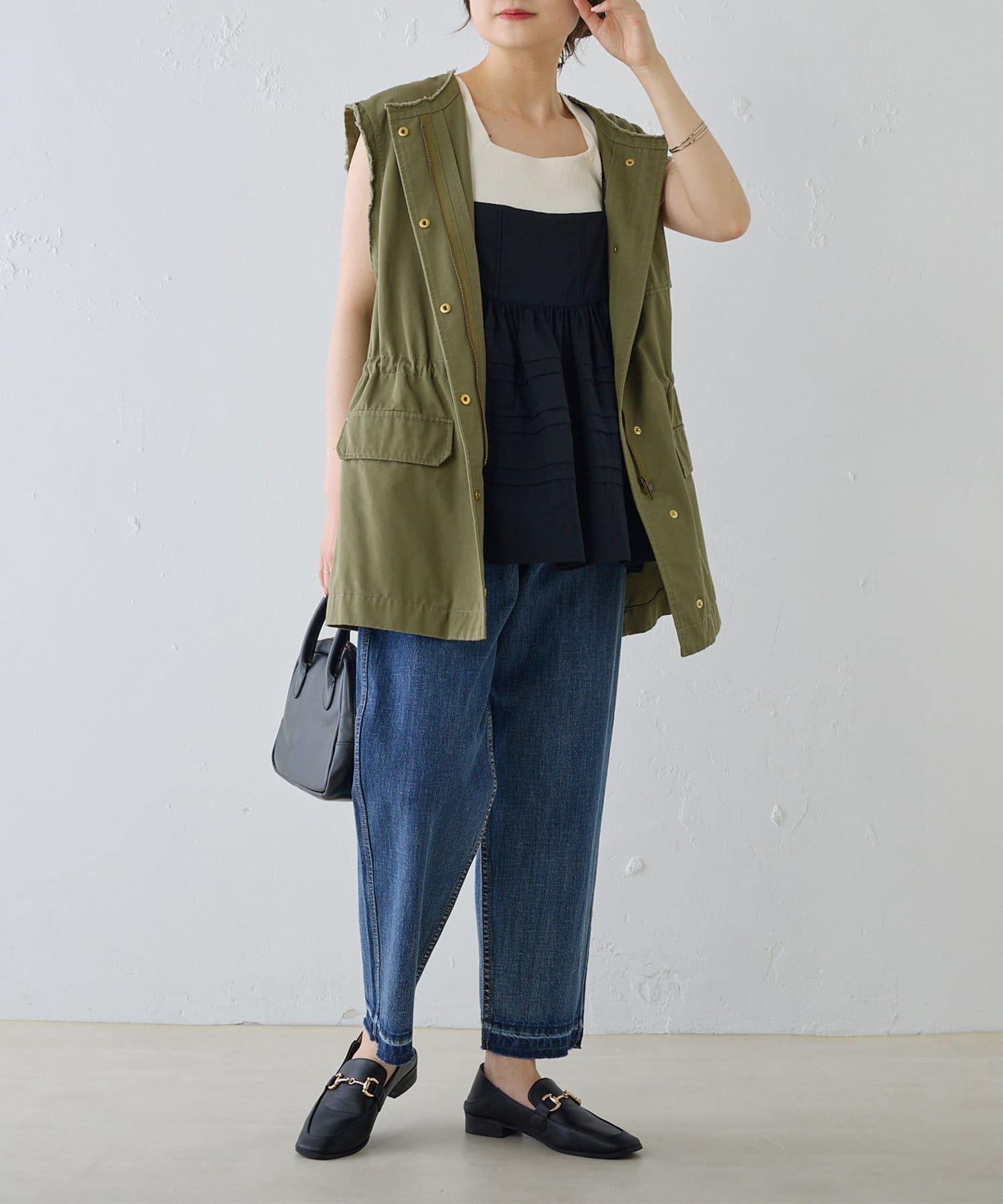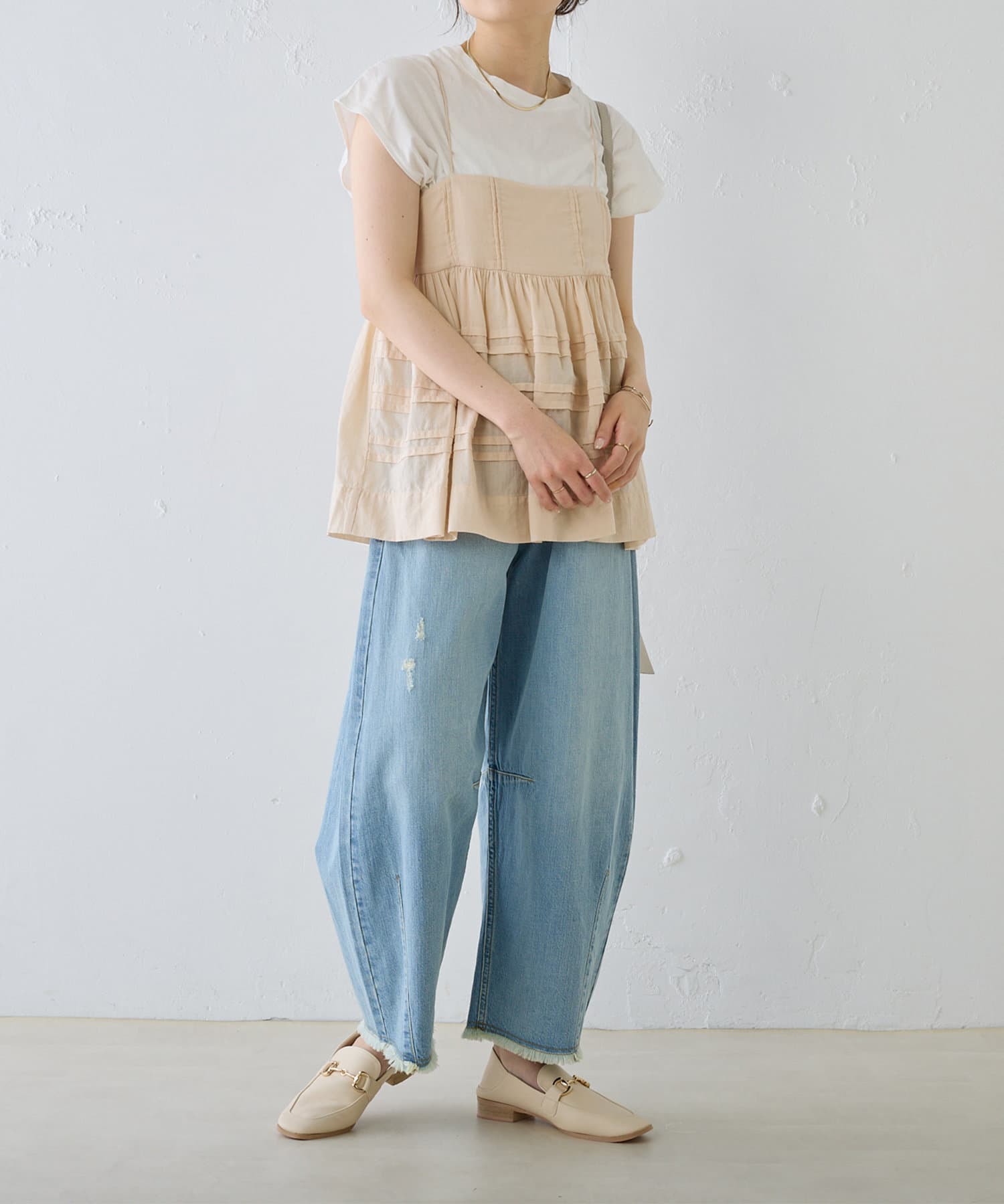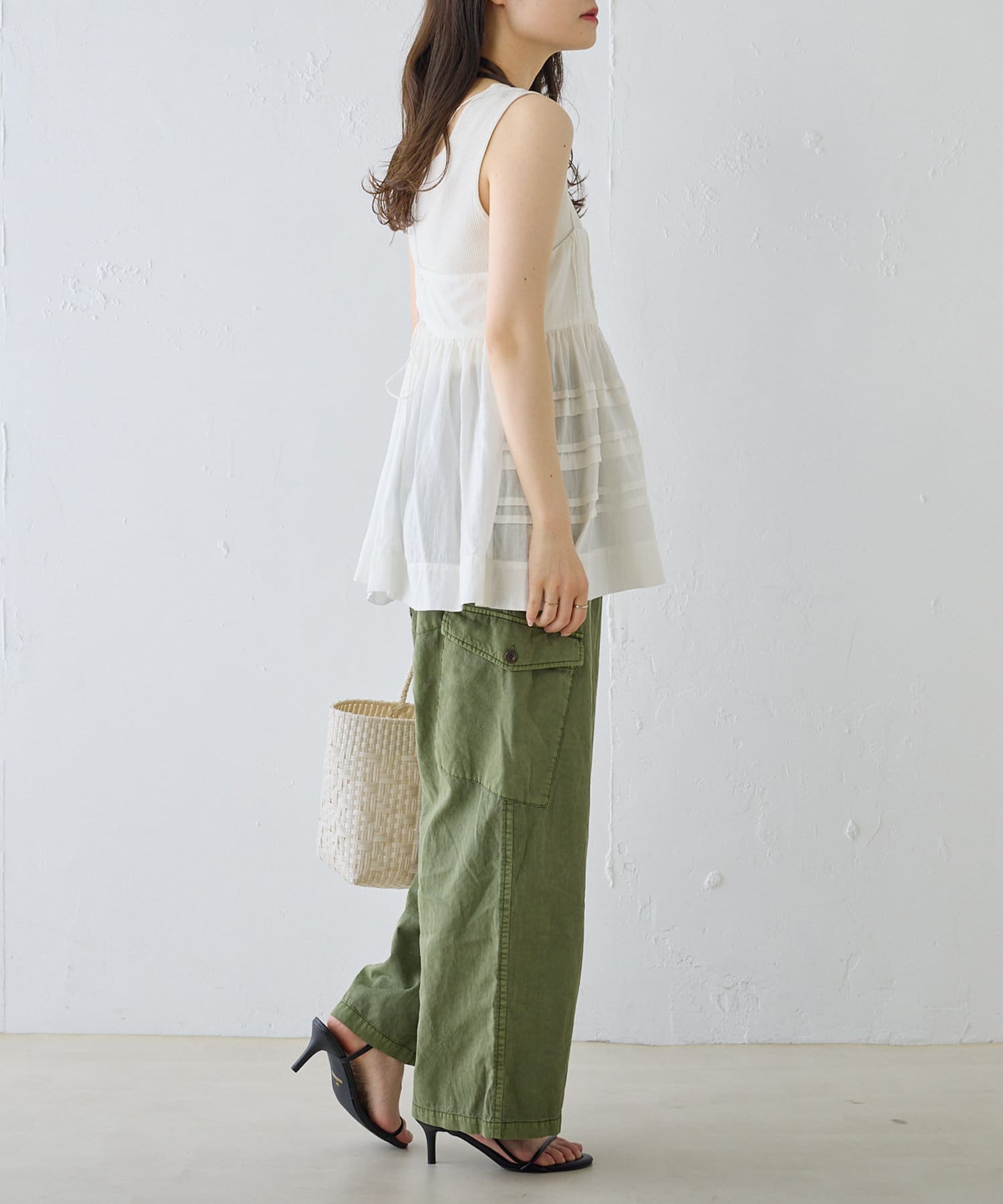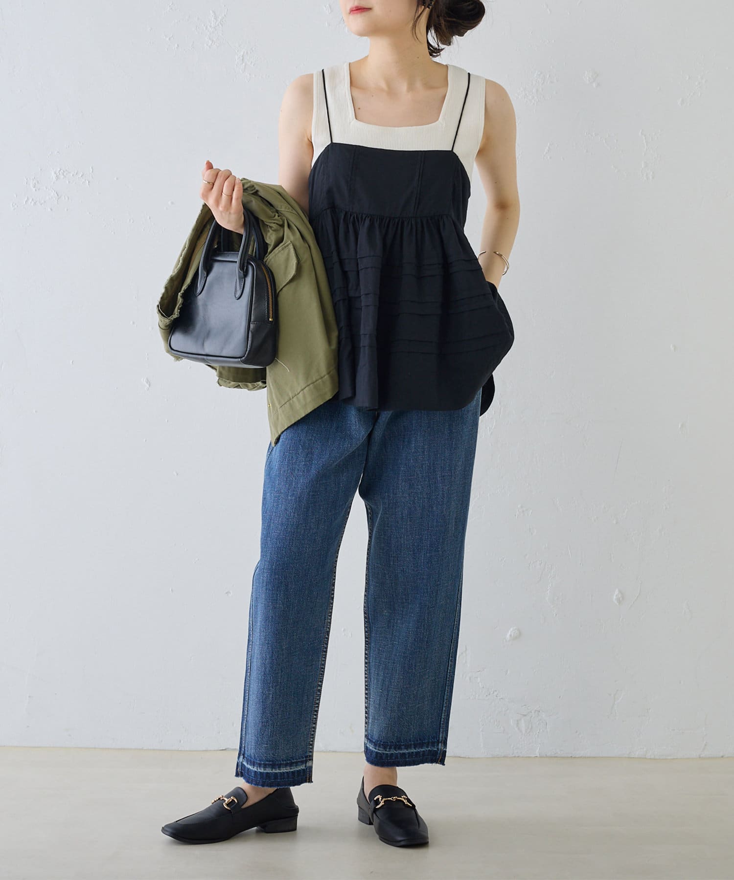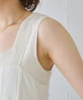 Tシャツやシアートップスはもちろん、タンクトップップを合わせたヘルシーな着こなしも楽しめます。
