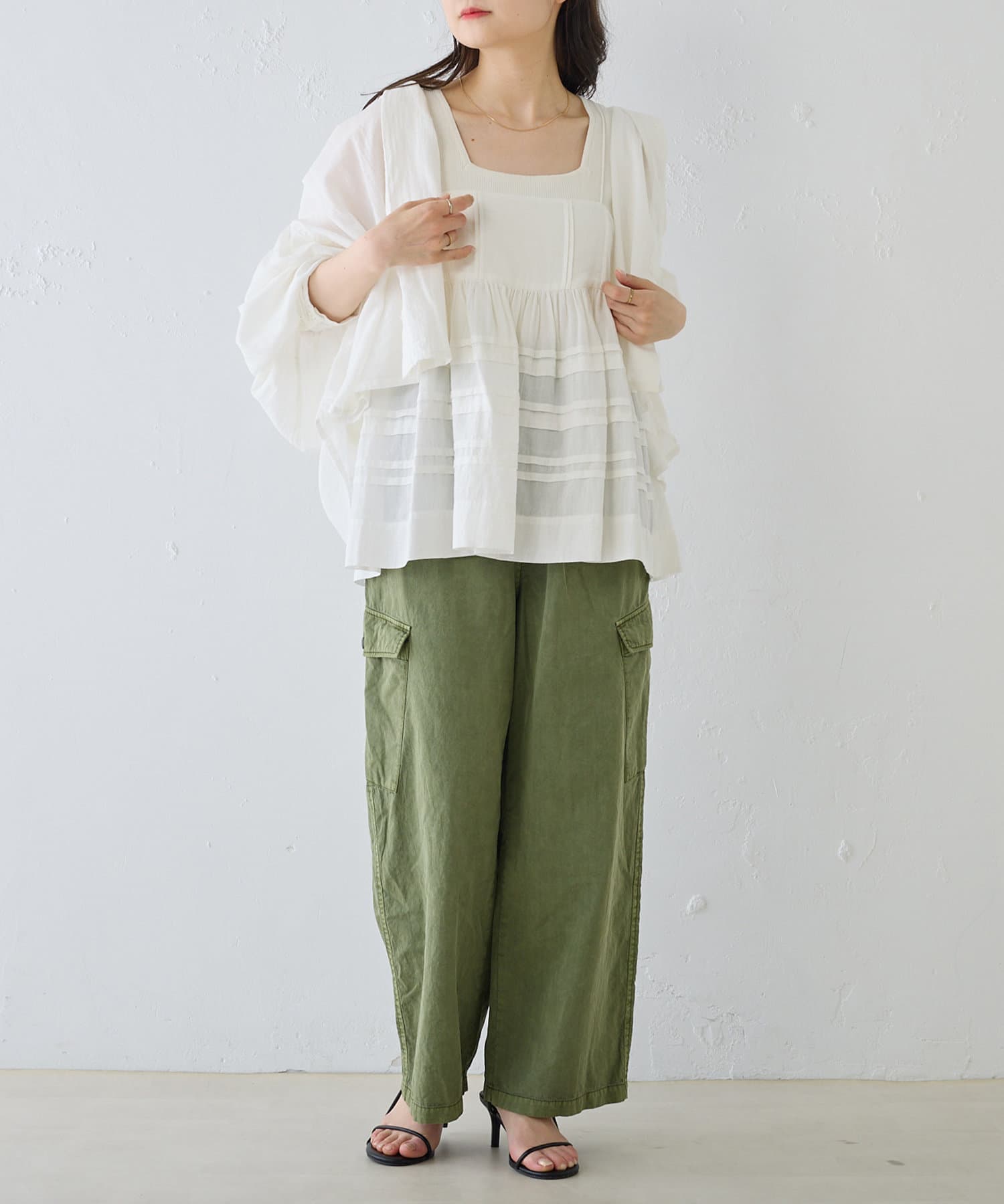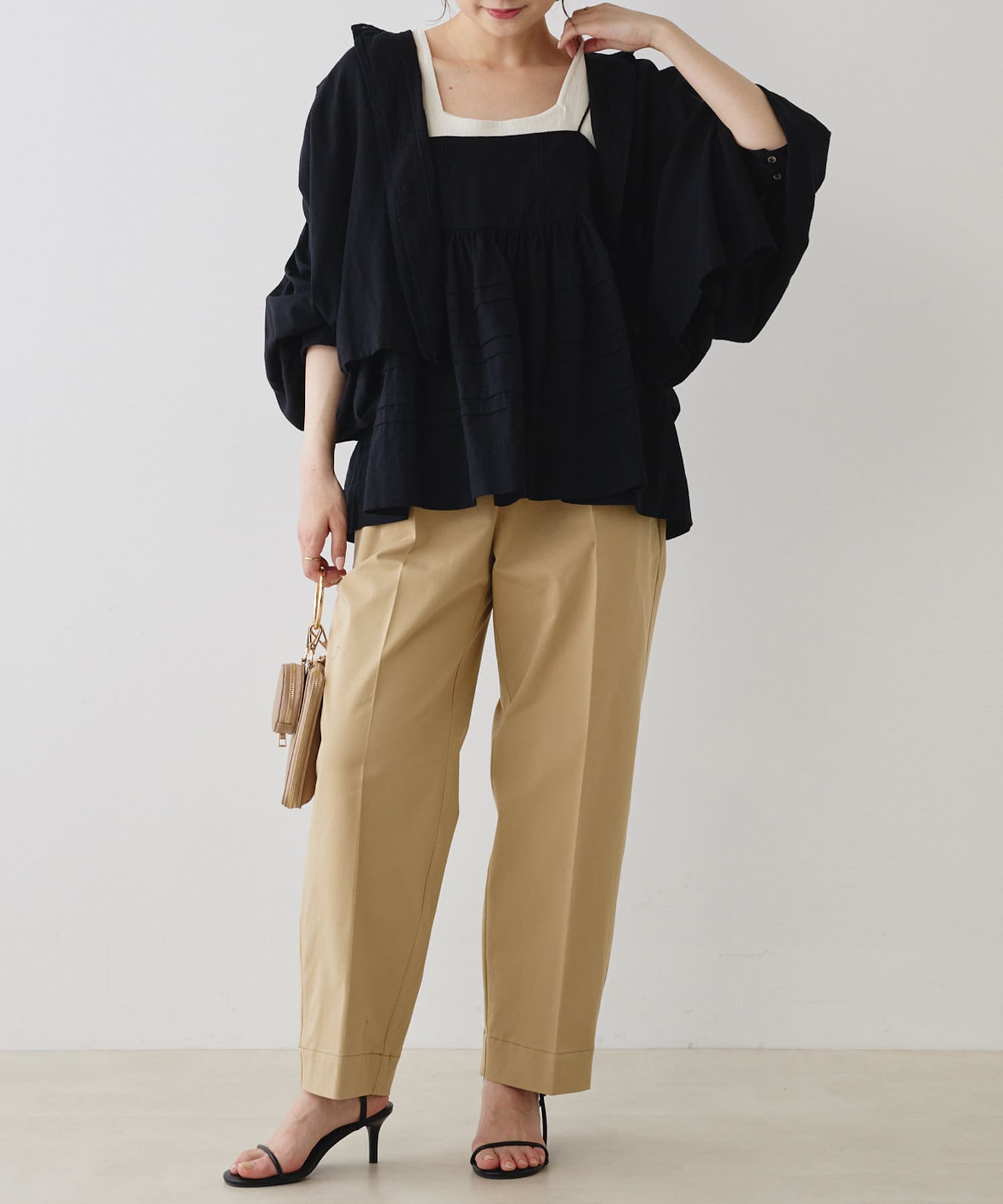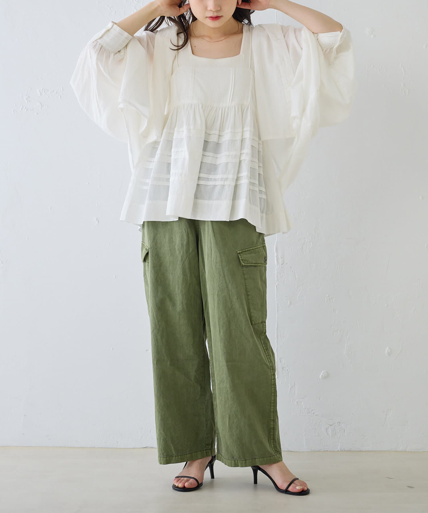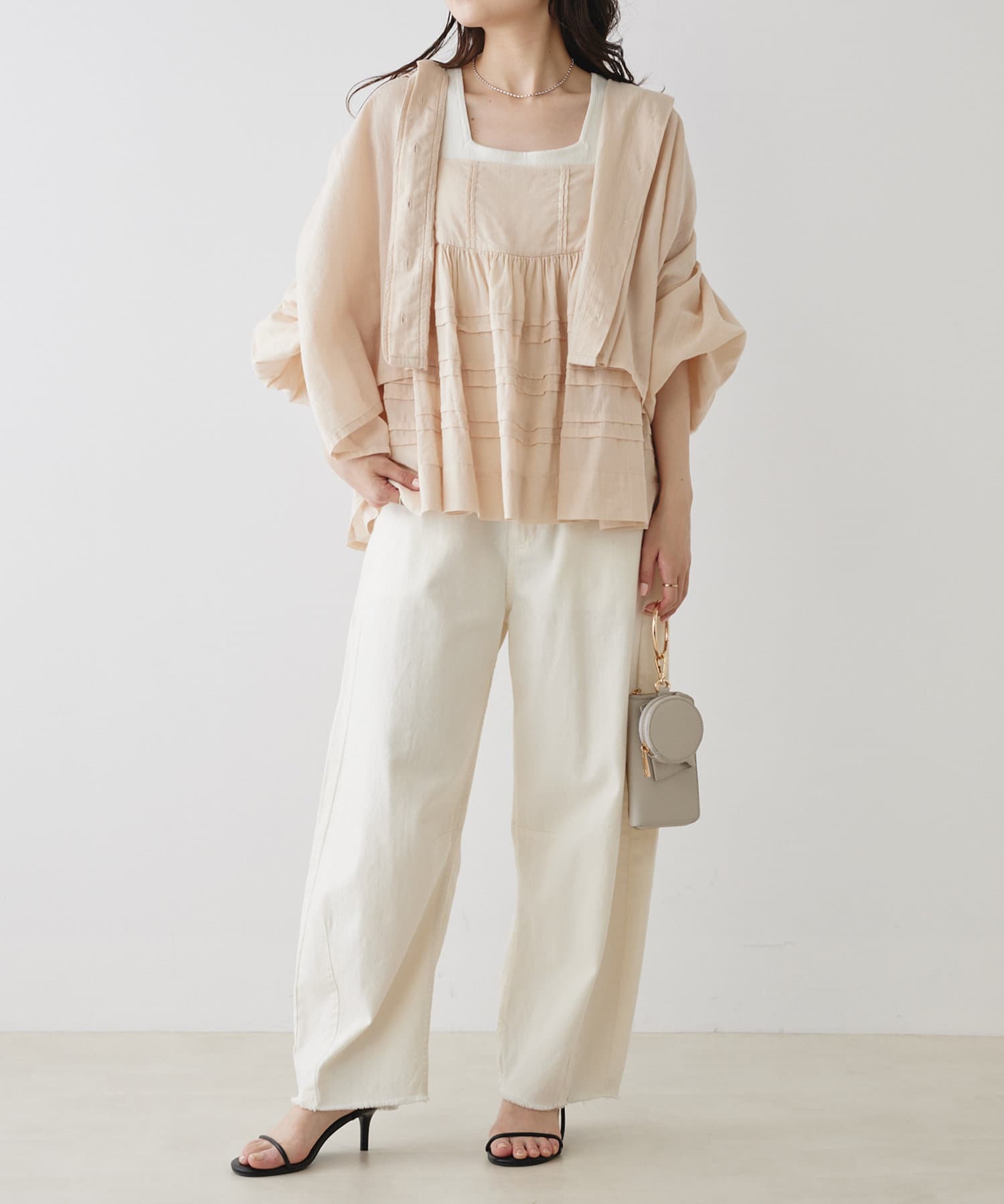 同素材のブラウス(No.0231040250)を羽織るスタイリングもおすすめ。
