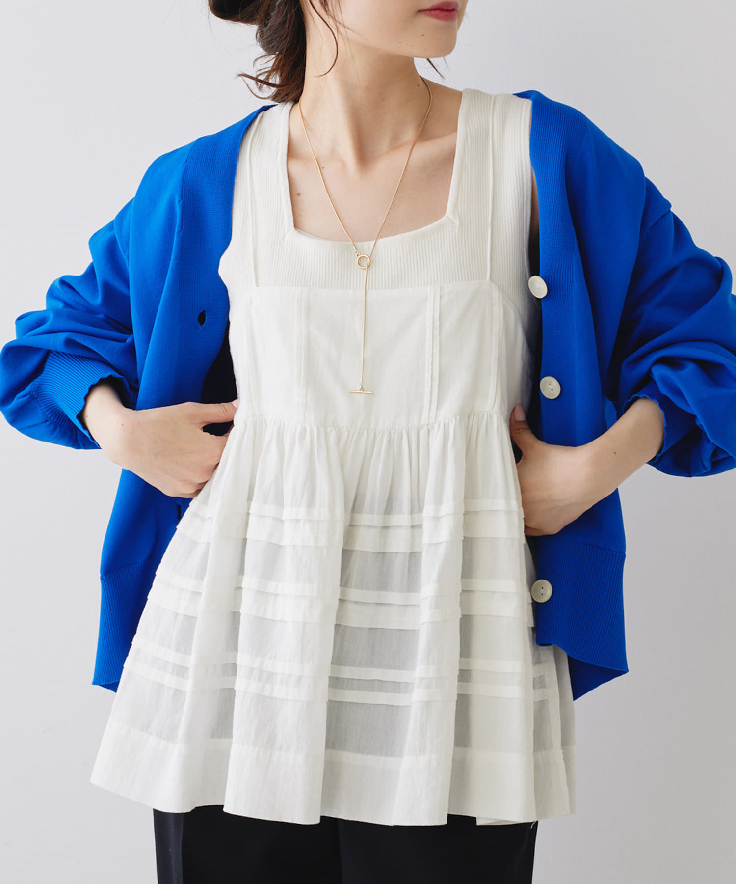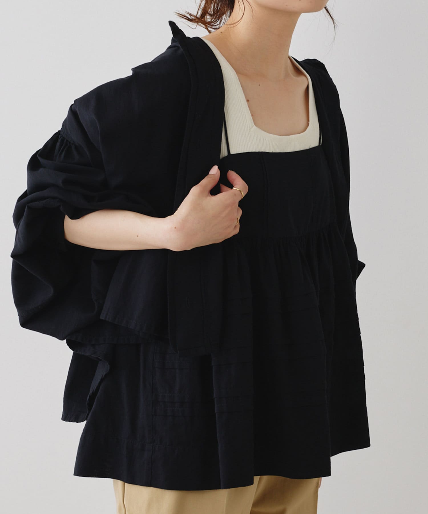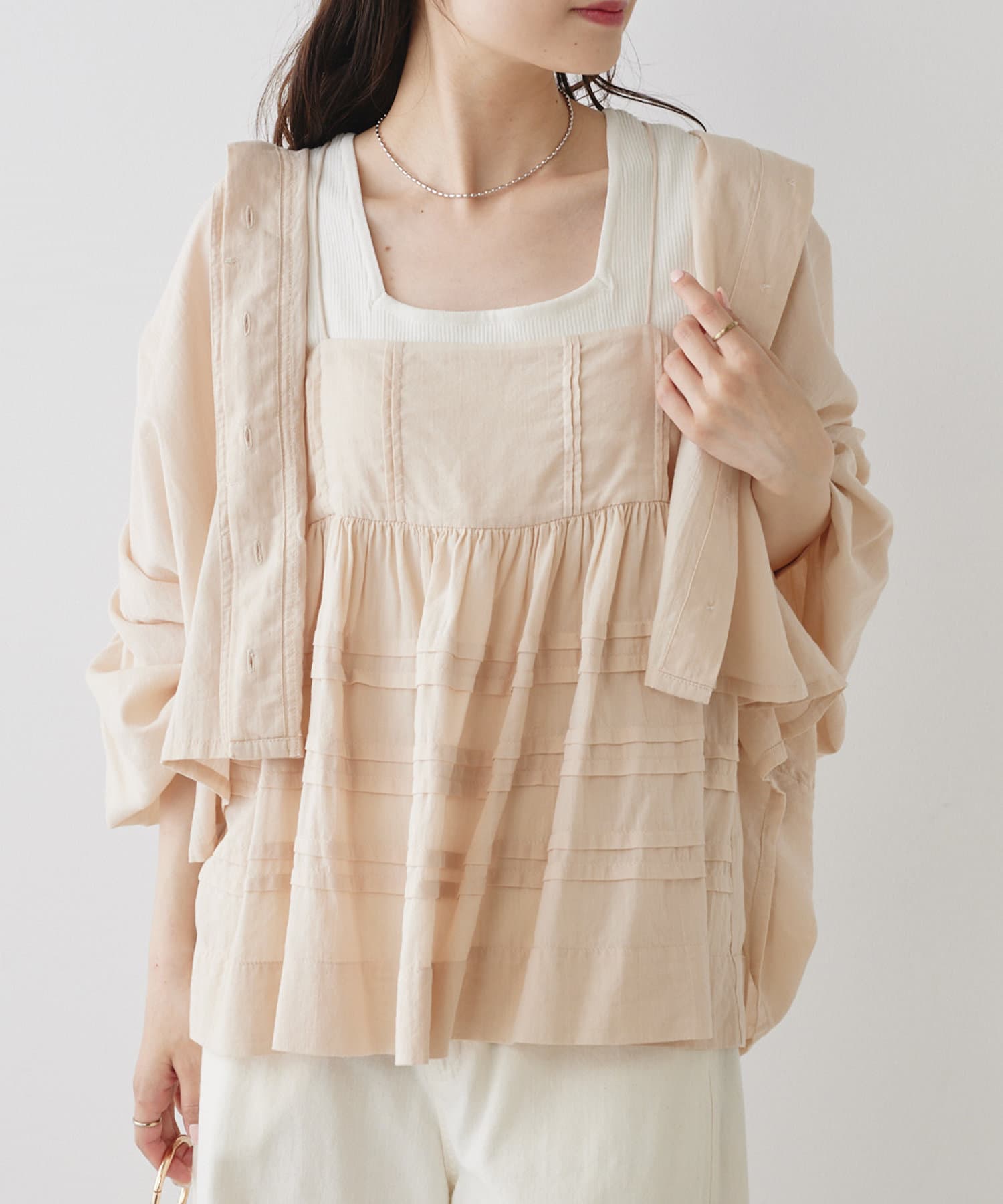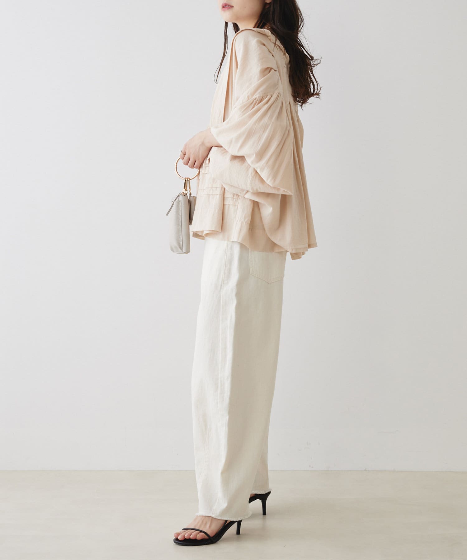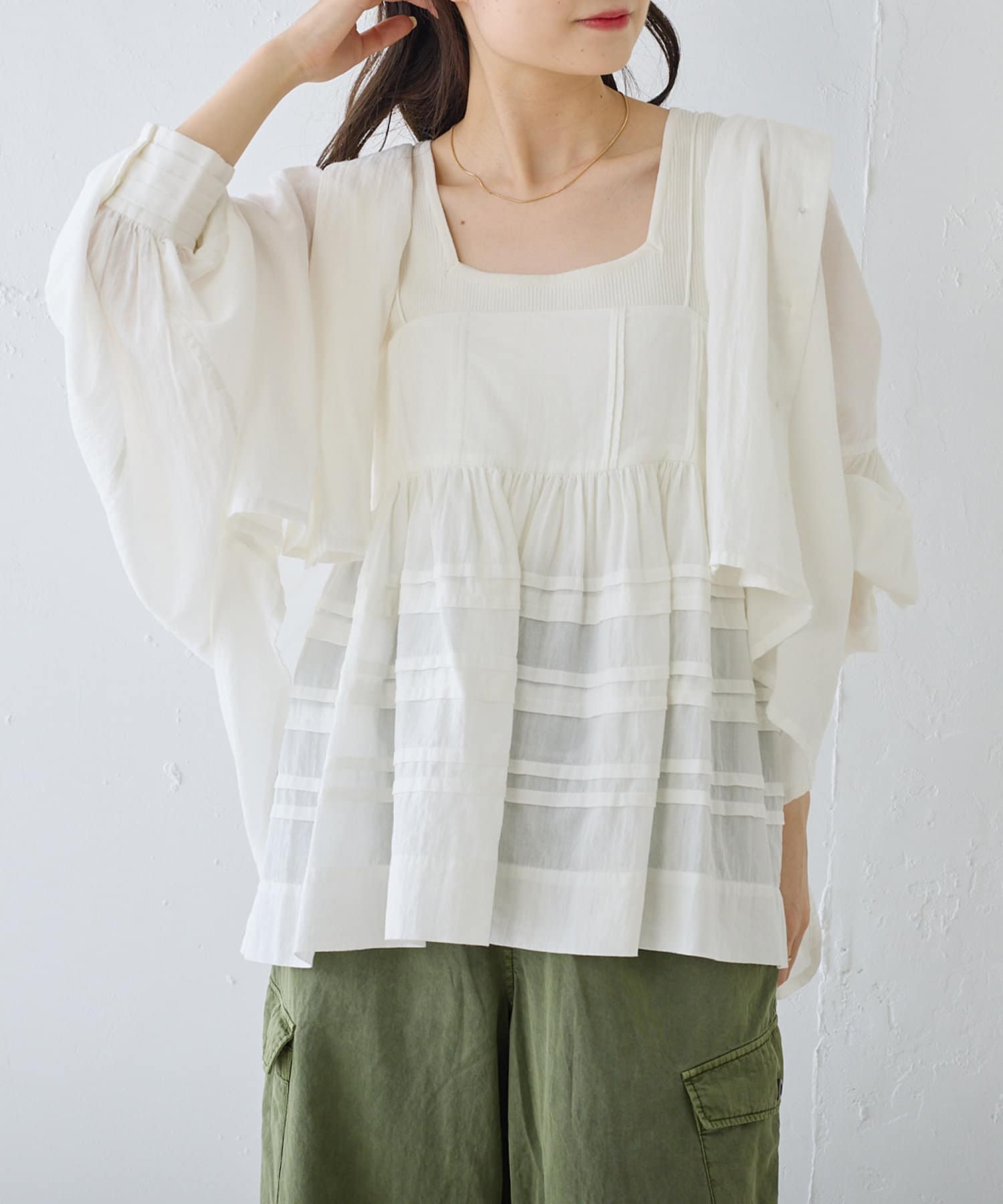 同素材のブラウス(No.0231040250)を羽織るスタイリングもおすすめ。
