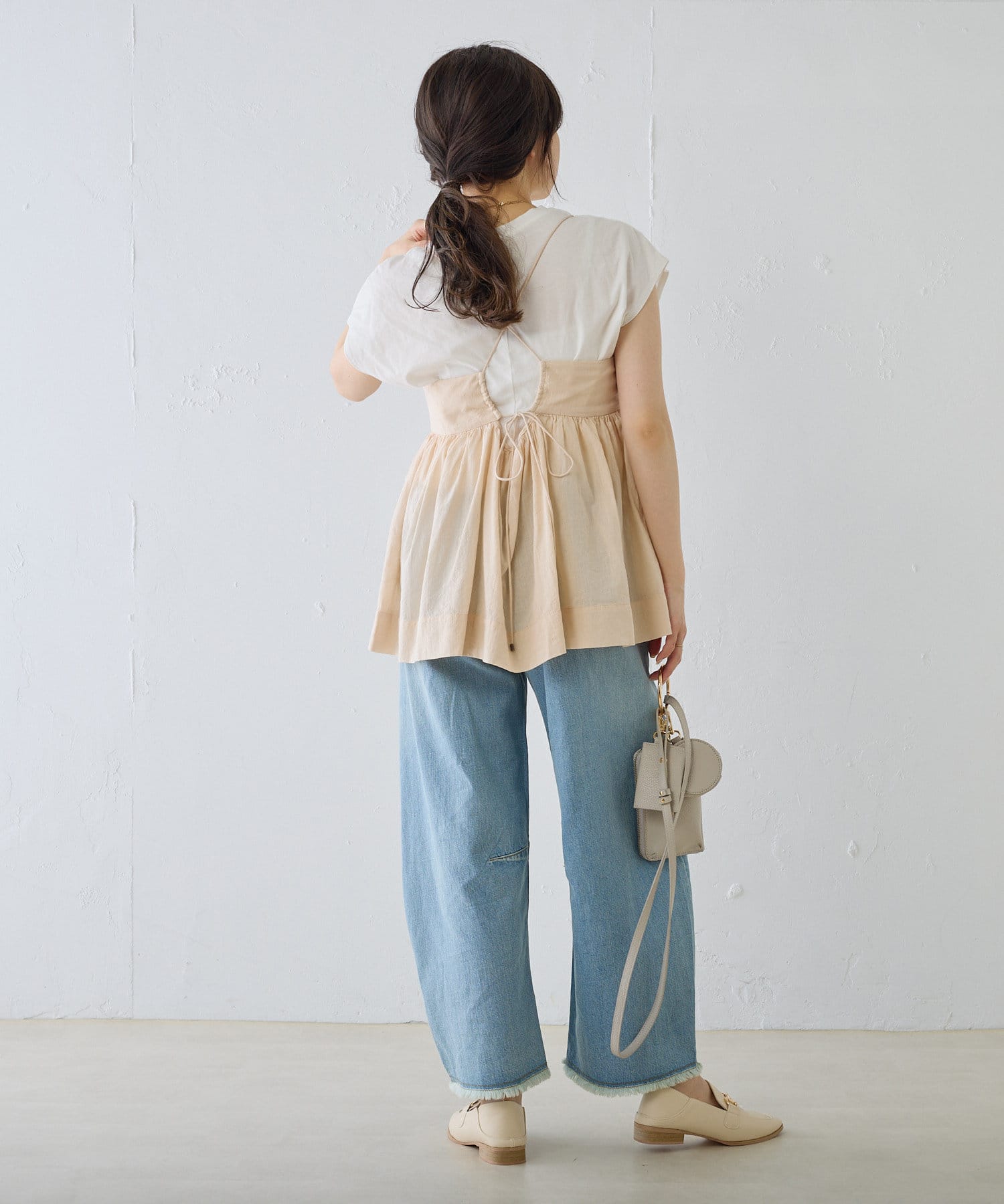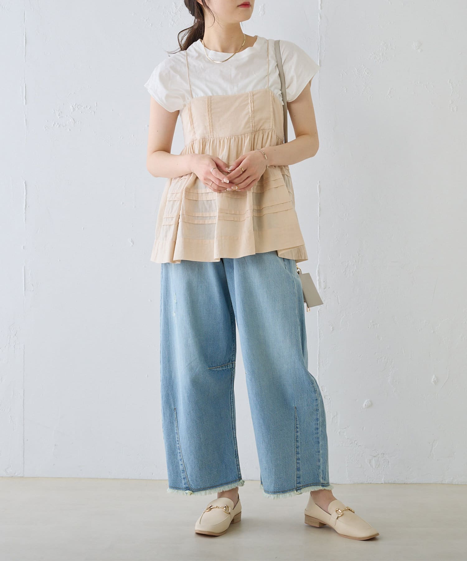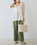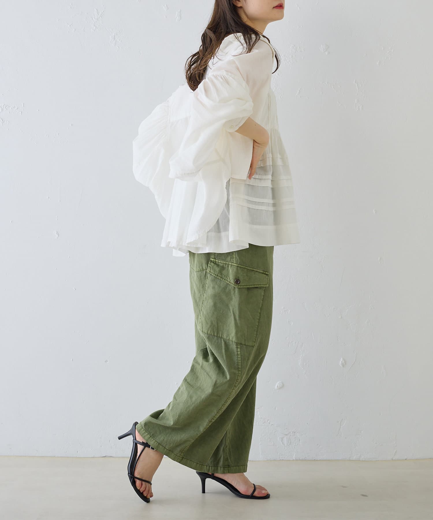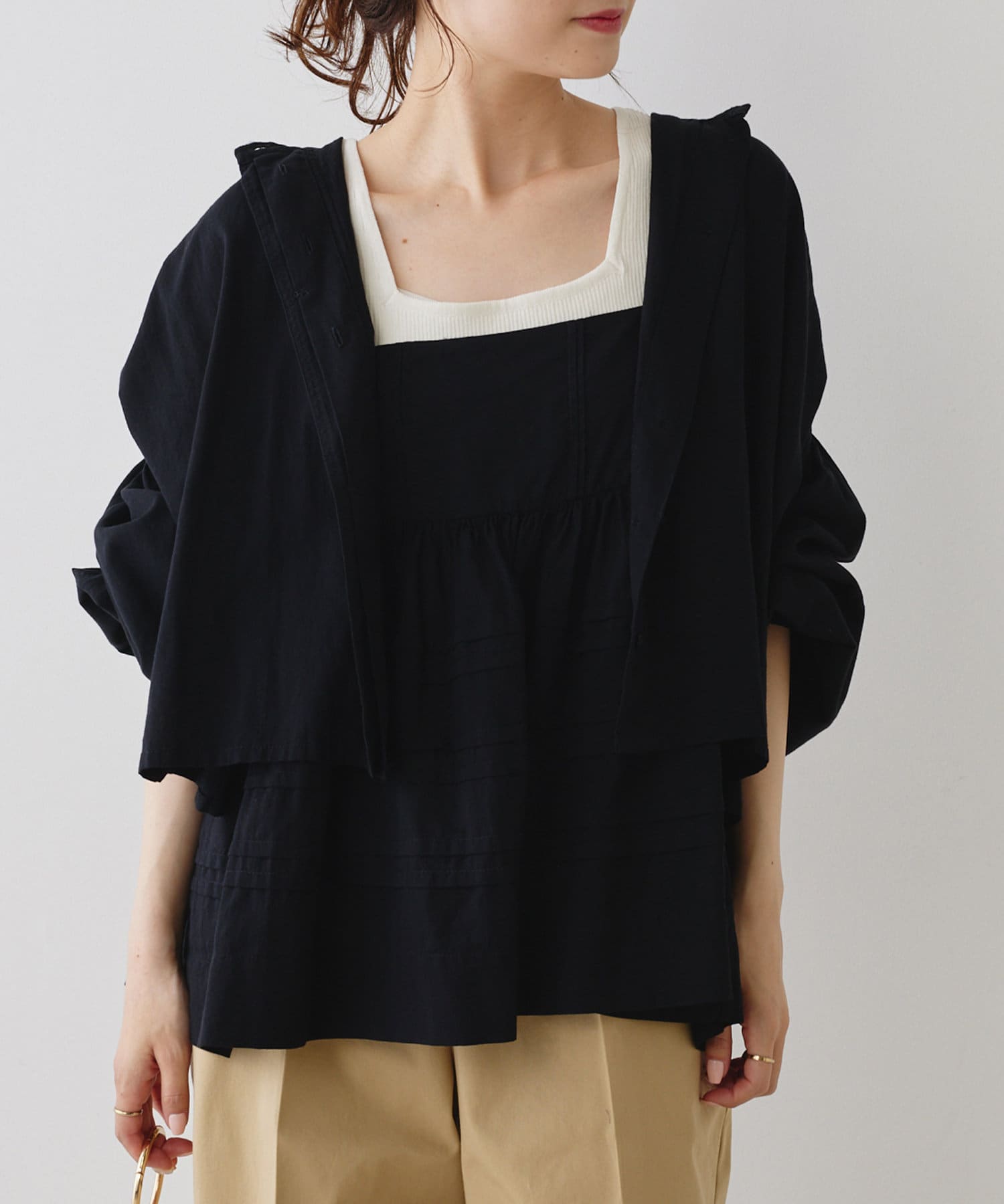 同素材のブラウス(No.0231040250)を羽織るスタイリングもおすすめ。