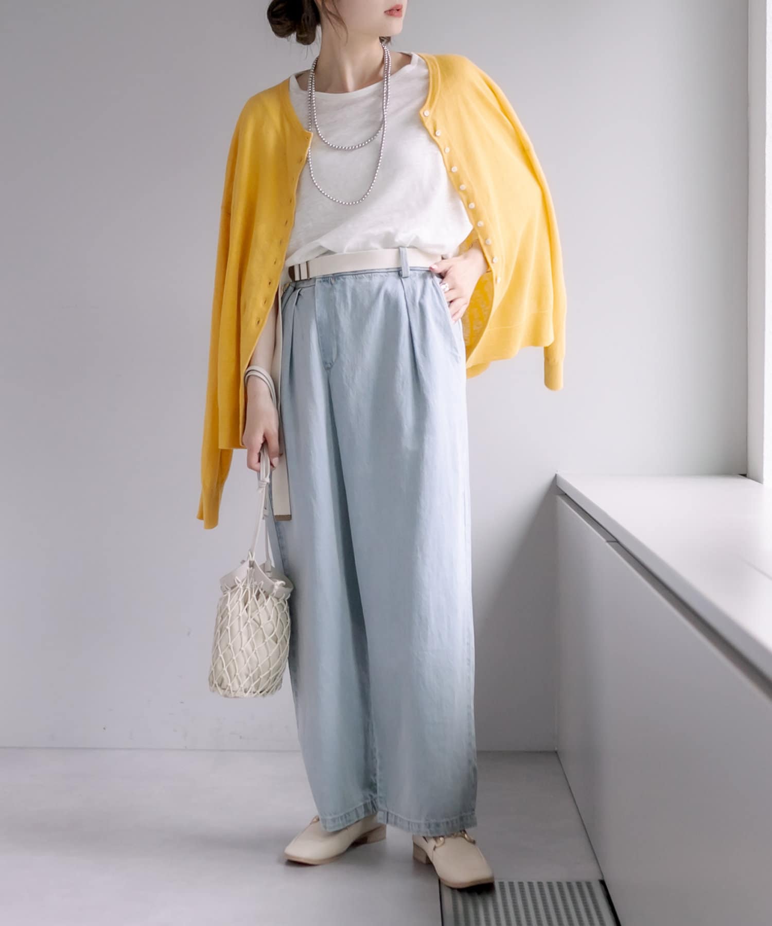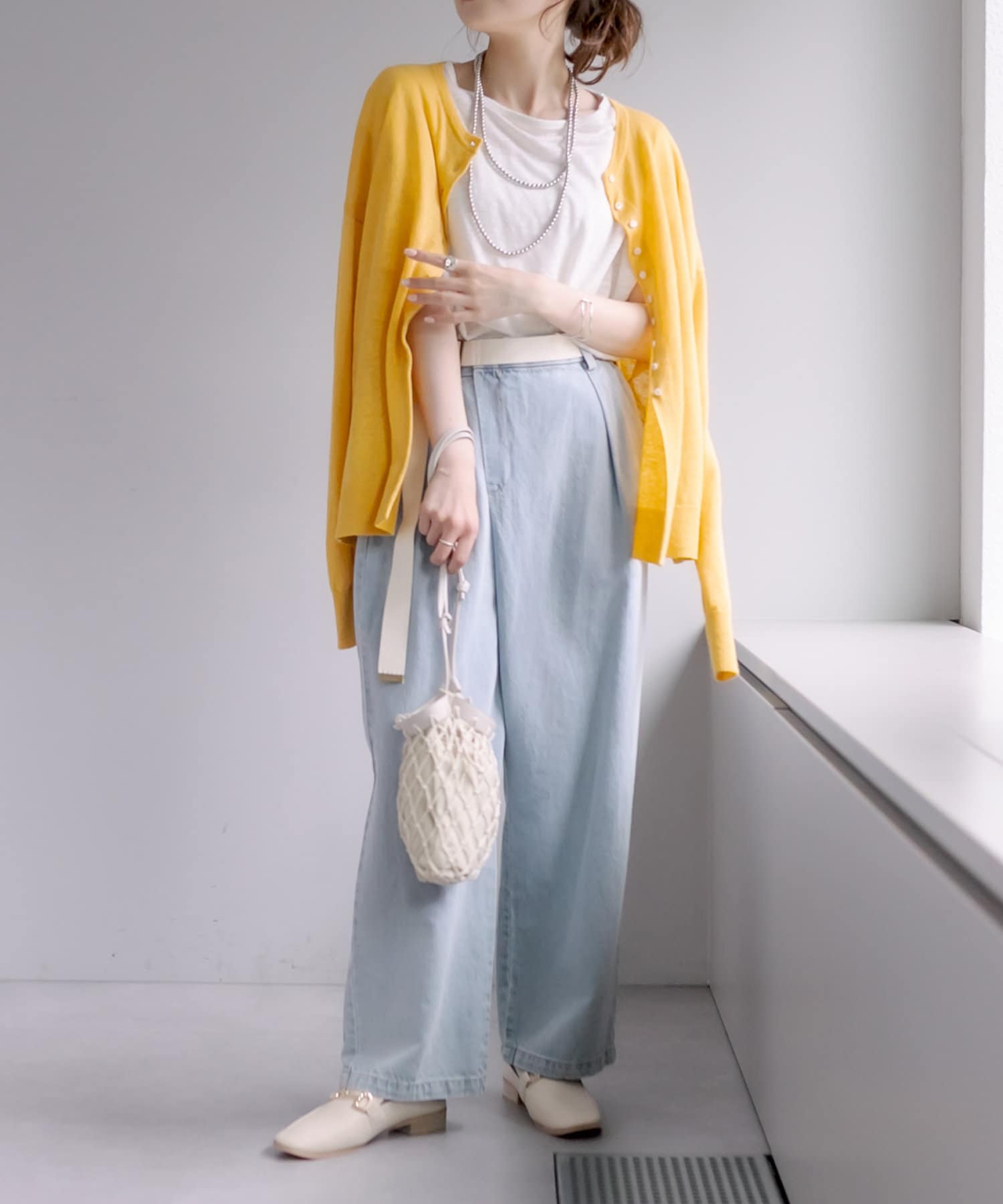 軽やかなハイケージニットは通気性にも優れているので、夏から秋口まで重宝すること間違いなし。