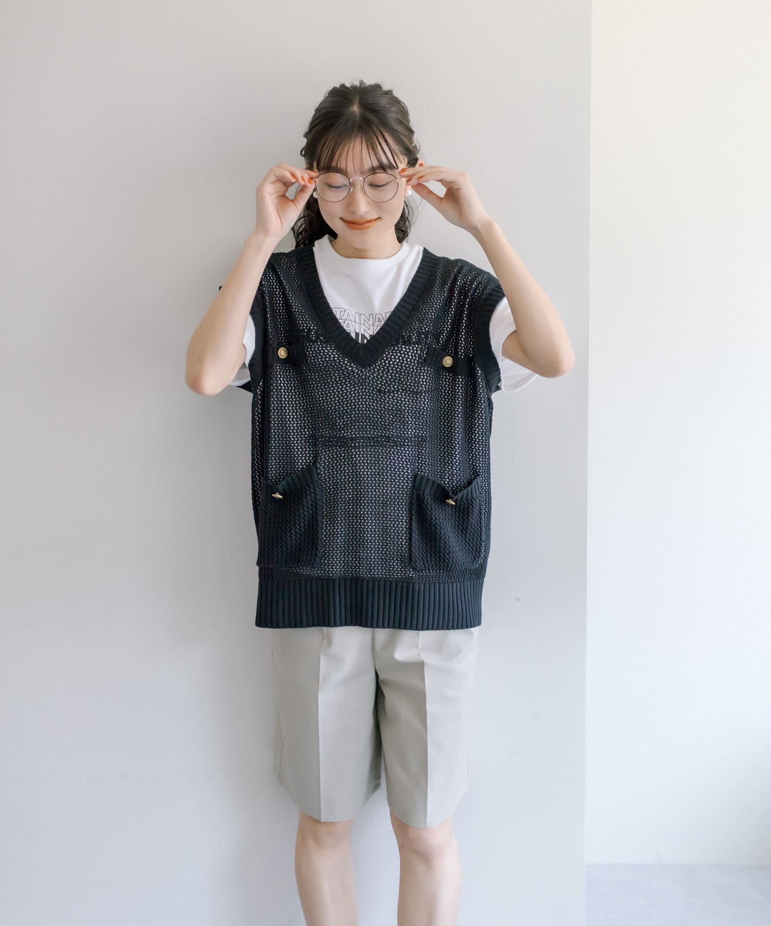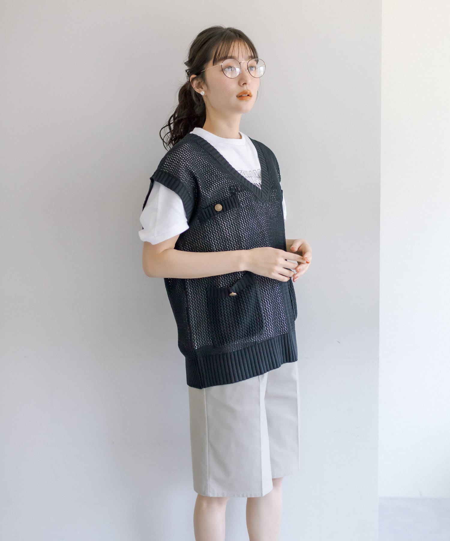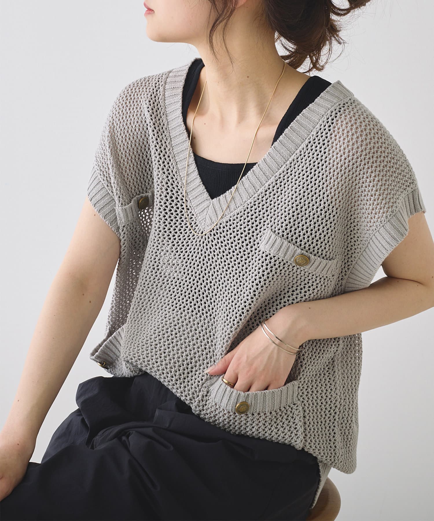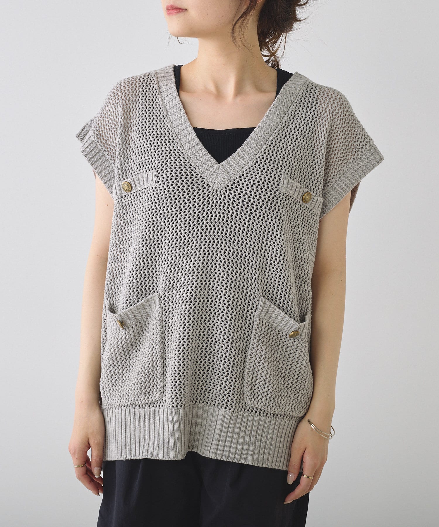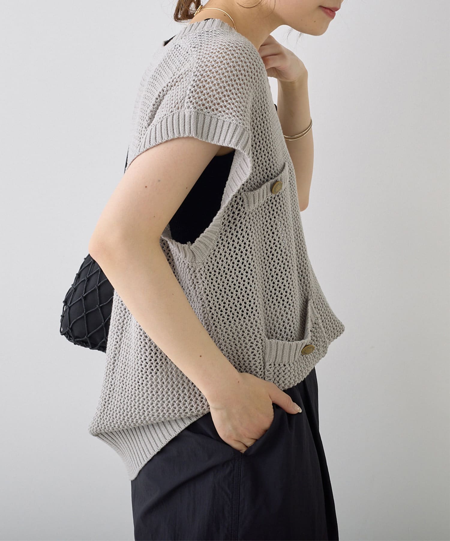 メッシュの透かし編みがトレンド感溢れるニットベスト。