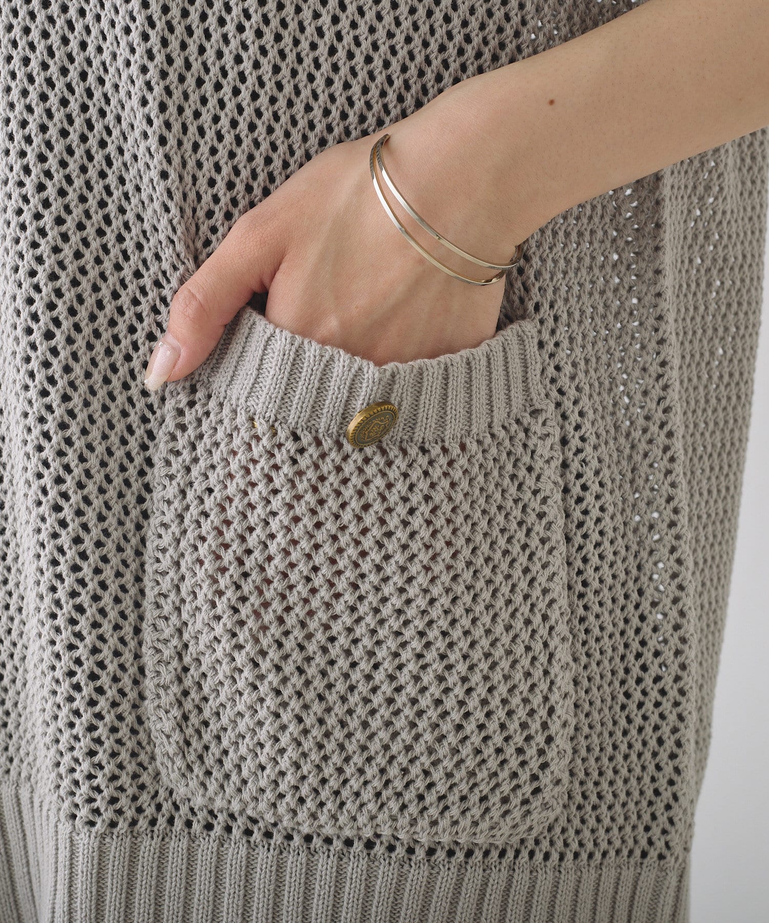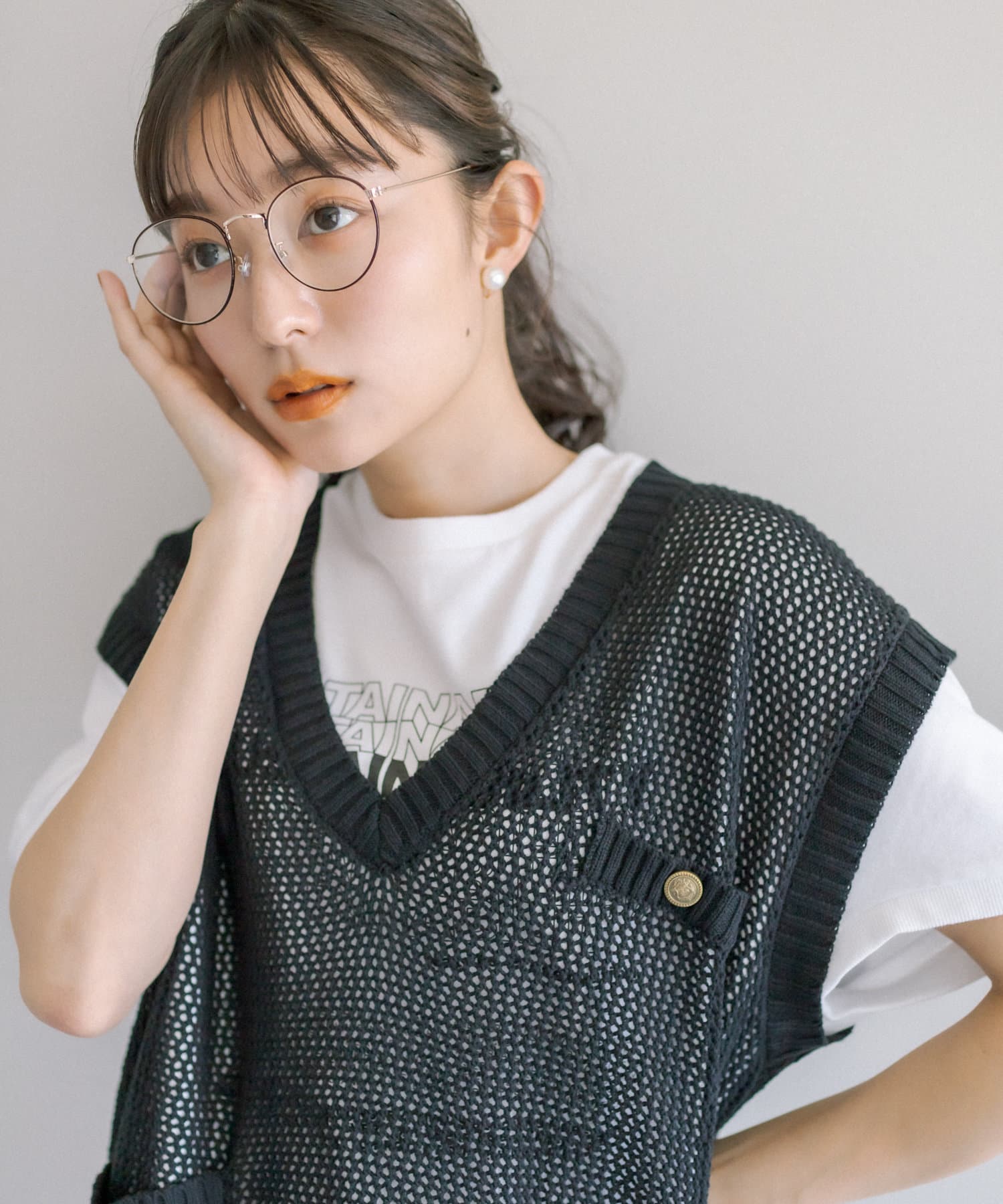 透け感があるメッシュ編みのアイテムはレイヤードアイテムとして最適◎