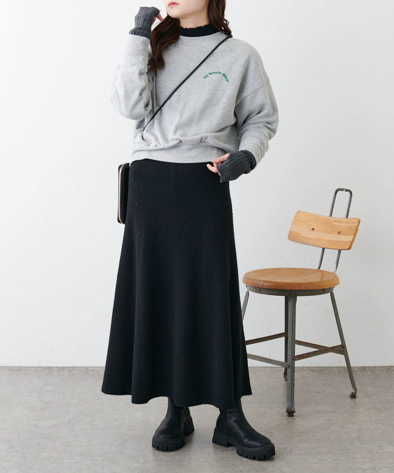 コンパクトな着丈なので、ハイウエストのスラックスやスカートと好相性◎