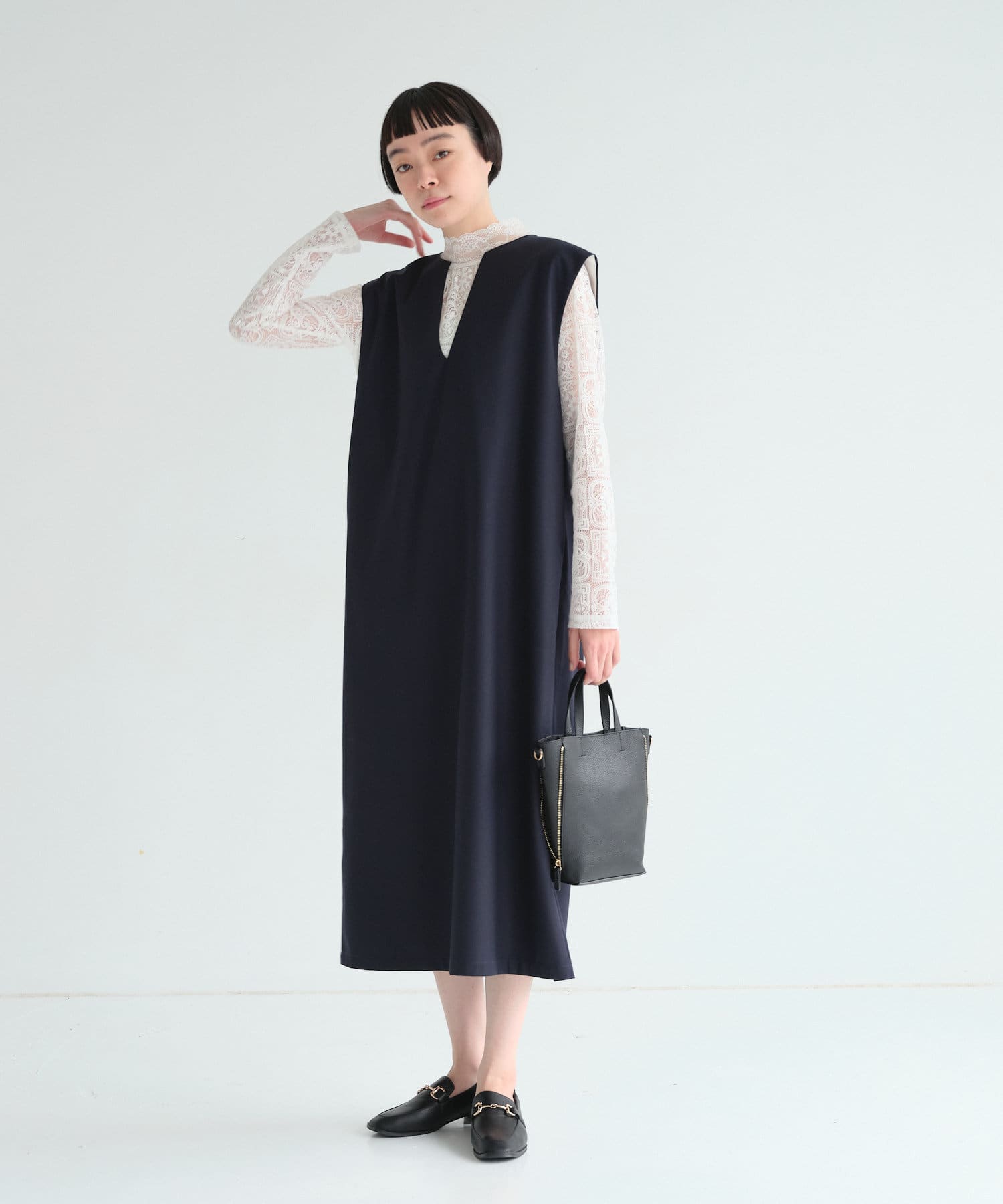 ニットワンピースやジャンパースカートにインしてフェミニン要素をプラスしたり、