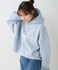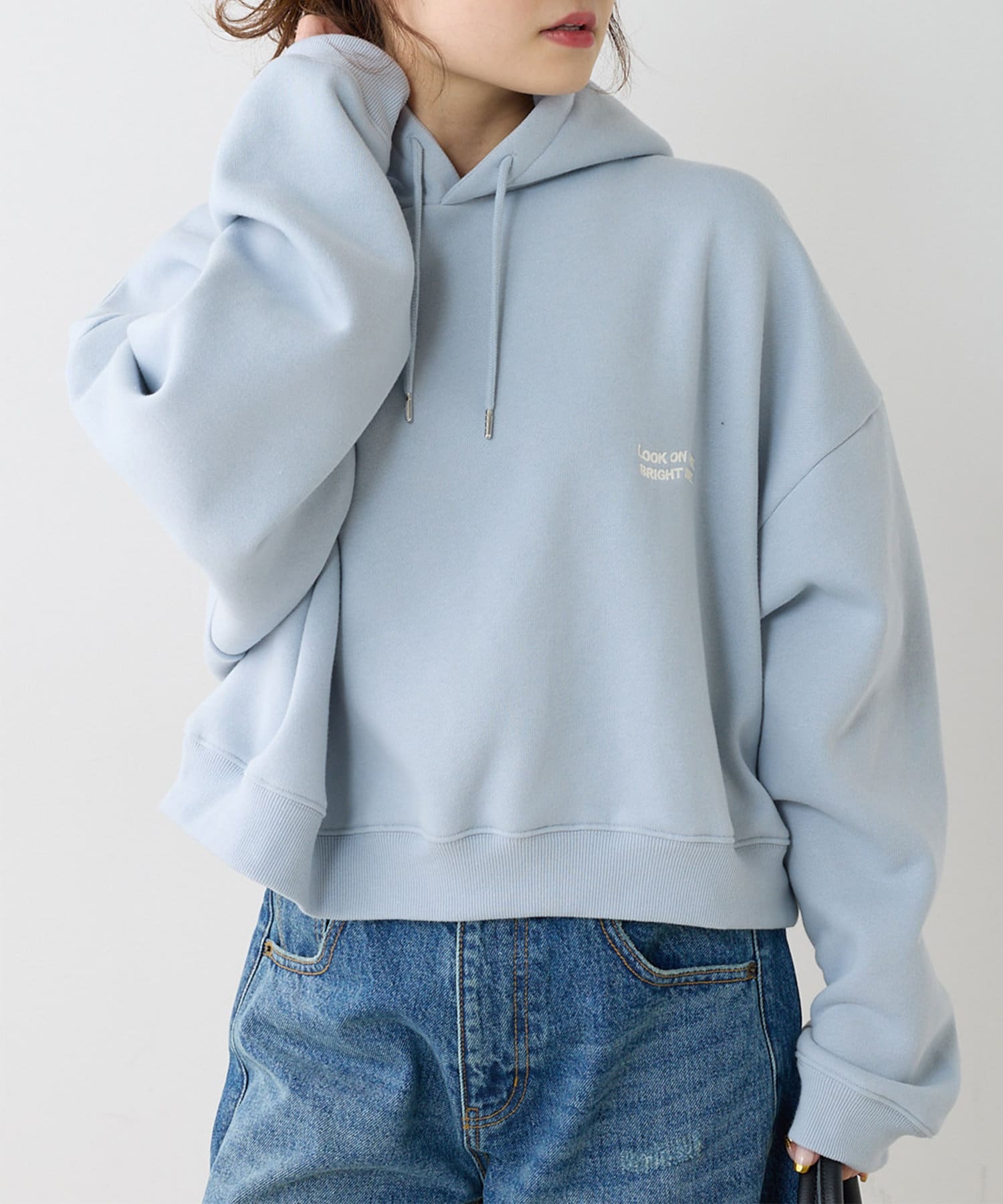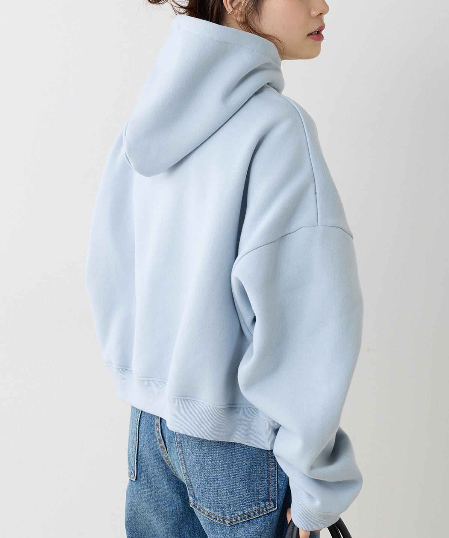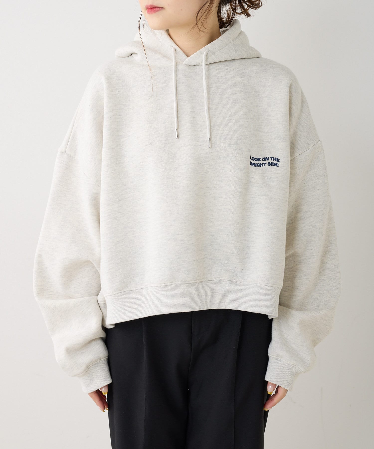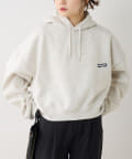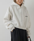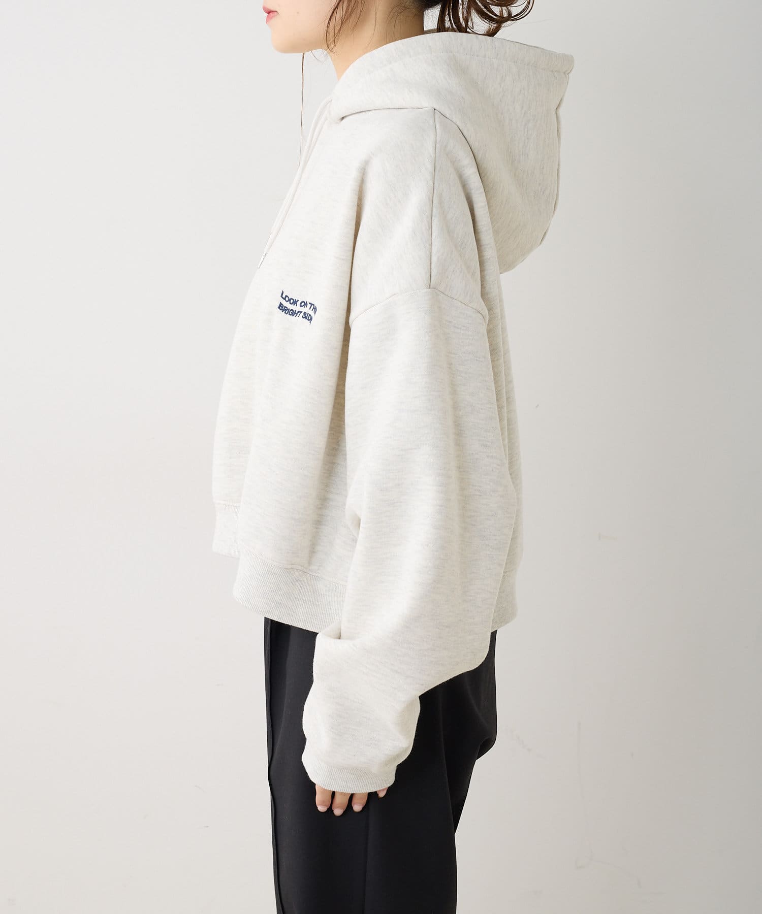 胸元の刺繍ロゴがアクセントのショート丈パーカー。
