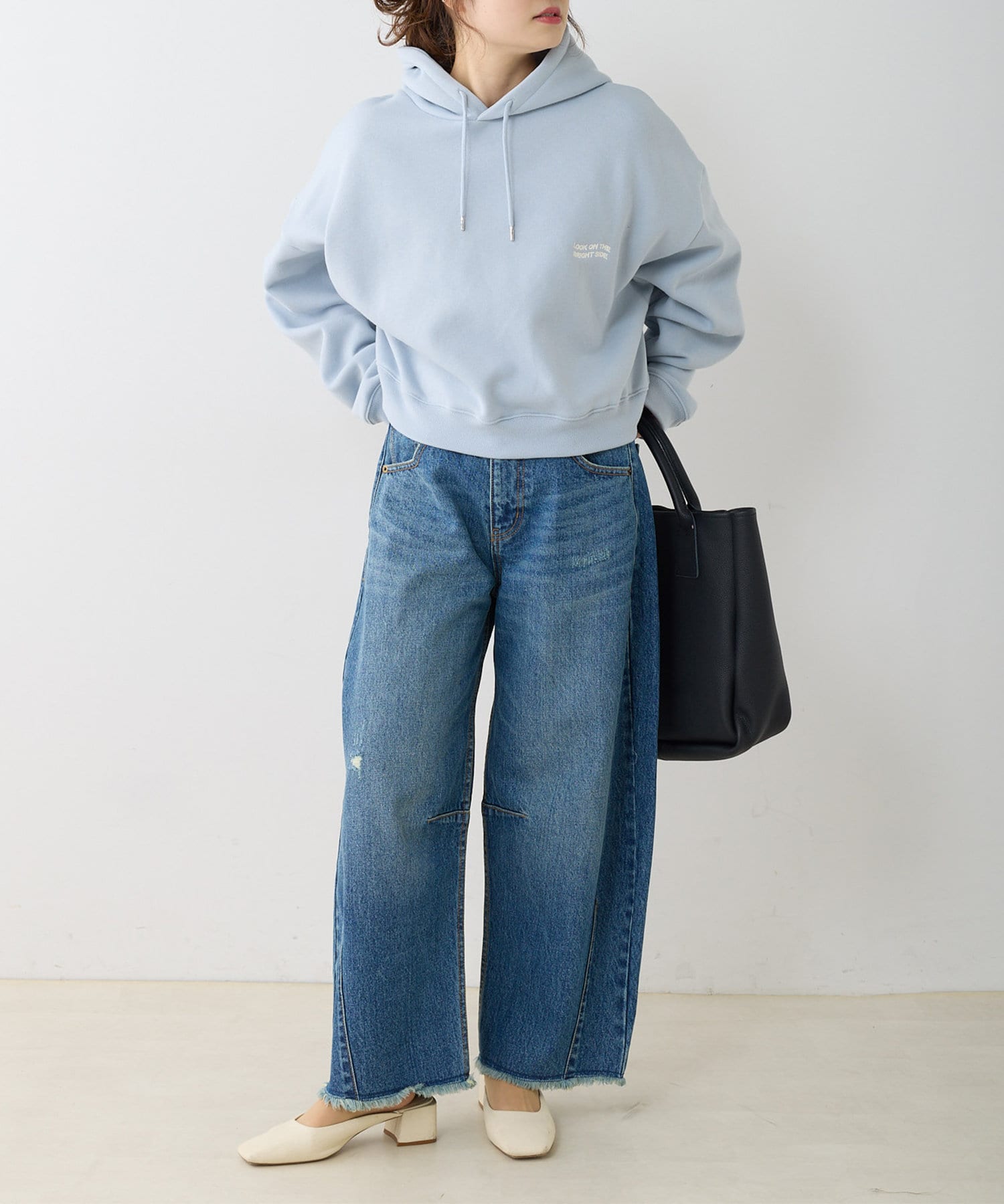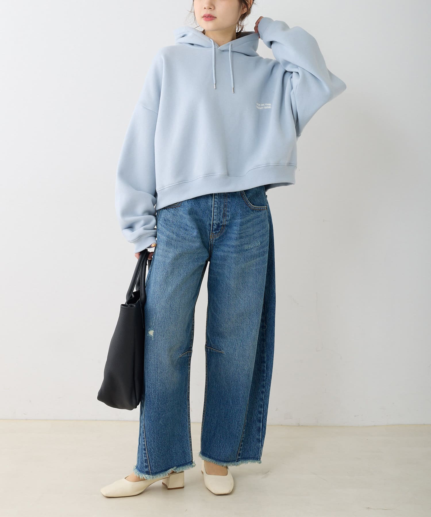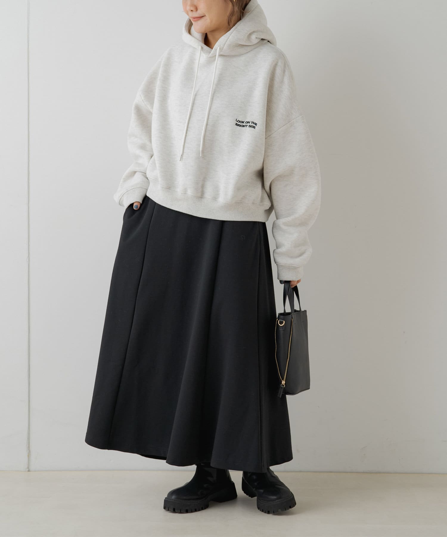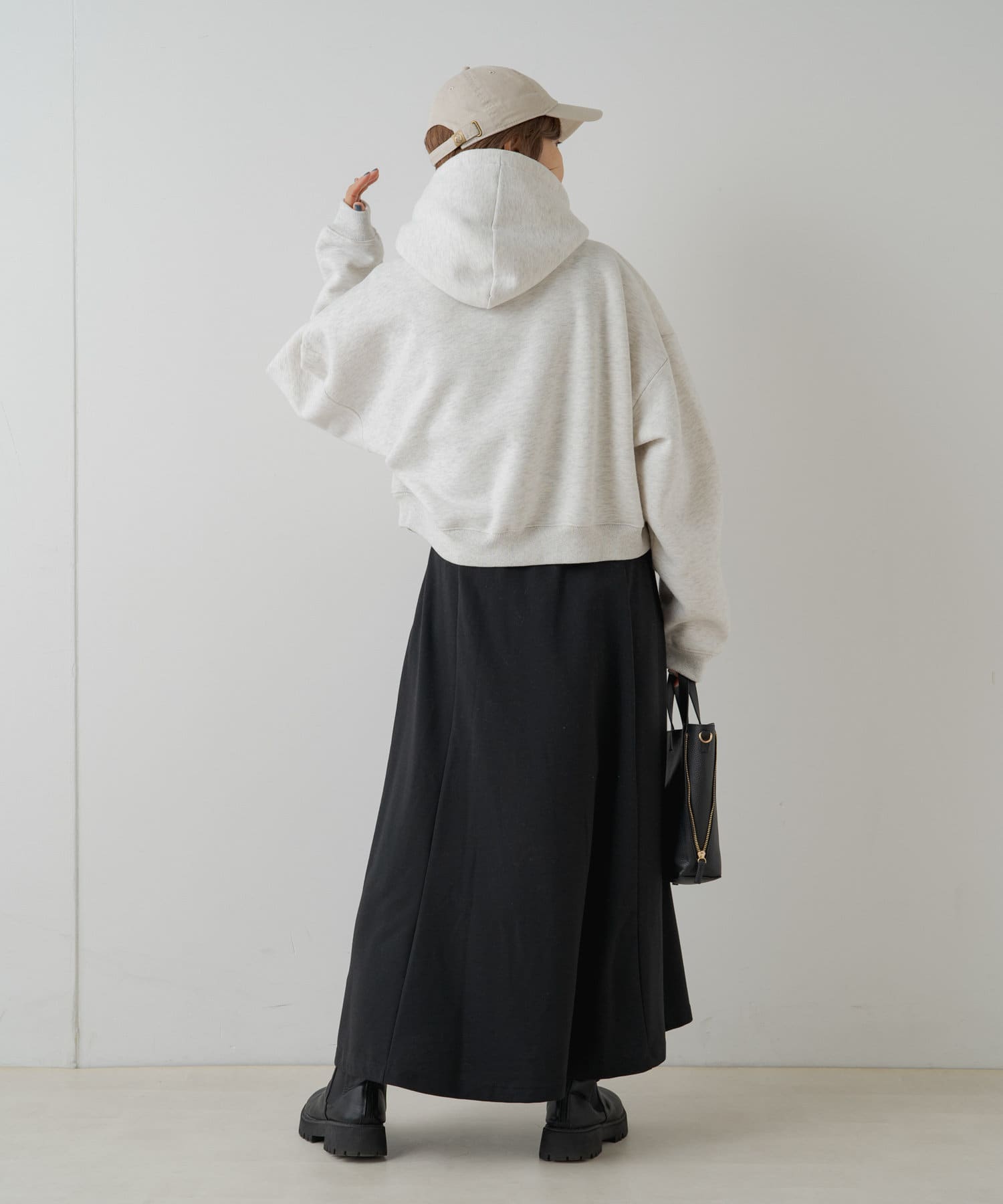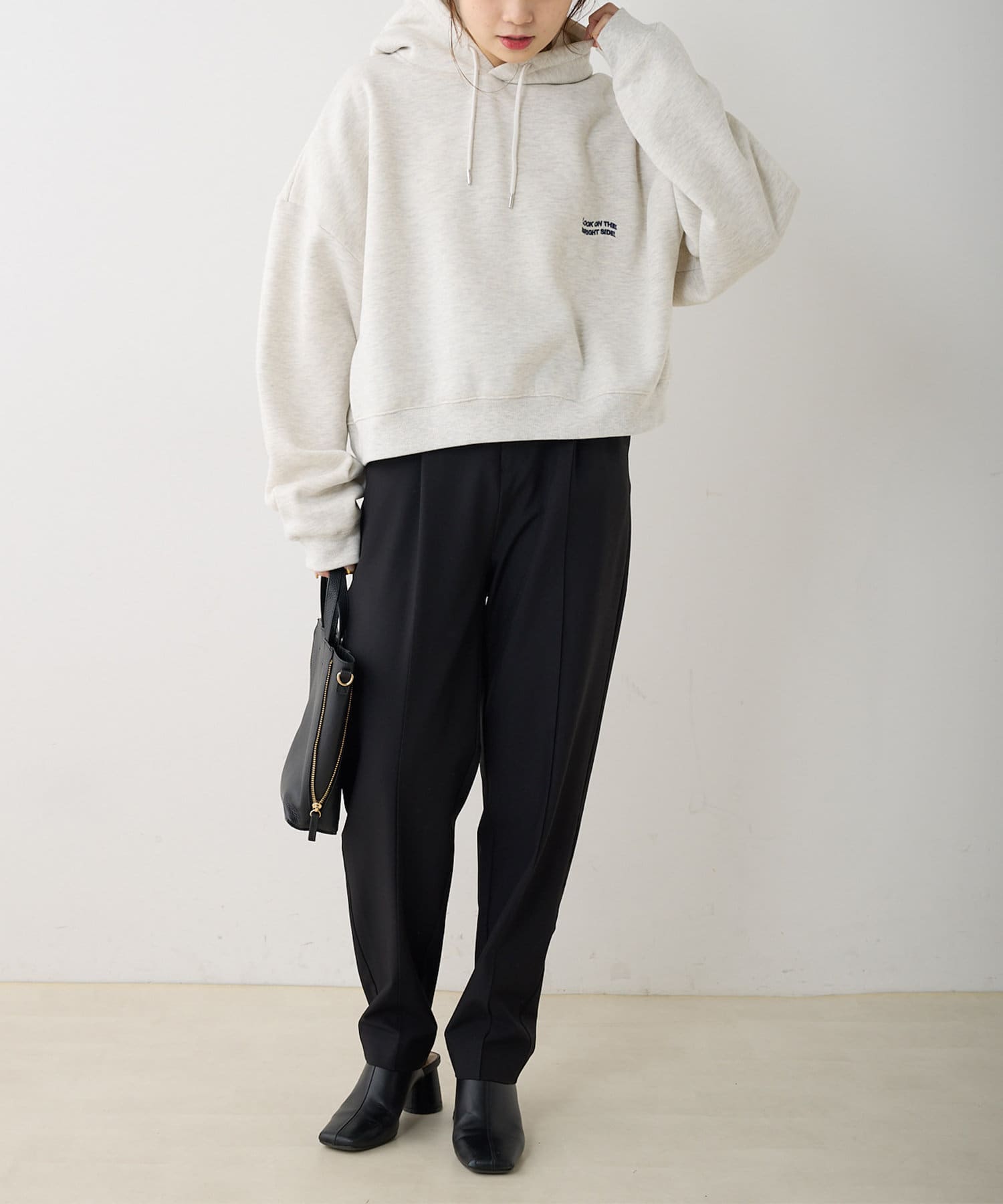 胸元の刺繍ロゴがアクセントのショート丈パーカー。