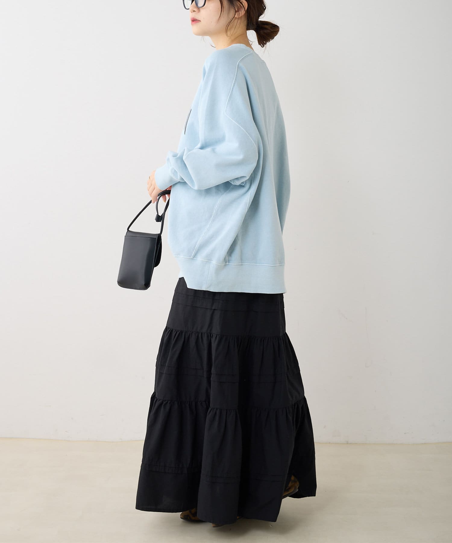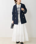 ヒップが隠れる着丈なので、細身のスラックスやナロースカートと合わせるとコーデにメリハリが生まれます。