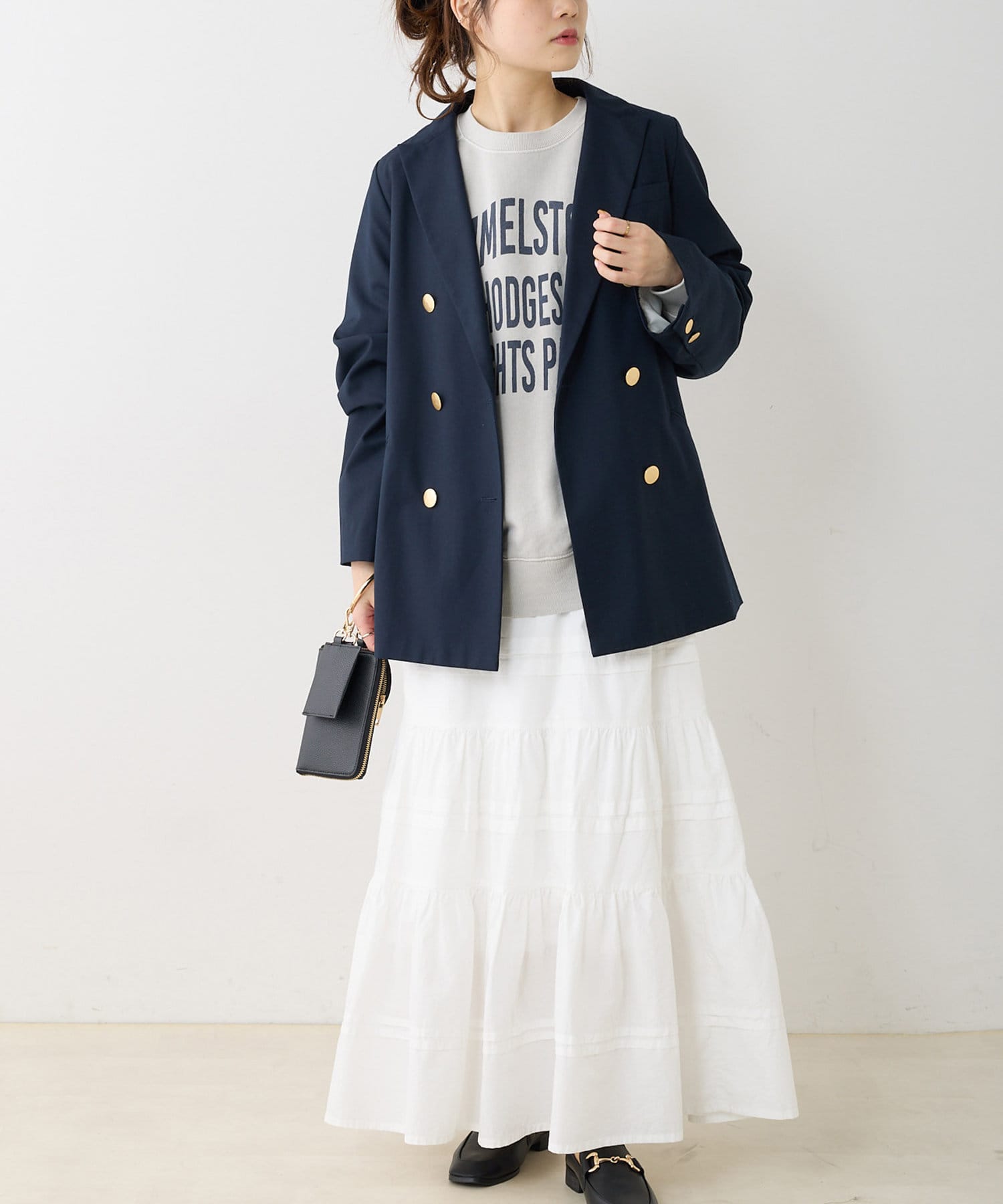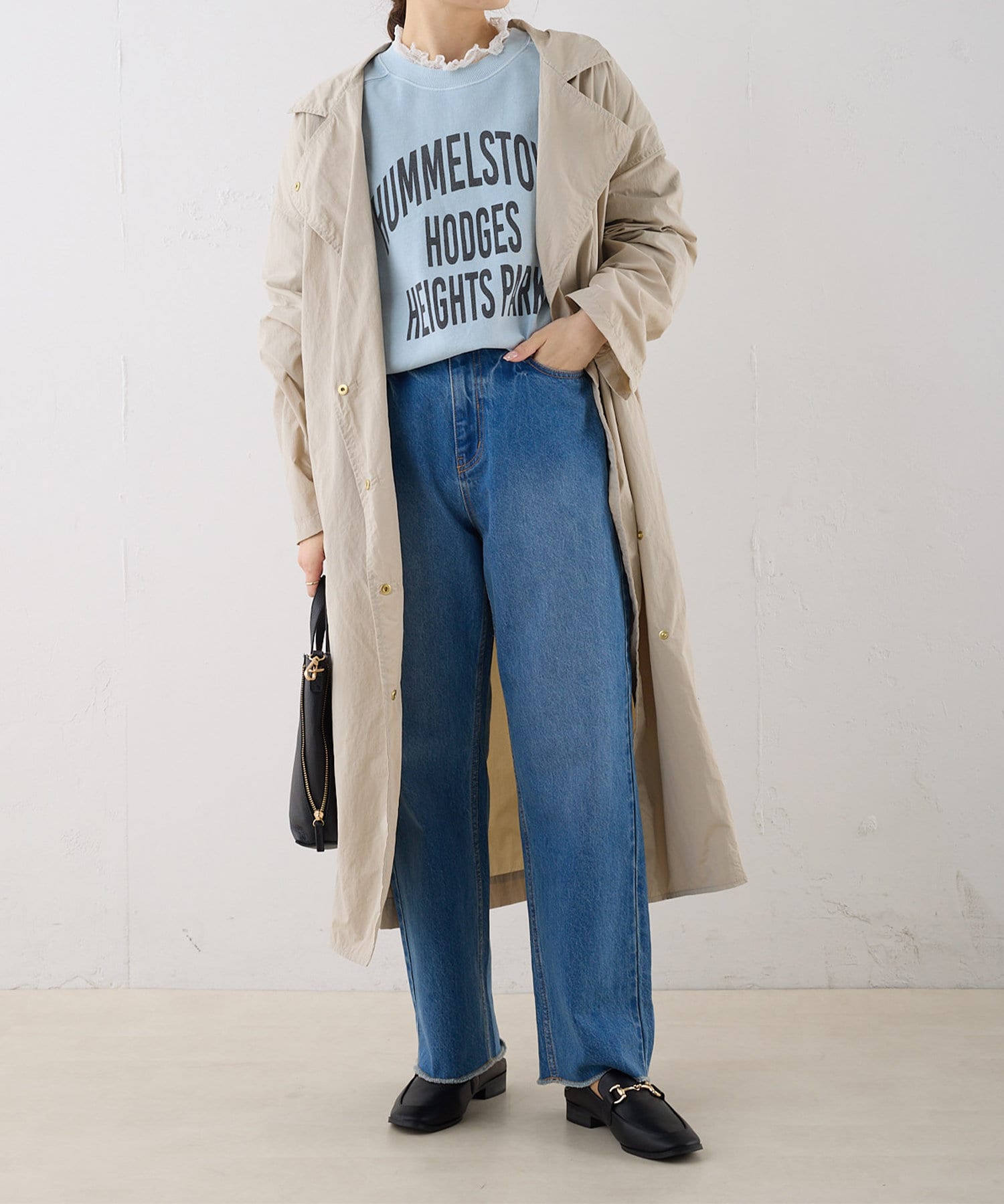 身幅に余裕のあるサイズ感で重ね着がしやすく、レースやシアー素材のハイネックインナーを合わせると春らしいコーデに◎