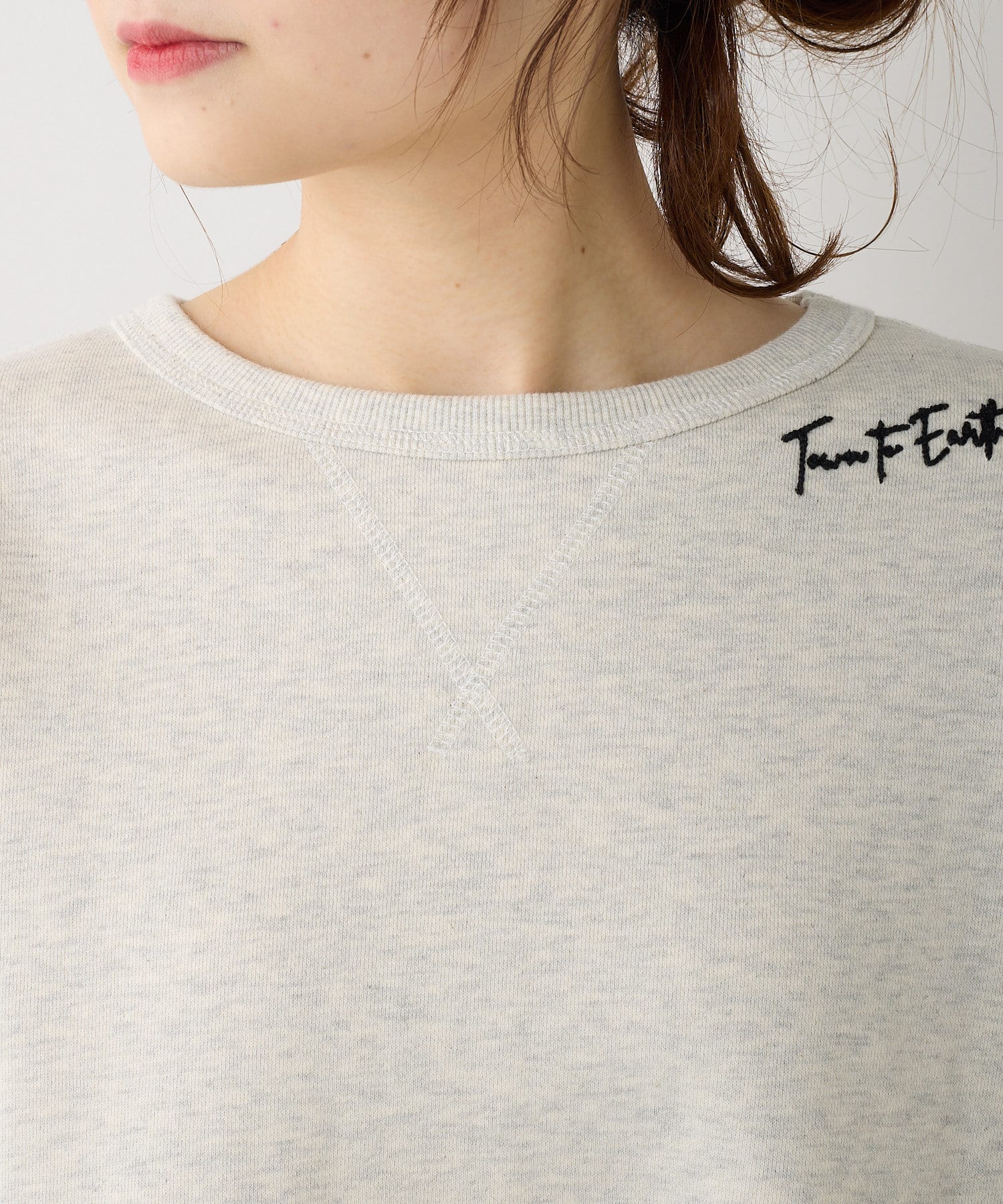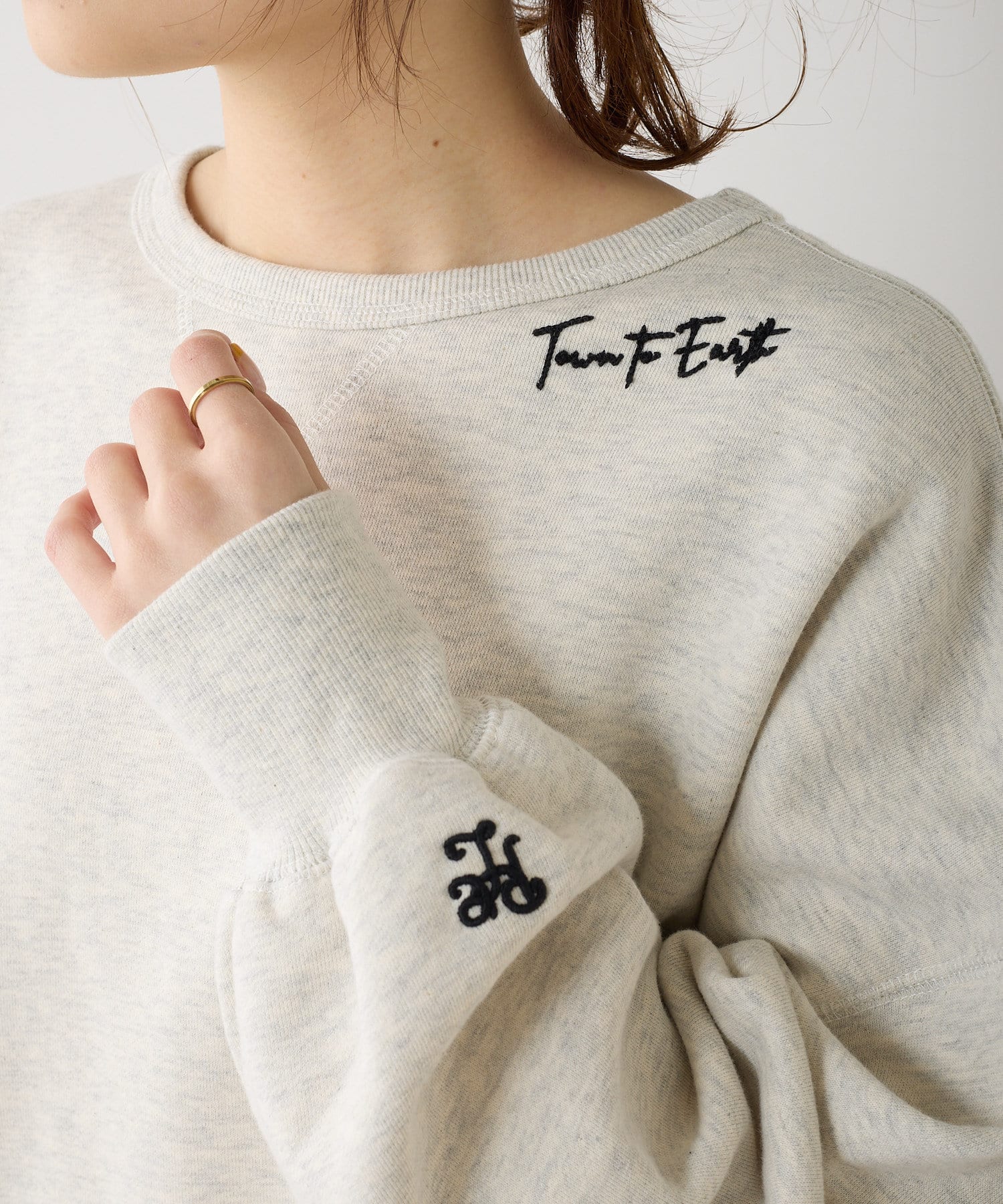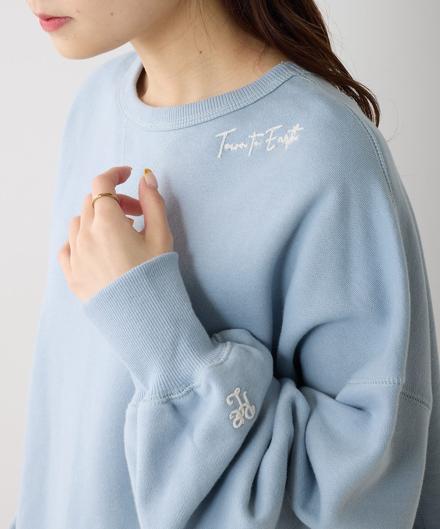 首元には今春のピュアルセシンのテーマ「Town to Earth」を、袖にはブランドロゴを入れました。