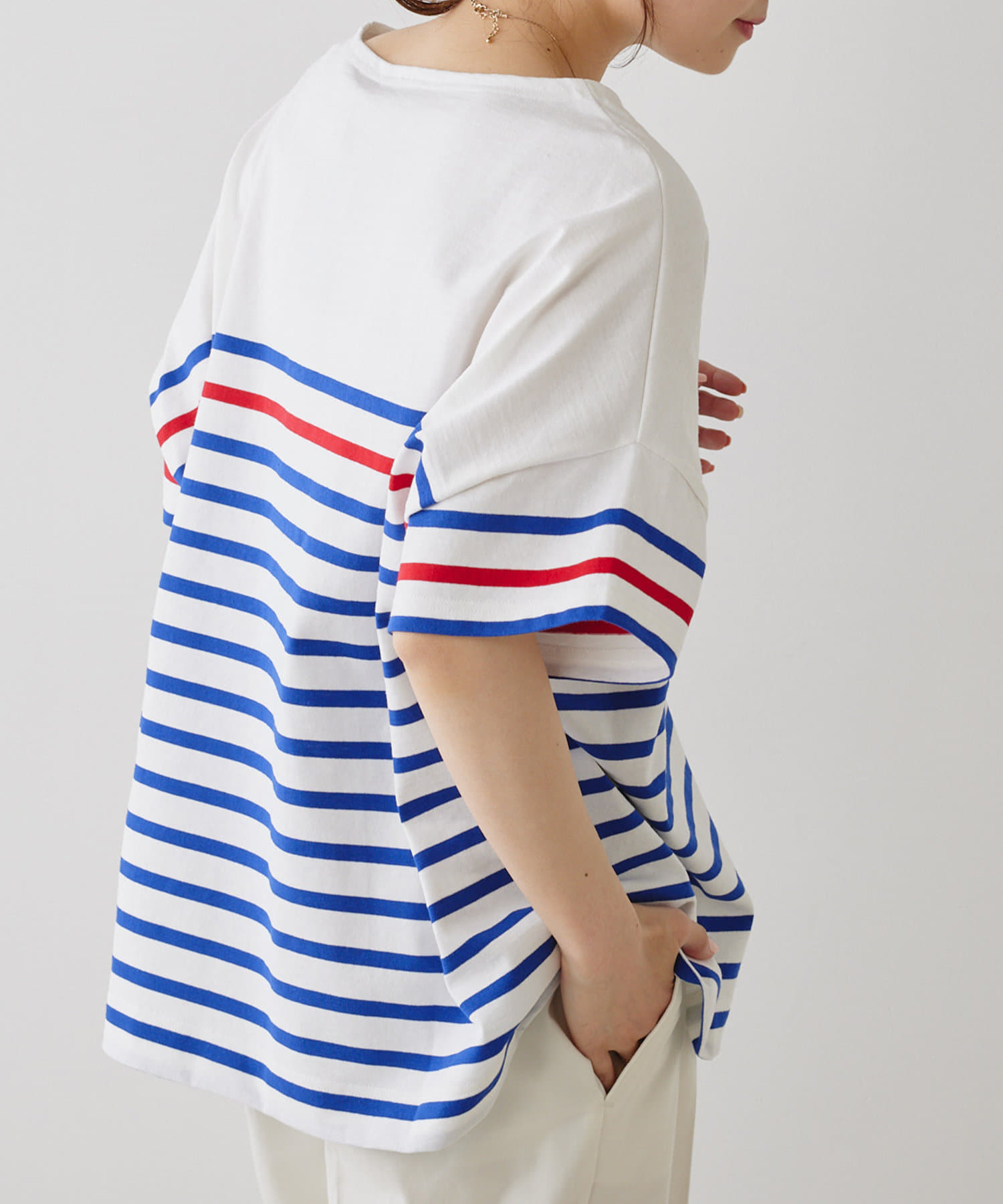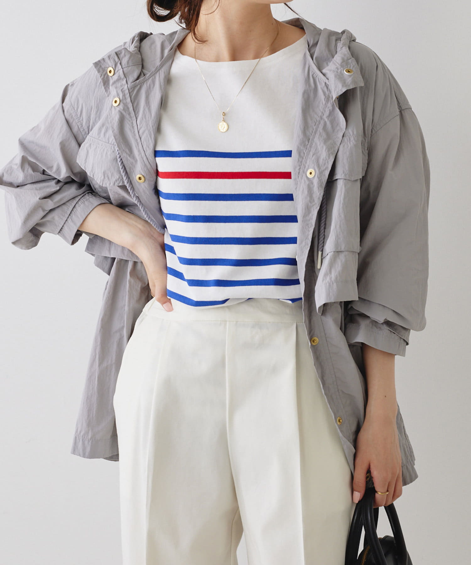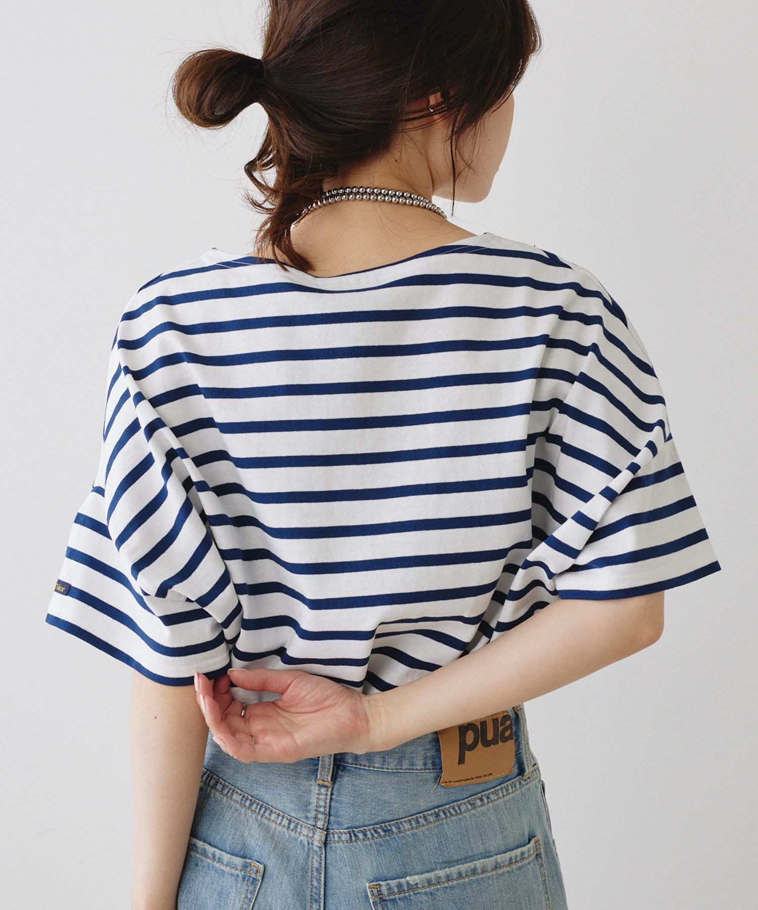 フランスブルーターニュの自社工場で生地から生産しているLe minorのボーダーカットソー。