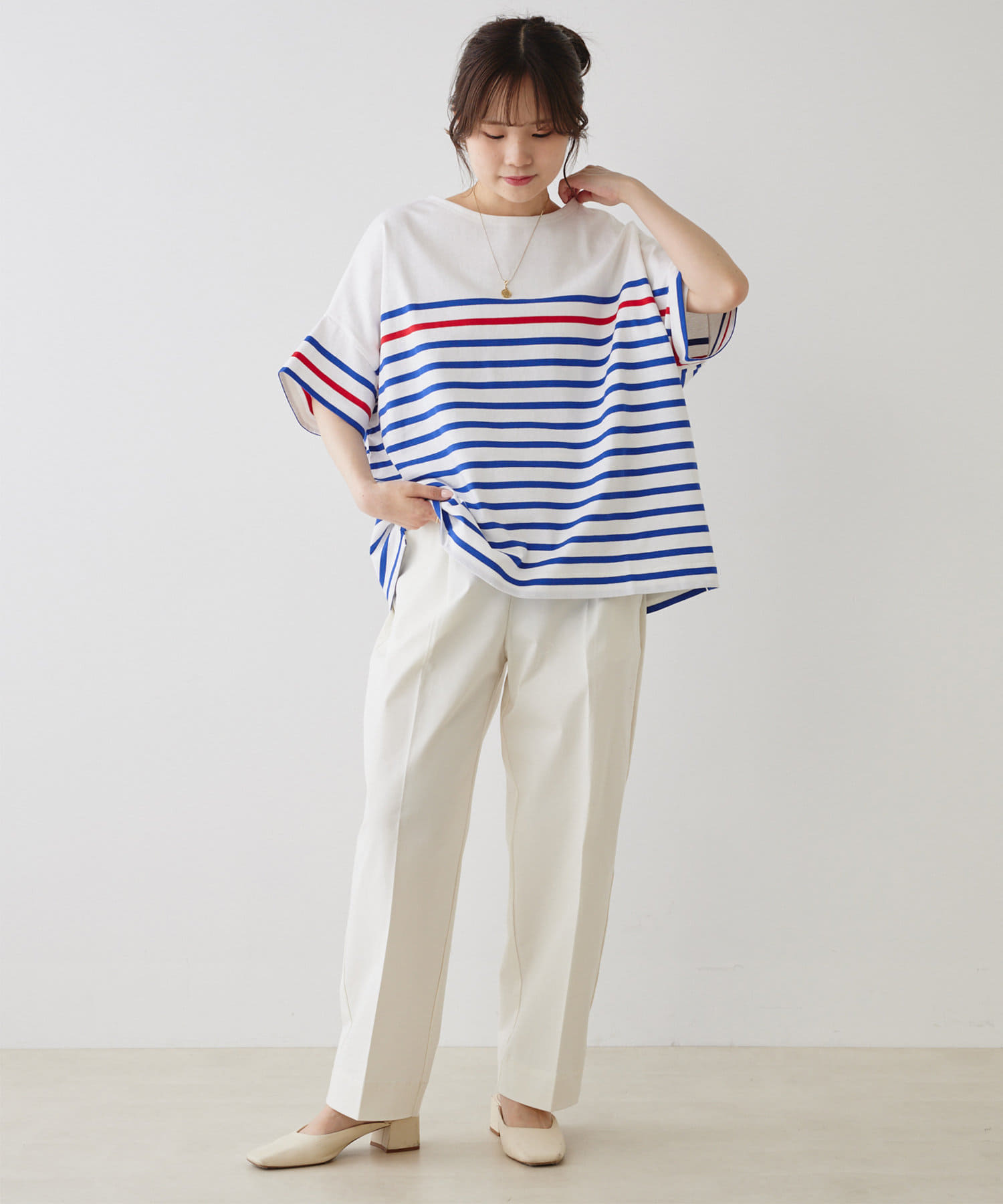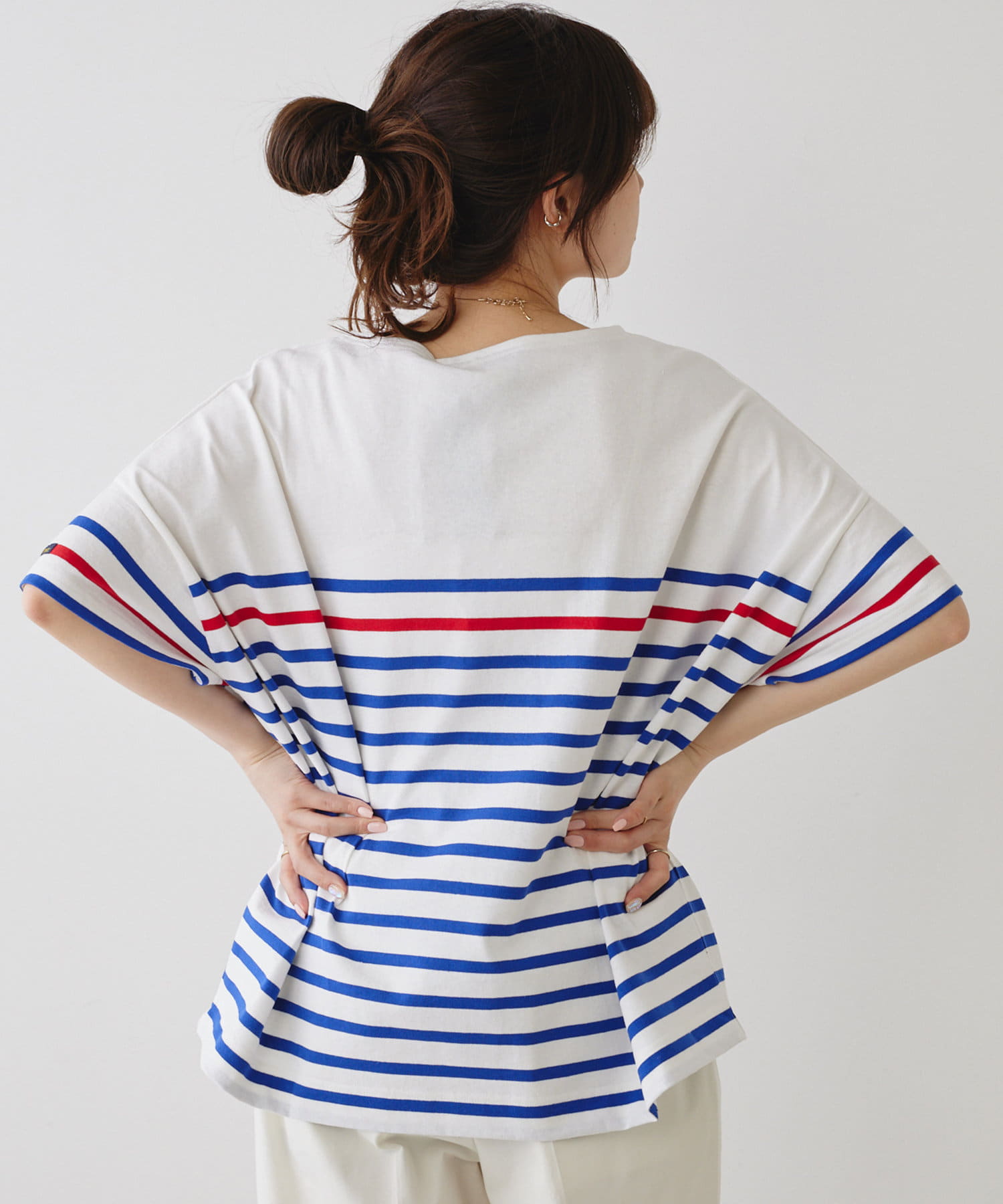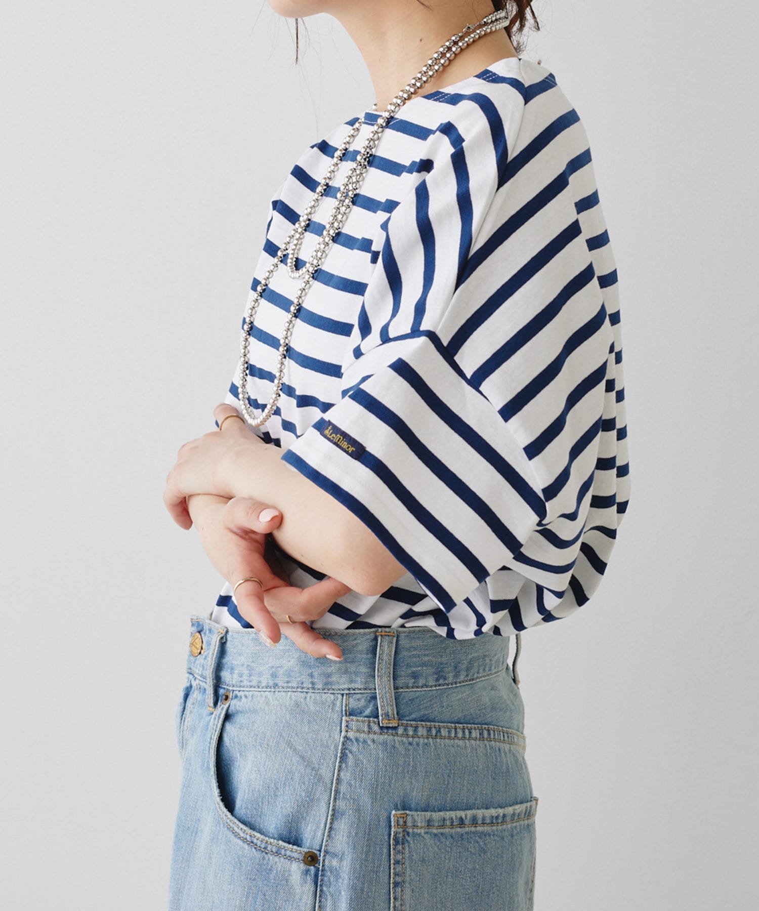 フランスブルーターニュの自社工場で生地から生産しているLe minorのボーダーカットソー。