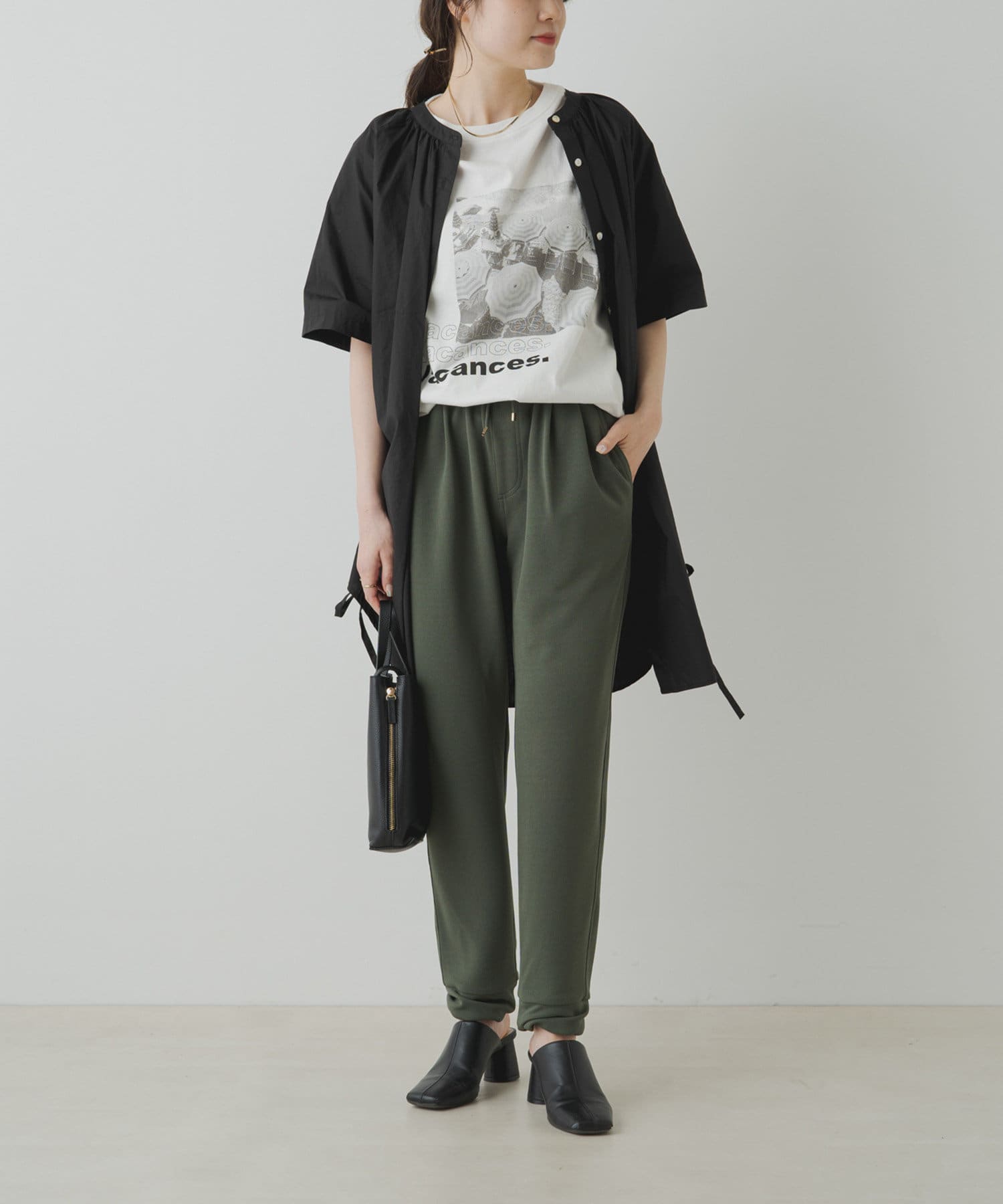大人も着やすいモノトーンデザインで、一枚でこなれ感のある装いに。