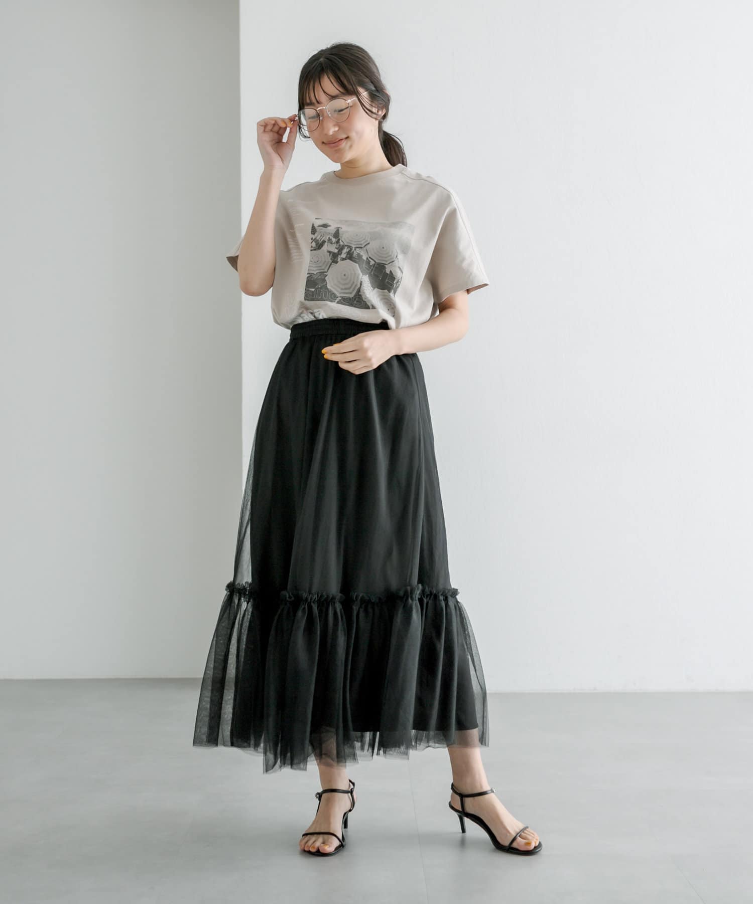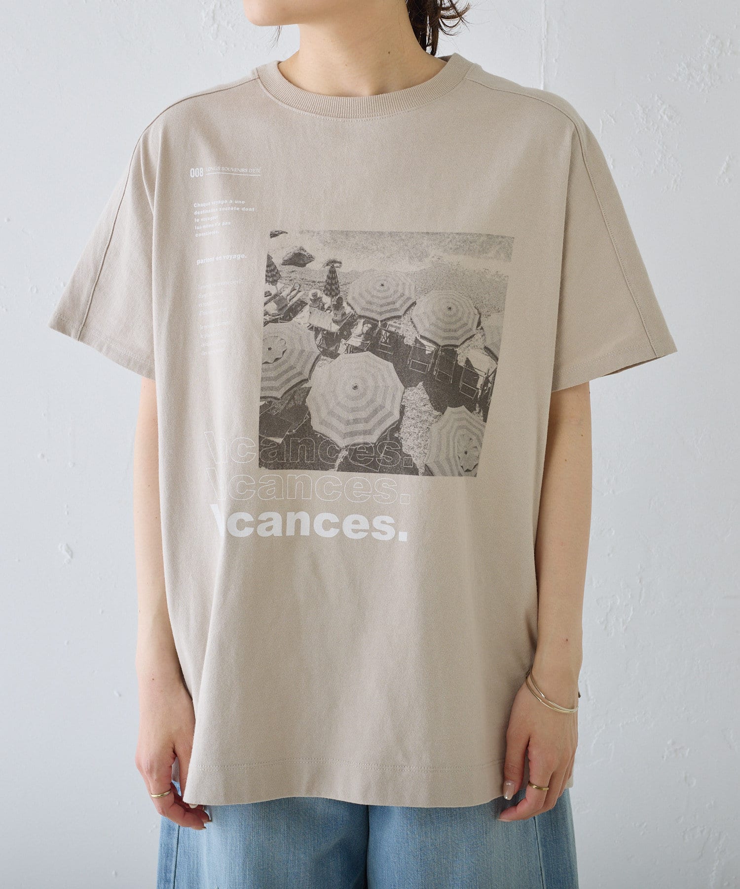 フロントのフォトプリントがアクセントになるので、シンプルなボトムスとのコーデも様になります。