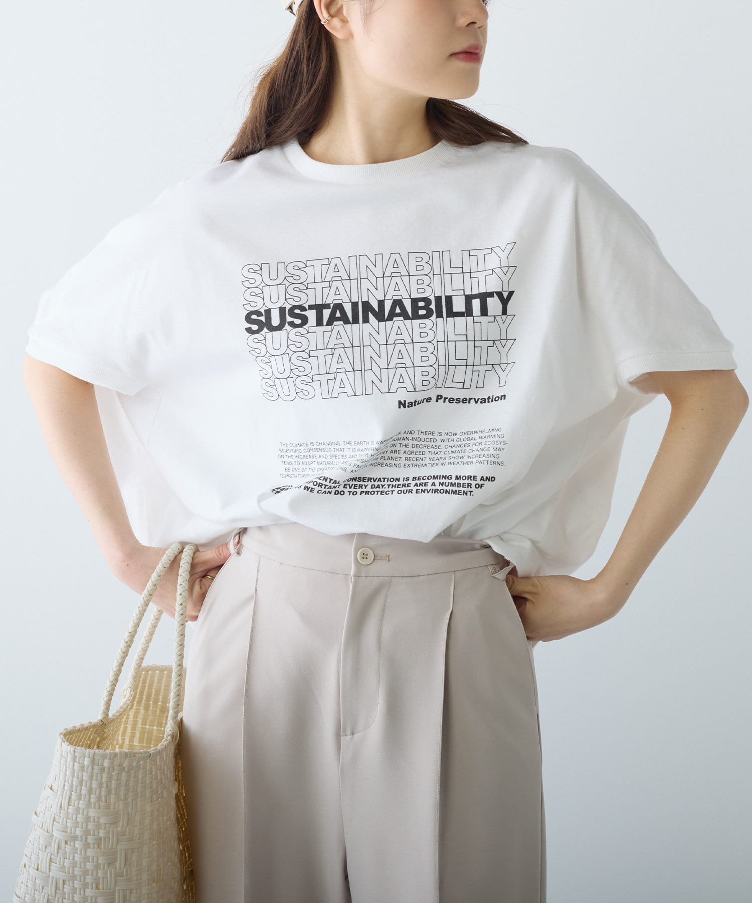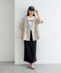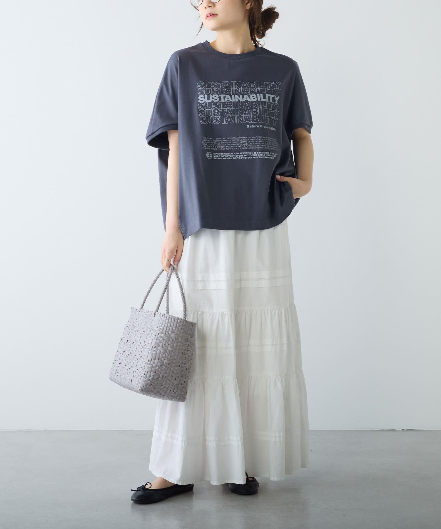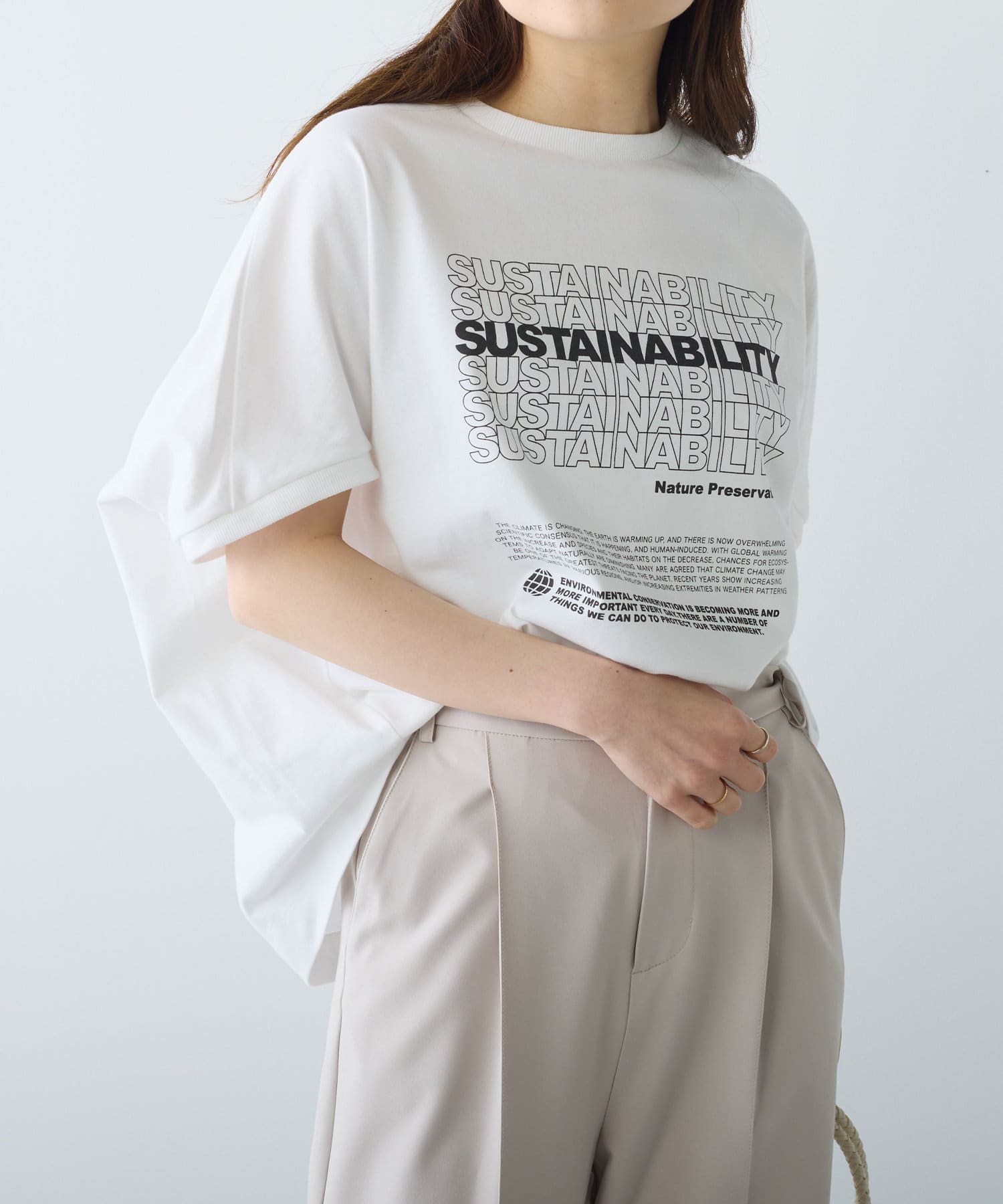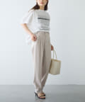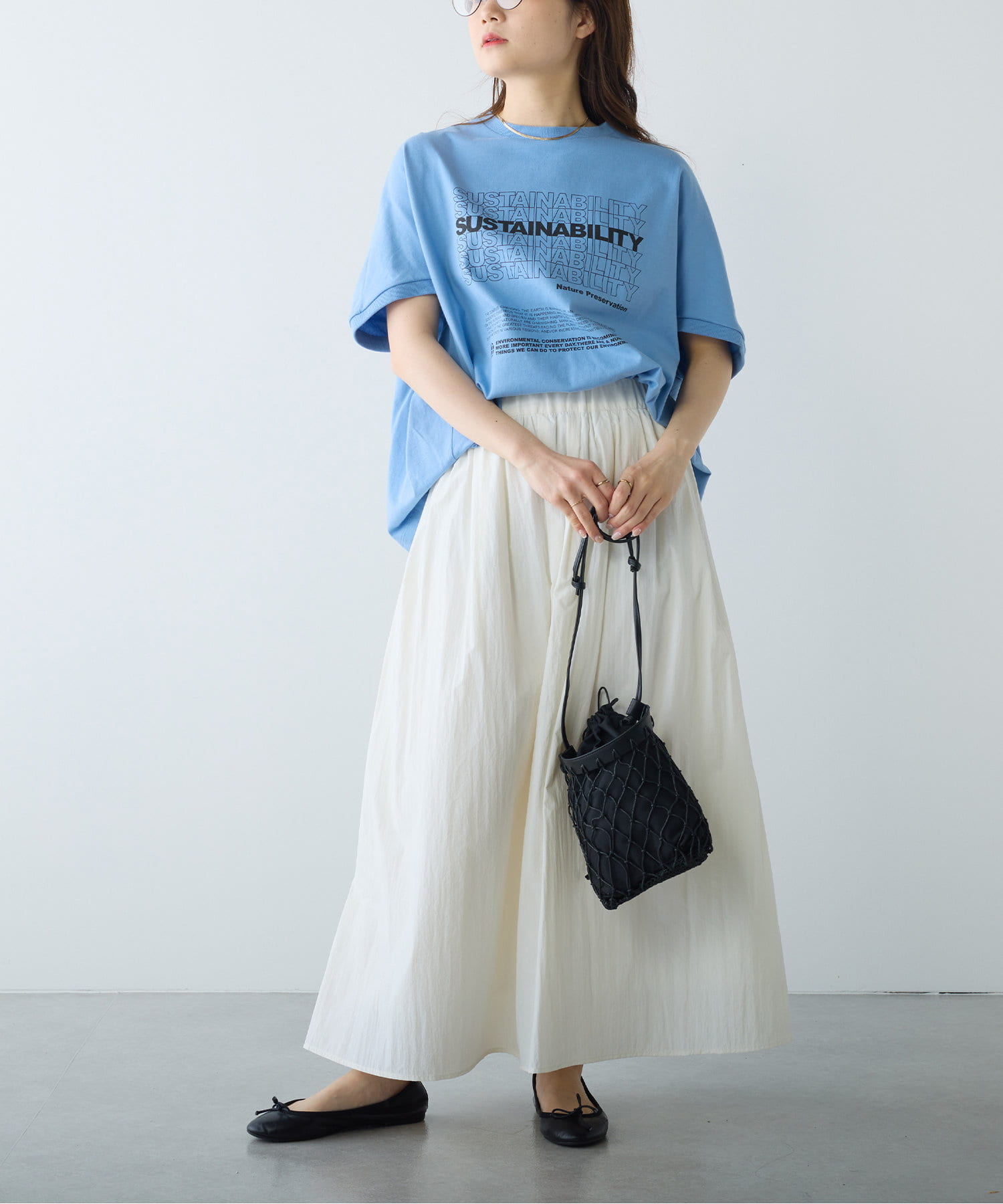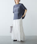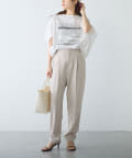 綺麗めのスラックスやナロースカートを合わせると、ロゴTでも大人っぽく着こなせます。