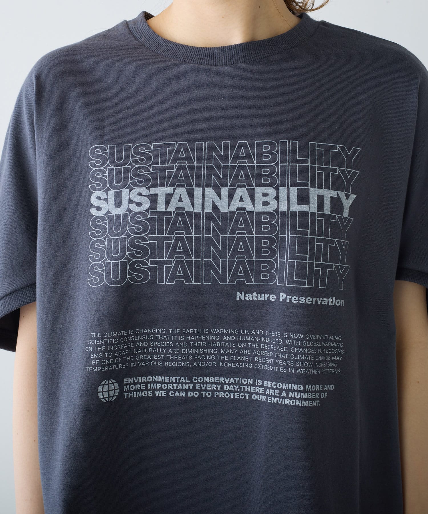 フロントのキャッチーなロゴプリントが目を惹くTシャツ。
