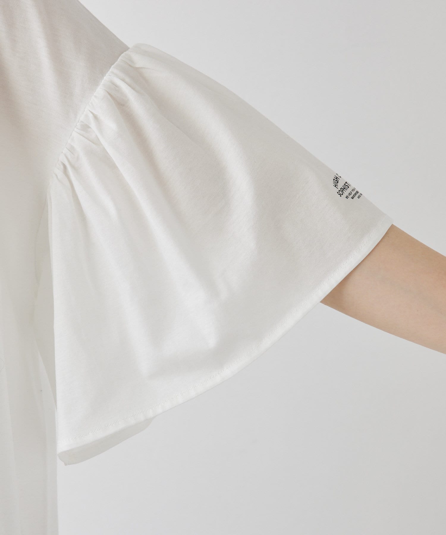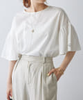 • PUAL CE CIN(ピュアルセシン) ワンポイントプリントシルケット袖フリルTシャツ