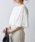 TOP > PUAL CE CIN > レディース > トップス > Tシャツ/カットソー > ワンポイントプリントシルケット袖フリルTシャツ