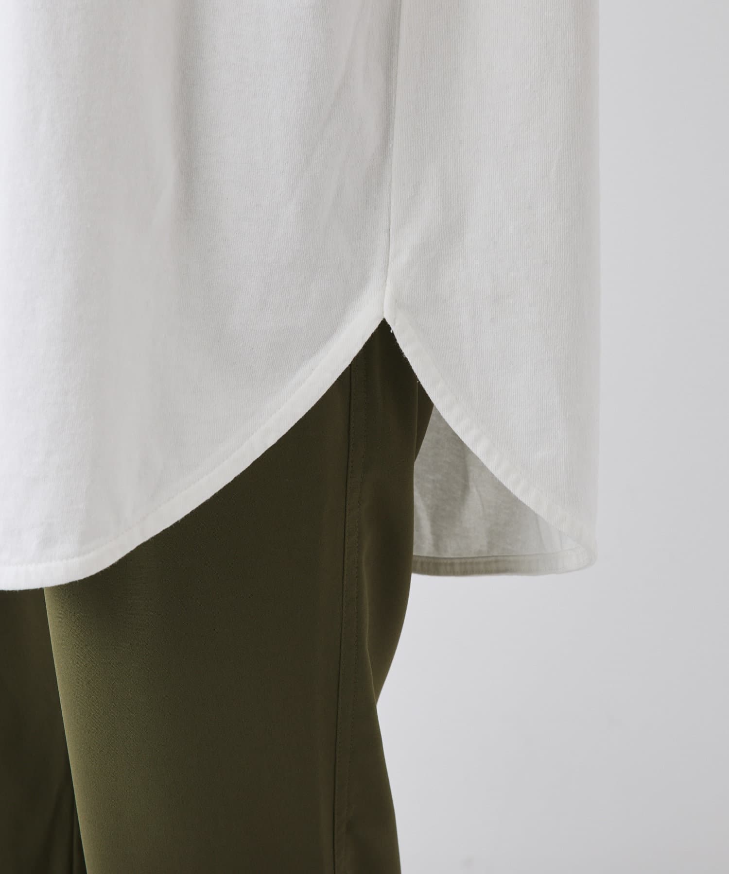 ラウンドヘムになっているのでタックインからアウトしたスタイリングまでしっかり馴染んでくれます。